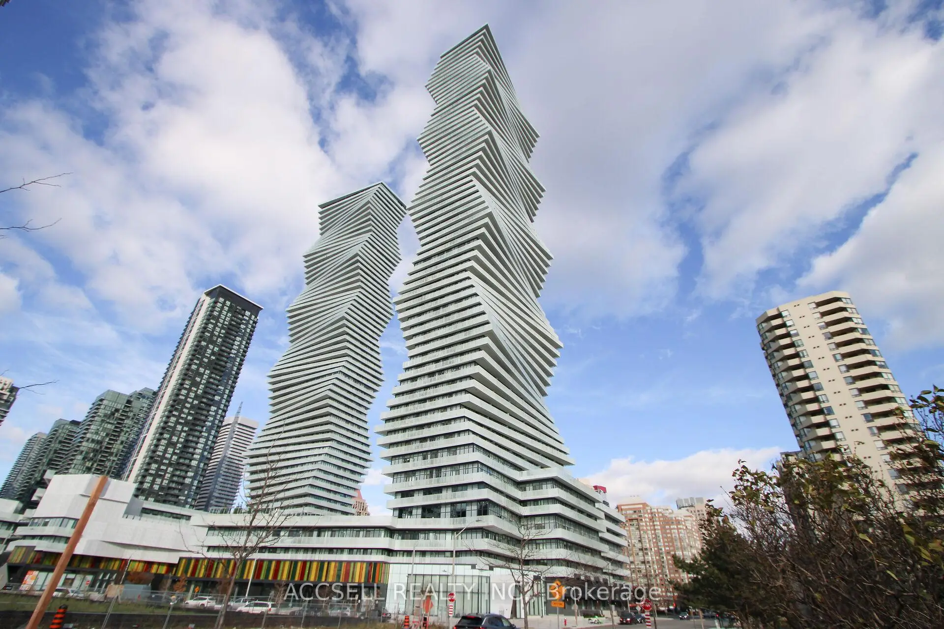 Absolutely stunning 2 bedroom, 2 full bathroom suite with 11' ceilings in the renowned M City 2! This exceptional unit features an amazing split-bedroom layout, ensuite laundry, and soaring ceilings that bring in incredible natural light through the floor-to-ceiling windows. Enjoy an oversized balcony with 3 walkouts-from the primary bedroom, living room, and second bedroom- perfect for indoor/outdoor living. Modern finishes include laminate flooring throughout, quartz counters, & stainless steel appliances. Parking & internet included in maintenance fees. With two elevators exclusive to the podium units, you'll appreciate consistently fast, convenient access without the wait. Prime City Centre location- walk to Square One, Celebration Square, Kariya Park, Sheridan College, trails, restaurants, and all major amenities. Steps to MiWay transit and minutes to the upcoming Hurontario LRT. Great nearby schools including Fairview P.S. and Bishop Scalabrini. Resort-style amenities: 24 hr concierge, private dining room with chef's kitchen, games room, kids zone, event space, outdoor saltwater pool & rooftop terrace. A must-see!