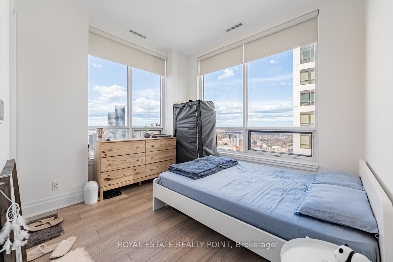 Welcome to #3702- 36 Elm Drive West, Mississauga, ON. A luxurious Condo featuring sophisticated and traditional interior design by Dochia Interior; designed by Roy Varacalli, the celebrated architect of Cusumano Architects. This Pent-house condo apartment offers unparalleled living in this exquisite, modern corner unit, offering breathtaking and unobstructed views. The expansive master bedroom features an ensuite and a spacious closet, ensuring comfort and convenience. The sleek, contemporary kitchen is equipped with top of-the-line stainless steel appliances and a built-in island, perfect for culinary enthusiasts. The unit also boasts a large second bedroom, providing ample space for family or guests. Uniquely positioned with the only balcony on the building's side, this residence offers exclusive, unobstructed vistas, creating a serene and private outdoor retreat. Nestled in a prime location, the property is surrounded by an array of shopping destinations and picturesque parks, enhancing the urban living experience. Walk to Square One, Hurontario, close to Cooksville Go Station, Steps from New LRT Transit. Building Amenities include 24hr Concierge, Gym, Party Room and more. Must See.