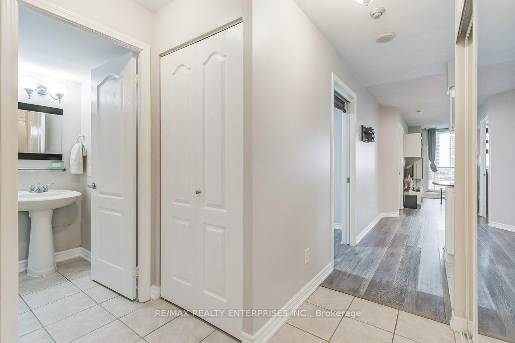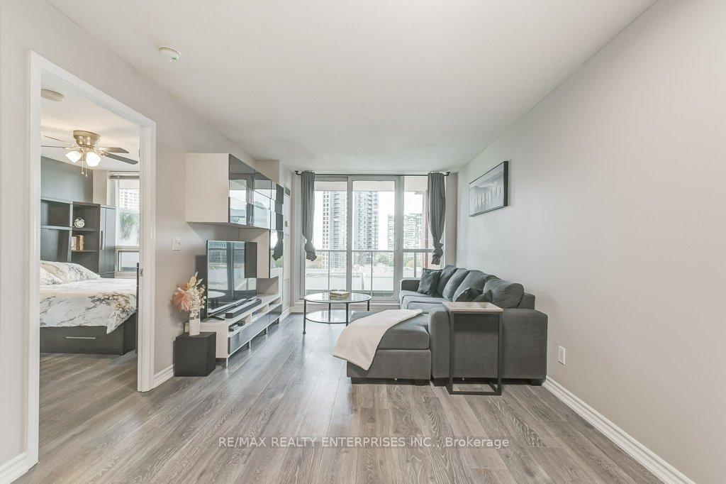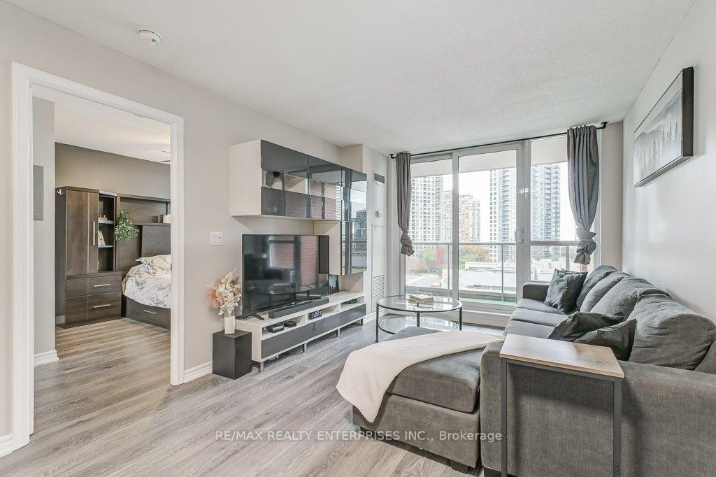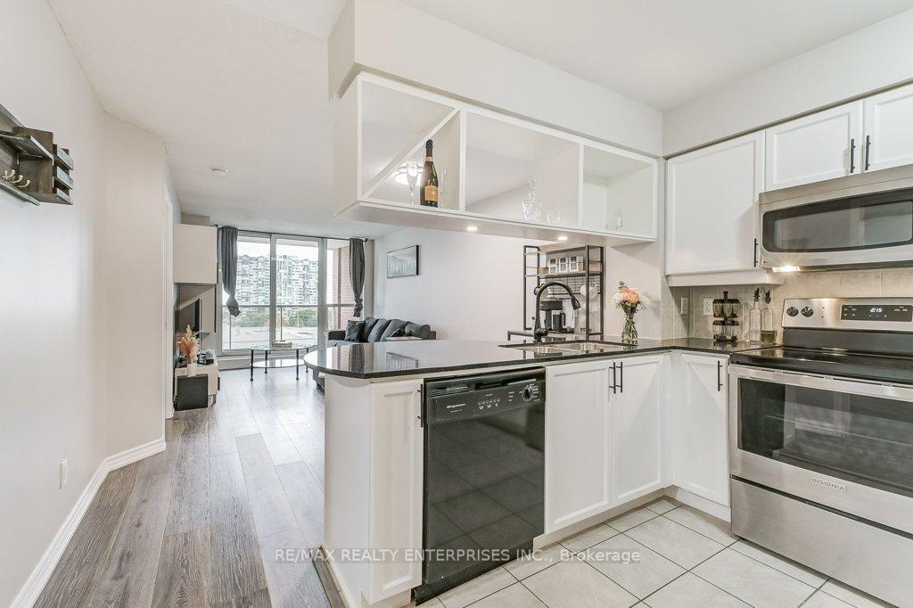 Step into the rhythm of downtown Mississauga with this beautifully maintained 1 bedroom + den, 2 bath suite featuring a bright open layout and fantastic flow throughout. The kitchen offers granite countertops with a breakfast bar and ample cabinetry, opening to a spacious living and dining area with walkout to a large balcony and floor-to-ceiling windows framing city views. Enjoy updated engineered laminate flooring, a private ensuite in the primary bedroom, and a den perfect for a home office or guest space. Convenient in-suite laundry with stacked washer/dryer and plenty of storage with hallway closets and pantries. Live at the very heart of it all, City Centre surrounded by vibrant culture, dining, and entertainment. Walk to Celebration Square, Square One, theatres, cafes, and parks all just outside your door. World-class amenities include an indoor pool, hot tub beneath a chandelier, sauna, fitness and weight rooms, golf simulator, theatre room, party rooms, and a cozy lounge/library space to unwind or connect. This isn't just a condo it's life at the centre of everything.
