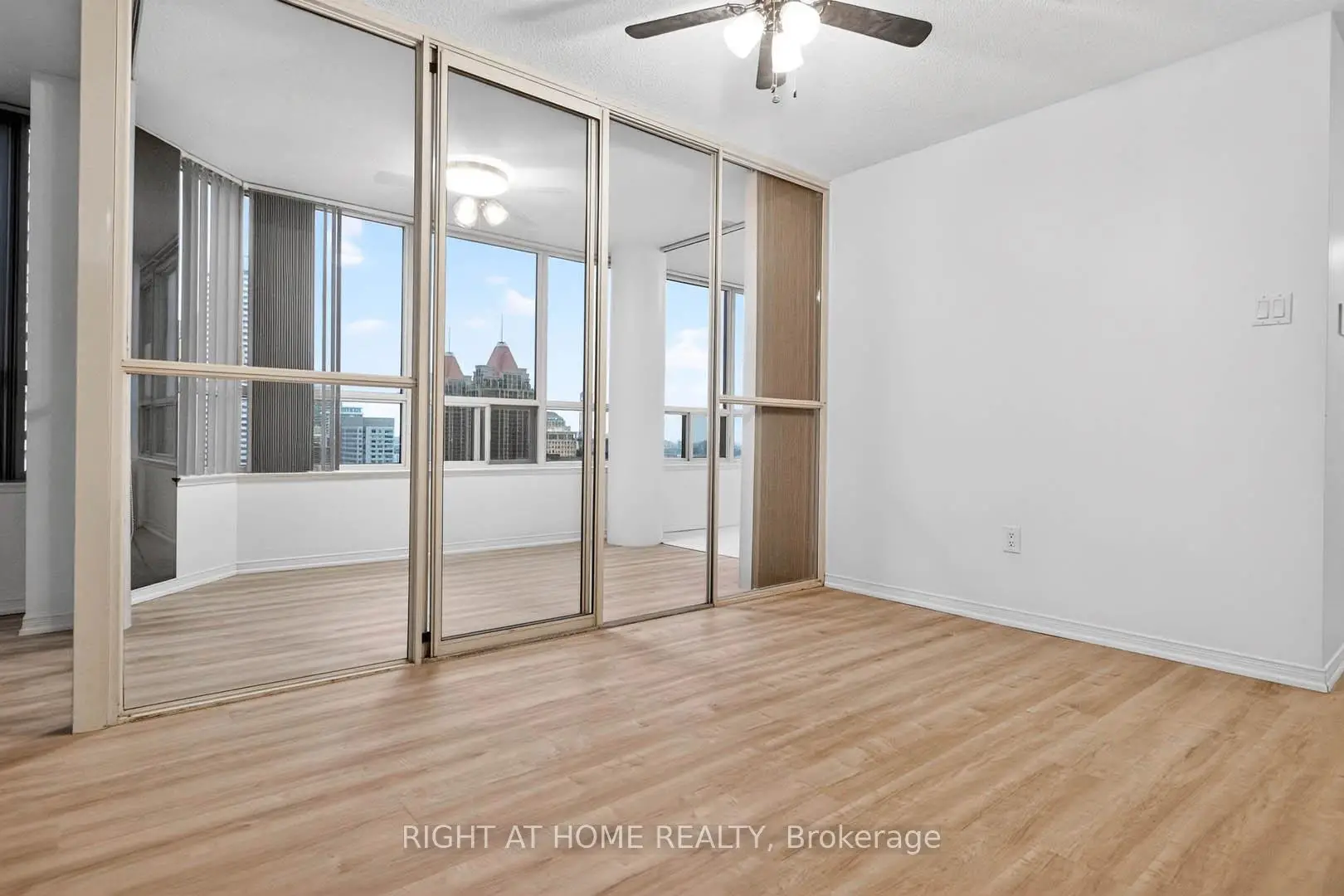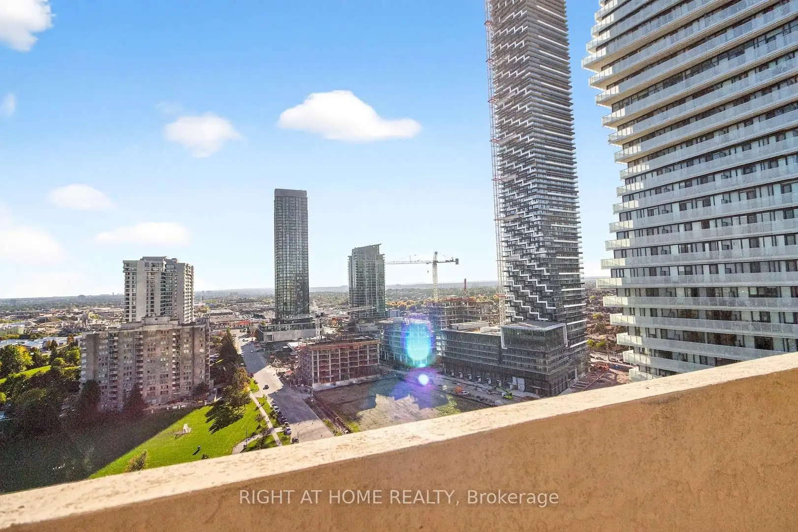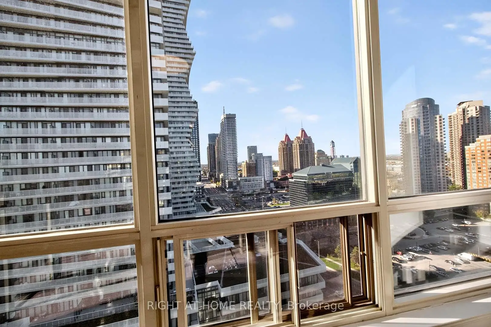 This stunning 1,275 Sq.Ft (per MPAC) corner unit condo in the heart of downtown Mississauga offers a bright and spacious split 2-bedroom layout plus a solarium/den, perfect for modern living. The open-concept living and dining room features a walkout to a beautiful balcony with incredible views, while the lovely kitchen boasts stainless steel appliances, quartz countertops, undermount sink and a cozy breakfast area. New Flooring in the Living / Dining & Solarium, plus the Bedrooms! The spacious primary bedroom includes a walk-in closet and a 5-piece ensuite with a separate shower, and the second bedroom offers a double closet with access to a 4-piece bath. Upgraded quartz counters in the baths. With lots of storage, an ensuite laundry with front-loading machines. *** Bonus 2 tandem parking spots that fits 4 cars, plus a locker. *** Residents can enjoy the well-maintained buildings amenities, including a gym, indoor pool, sauna, party room, billiard room, squash and racquetball courts, a tennis court, and beautifully landscaped grounds with plenty of visitor parking. Ideally located steps from Square One, Celebration Square, the library, shopping, transit, entertainment, and major highways, this condo is an absolute must see, with heat, hydro, and water included in the maintenance fees. ** Digitally staged for illustration purposes only.**