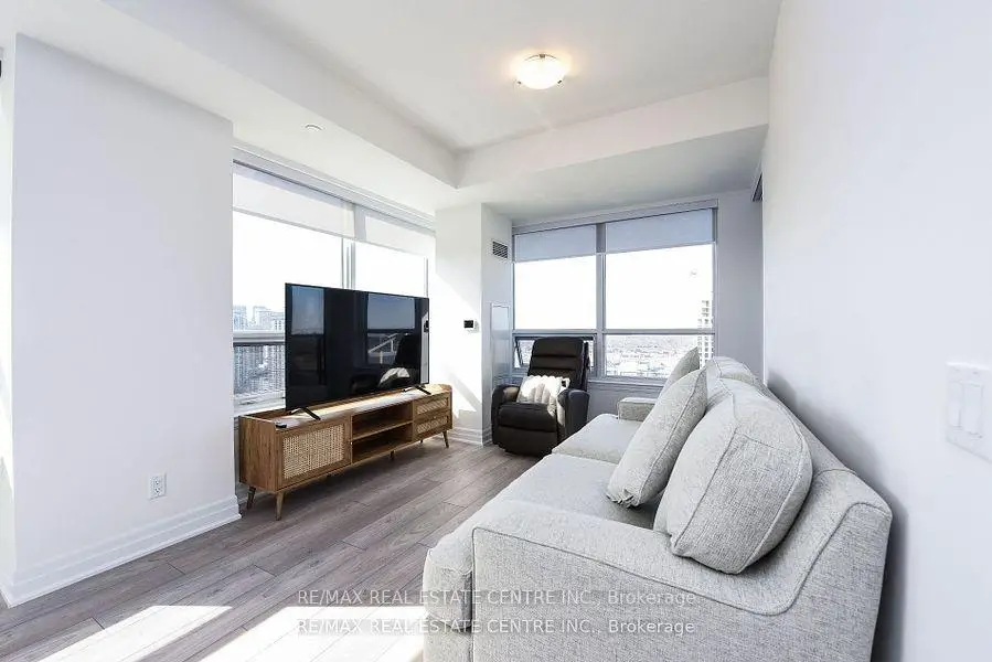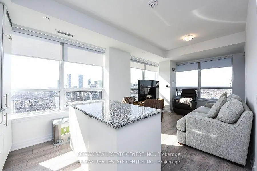 Rarely offered, Stunning, 2 Bedrooms + 2 Full Washrooms, Luxury Living In Executive Condo NW Corner Unit 9.5ft Ceilings, Inspiring Panoramic Views of Mississauga's Core! Sun-Filled West Open Unit, With Open Concept Layout. Floor To Ceiling Windows Is The High-end suite you have been waiting for!, 771 Sf Stylish Open Concept, Amazing Location! Modern Luxurious with Open Concept, Functional Layout, Modern Blizzard Quartz Kitchen With Island, Top of The Line Stainless Steel Appliances, Breakfast Bar, Spacious Family Room with Floor to Ceiling Windows, So Much Natural Light With Inspiring Panoramic Views of Mississauga, The Perfect Layout! 9 Ft Ceilings, Flooring Throughout. , Top of The Line Blinds. Spacious Master Bedroom With 5PcEnsuite, W/I Closet &Private Balcony. Walk To LRT, Square One, and All Amenities.