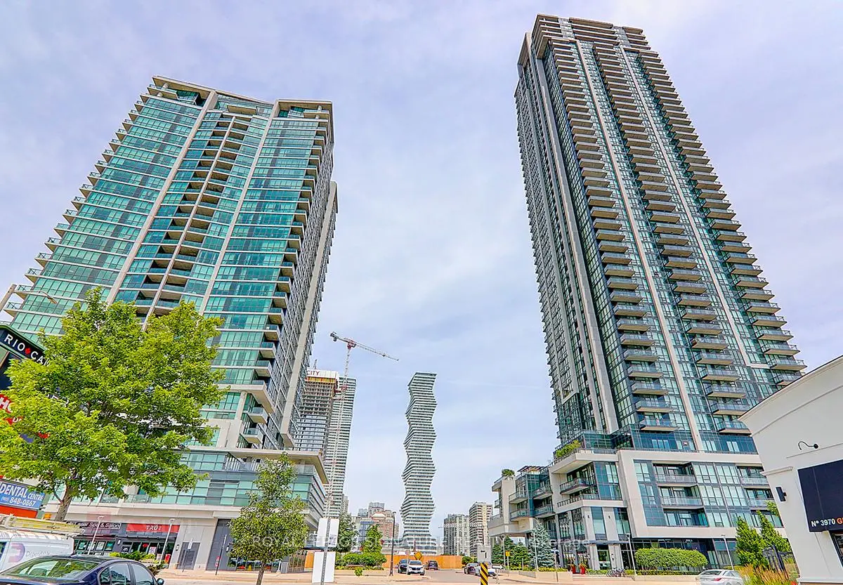 Spacious and sun-filled 2-Bedroom + Den corner unit with parking and locker in the sought-after Grand Park Condos - located conveniently just off of Burnhamthorpe Road in Mississauga's city centre. This freshly painted unit offers approximately 1,000-sf of living space with 9-ft ceilings, a spacious kitchen featuring full-size S/S appliances and island with breakfast bar, and beautiful brand-new modern light fixtures in the living room. Enjoy unobstructed northwest city views during the day and bright city light at night. The building offer fantastic amenities which include an exercise room, indoor pool, guest suites, and party and dining rooms, plus an outdoor terrace with BBQ and more. An incredibly convenient location with everything at your doorstep! Steps, literally, to transit, parks, Shoppers, Winners, Starbucks, restaurants, and T&T Supermarket. Just minutes to Square One Shopping Centre, Whole Foods, University of Toronto Mississauga, Sheridan College, libraries, Celebration Square, YMCA,Living Arts Centre, GO Transit, and Highways 401/403/QEW. A versatile unit suitable for first-time buyers and investors. Be a part of this vibrant community!