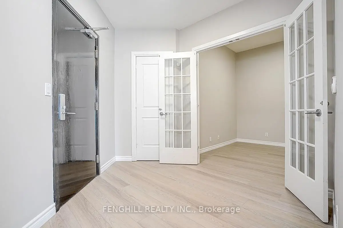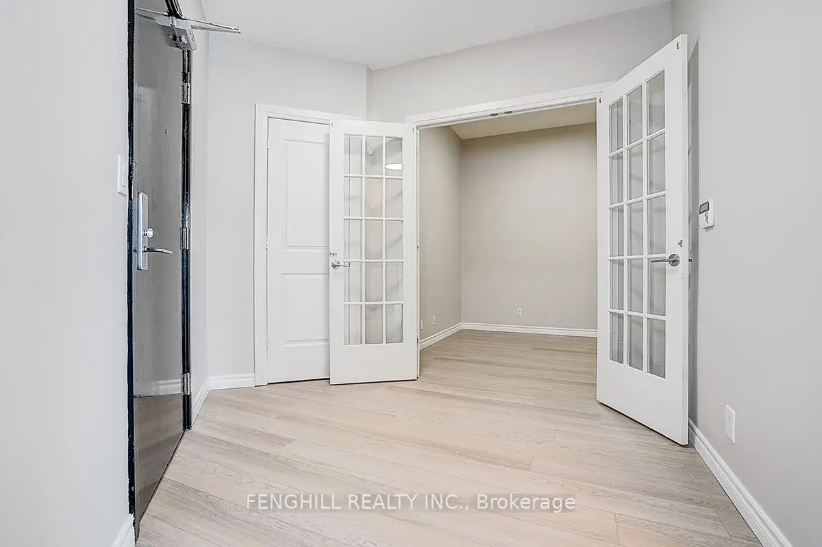 Welcome to this classically elegant penthouse located in the iconic Absolute Condos. This spacious 2+1 bedroom suite features soaring 10-foot ceilings, crown mouldings, and stylish vinyl flooring throughout. The versatile den, enclosed with French doors, can easily serve as a third bedroom or a home office. The modern kitchen is equipped with granite countertops and stainless steel appliances, while the primary bedroom offers a luxurious five-piece ensuite and a walk-in closet. Both bathrooms are finished with marble floors and glass-enclosed showers for a touch of sophistication. Step out onto the expansive balcony accessible from two walkouts and enjoy breathtaking southwest views of the lake and downtown Mississauga. This unit includes one Preminum parking space, TWO lockers, and access to premium amenities such as indoor and outdoor pools, a fully equipped gym, and more. An excellent opportunity for first-time homebuyers or investors. If you're seeking generous space with a lower down payment in a luxurious yet practical layout, this is the one. A must-see!
