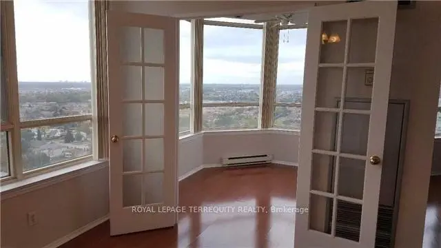 Largest corner suite on penthouse level in a top notch classic building. Welcome to the Towne Condos. Magnificent unobstructed southwest exposure with breathtaking views to Lake Ontario. Spacious and sunfilled suite with split bedroom layout, plus separate den with french doors can be used as a third bedroom. Amazing rec facilities include 24 gate house security, gym, pool, hot tub, saunas, theatre room party room, guest suite, tennis court, squash court, billiard room and more. Plus, enjoy the tranquil surrounding park setting. Non smoking building. Maintenance fee includes: basic cable, internet and utilities. Super convenient location; a short walk to shopping, entertainment and eateries including Square One, Celebration Square and Sheridan College. Plus easy access to public transportation and major highways. Note: Vacant photos taken prior to current tenant occupancy.