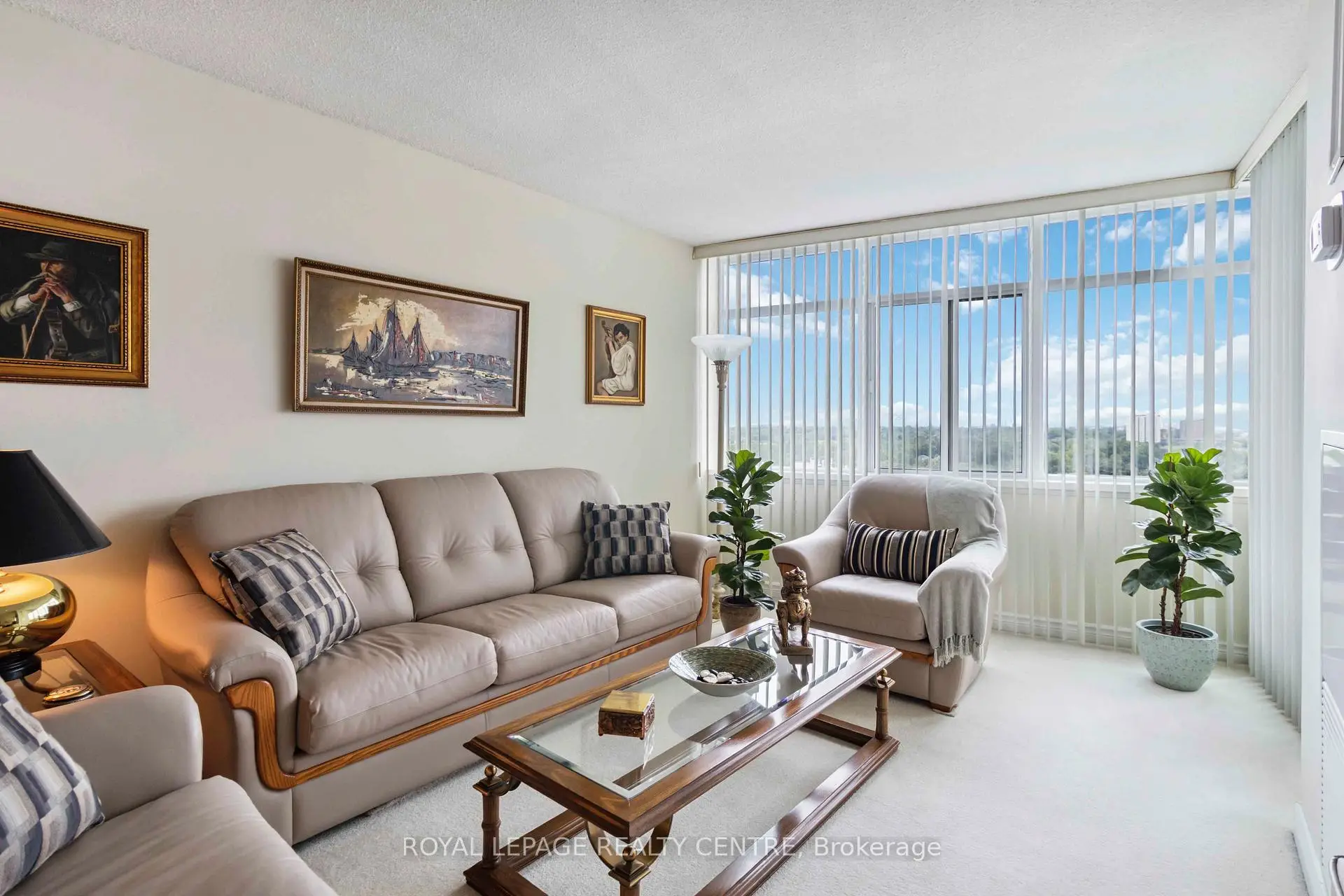 Presenting A Meticulously Maintained Two-Bedroom Condominium, Complete With A Spacious And Adaptable Den-Ideal For A Dedicated Office Or An Extra Bedroom. The Bright, Open-Concept Living Room Seamlessly Connects To An Expansive Private Terrace, Providing The Buildings Finest, Unobstructed Vistas Of The Toronto Skyline. Both Bedrooms Offer Substantial Space And Ample Storage Solutions. The Kitchen Is Thoughtfully Designed With Extensive Cupboard Space And A Comfortable Breakfast Area. This Unit Features Two Full Bathrooms, Convenient Ensuite Laundry, And A Secure Storage Locker. Residents Benefit From Inclusive Maintenance Fees Covering All Utilities, Cable Tv And Internet. Located Within A Premier Building, This Residence Offers Easy Access To Major Highways, Reputable Schools, Local Parks And Diverse Shopping Destinations. 2 Forced Air AC/Heat Units were replaced in 2023. Windows Were Replaced in 2024. Fantastic Opportunity! Do not miss!