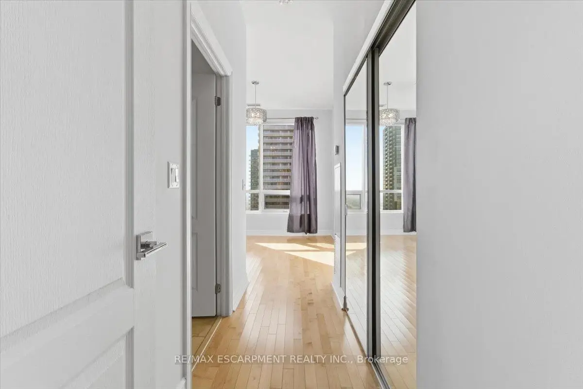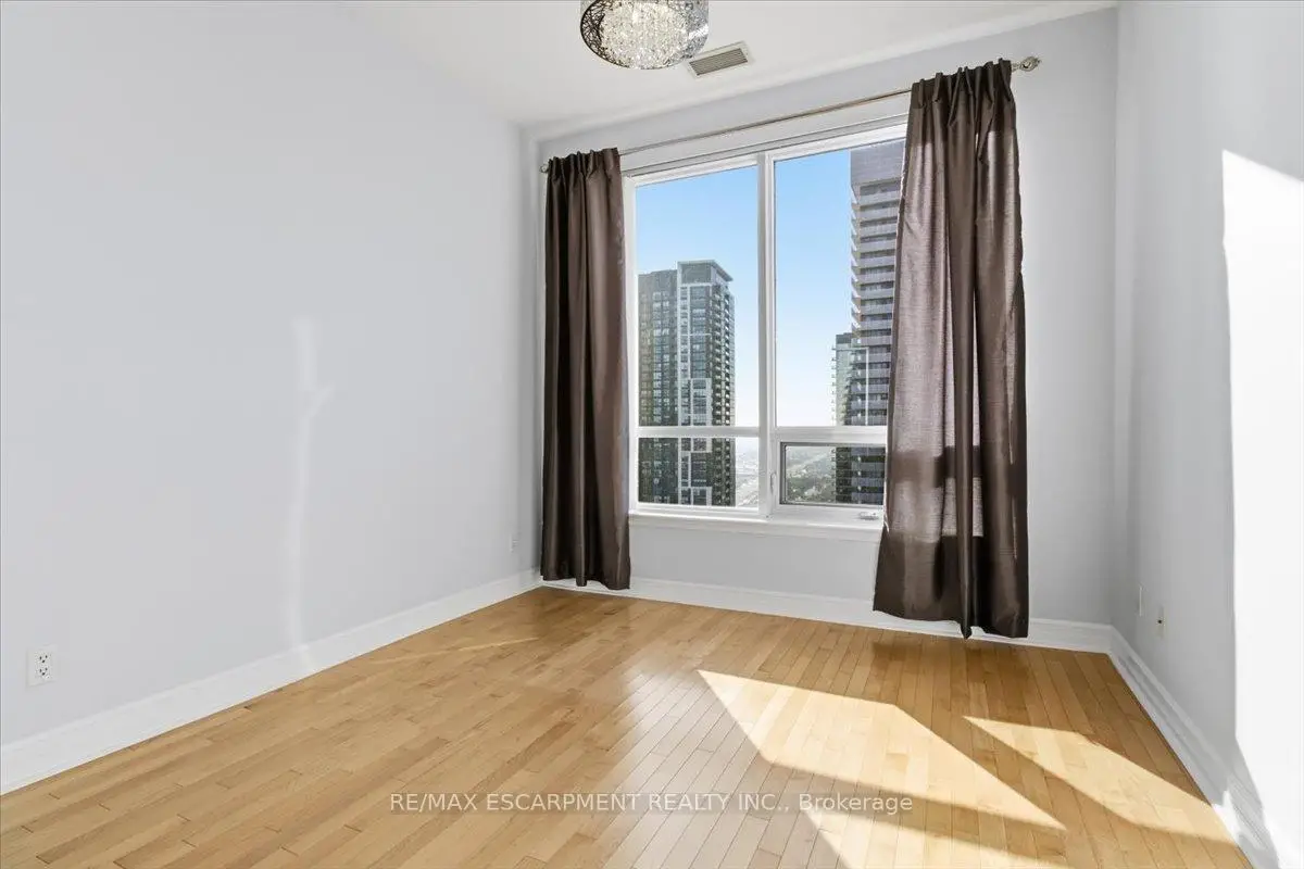 Luxurious Upper Penthouse with panoramic lake and city views. Bright and spacious 10 feet ceilings, 2-bedroom, 2-bath, 2 private balconies, upgraded flooring throughout, and an open-concept layout ideal for modern living. Enjoy a beautifully updated kitchen with stainless-steel appliances, new light fixtures, wood cabinetry and granite counters, plus upgraded bathrooms with new vanities. Located in the heart of Mississauga, steps to Square One, Celebration Square, Library, Cineplex, Sheridan College, YMCA, parks, and the bus terminal. The building offers 24/7 concierge and exceptional amenities including an indoor pool, whirlpool, sauna, fitness & weight rooms, party room, media/movie theatre, virtual golf, guest suites and more. Only 6 suites on the top floor, quiet, private, and rarely available. Main floor services include a walk-in clinic, dental office, pharmacy, coffee shop, 24/7 supermarket and hair salon. Truly executive living in the sky.
