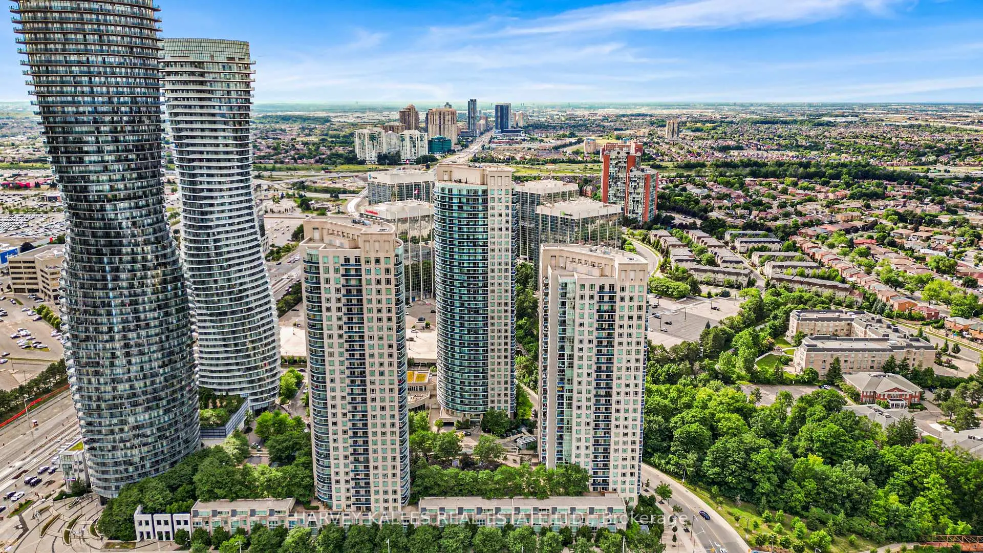 Welcome to this bright and spacious corner unit 2-bedroom, 2-full bathroom condo at the iconic 80 Absolute Ave, offering a rare and highly sought-after 2-car tandem parking plus a private locker and open balcony. Water and Heat Included in Maintenance. This well-designed split-bedroom layout provides excellent flow and privacy, ideal for professionals, couples, or small families. Floor-to-ceiling windows invite natural light and offer tranquil views of the lush green canopy, creating a serene backdrop year-round. This unit has been recently renovated with new flooring, fresh paint and updates made to the bathrooms and new appliances (dishwasher and stove). Located in the heart of downtown Mississauga, you're just minutes from Square One Shopping Centre, fine dining, entertainment, and the future LRT line, with easy access to HWY 403, 401, and QEW perfect for commuters. Residents of this award-winning building enjoy unparalleled amenities, including indoor and outdoor pools, a full fitness centre, squash and basketball courts, theatre room, running track, guest suites, party rooms, 24-hour concierge, and more. Only a handful of units in this building offer a 2-car tandem parking space plus your own private locker directly behind your parking spaces. This unit faces Absolute Ave and does not face the busy street, offering quiet and relaxing views from your private balcony. Don't miss your chance to live in one of Mississauga's most prestigious and amenity-rich communities!