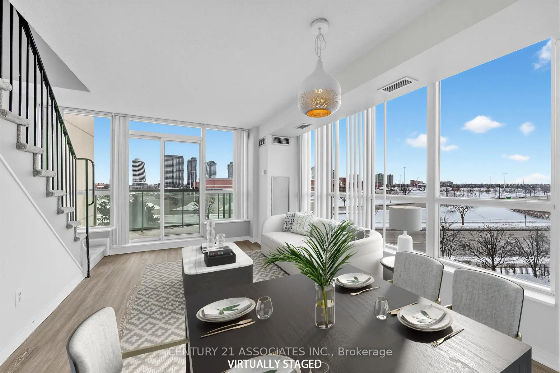 Open house Feb 22nd 2-4 pm-agent must accompany buyer from lobby entrance-call 416-451-1831 upon arrival. Totally Renovated Luxurious 2 storey corner condo with clear 180 degree views (East, South, and West)! Natural light all day + sunsets! This stunning Corner unit offers additional oversized windows with clear west/southwest views! Brand new Custom designed kitchen with quartz countertops and window ledge, Lazy Susan corner cupboard, soft close drawers, new custom backsplash, brand new LG Stainless Steel Appliances including Over the Range microwave, huge window above the sink (very rare in condominiums). Brand new vanities with quartz countertops, brand new upgraded vinyl flooring, brand new fixtures, underground parking and locker! Parkway Place condominiums offers full amenities which include 1) ample visitor parking, 2) Party Room, 3) Meeting Room, 4) Gatehouse Security Guard, 5) Library, 6) Billiard room 7) Indoor pool with hot tub 8) Sauna, 9) Tennis Court, 10) Games Room, 11) weights room, 12) cardio room. Central Air Conditioning, Heat, Hydro, Building Insurance, underground Parking, locker and Water are all included in the maintenance fees which are similar to newer condos that do not include hydro and have fewer amenities! Floor plan available online! Rarely offered 2 storey condominium with unobstructed SW & West Sunset views!