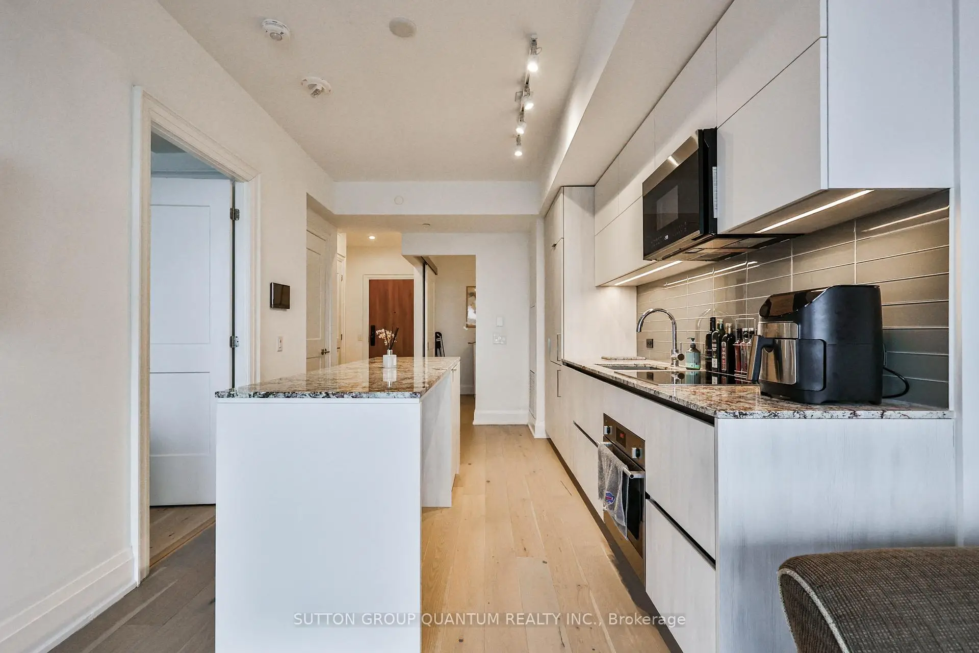 Attention Investors & End Users! Experience elevated living at Tanu Condos, a stylish newer residence in the sought-after lakefront community of Port Credit. This well-appointed 1 bedroom + den, 1.5 bathroom suite offers a smart, functional layout designed for modern living.The contemporary kitchen features quartz countertops, integrated fridge and dishwasher, stainless steel oven with cooktop, built-in microwave, subway tile backsplash, ample pantry storage, and a generous island with seating and additional storage. Engineered laminate flooring flows throughout the principal living areas.The open-concept living space is filled with natural light from floor-to-ceiling windows and offers a walk-out to the private balcony, perfect for relaxing or entertaining.The primary bedroom includes floor-to-ceiling windows, a double-door closet, and convenient access to the semi-ensuite. The 4-piece bath is finished with tile flooring, subway tile surround, quartz vanity, and built-in mirrored storage, and connects to the main powder room.The enclosed den with double sliding doors provides excellent flexibility as a home office, guest space, or potential second sleeping area.Additional features include in-suite Blomberg washer and dryer, smart home technology with phone integration, keyless entry, and license plate recognition security.Tanu amenities include 24/7 concierge, fitness and yoga studio, guest suite, theatre/media lounge, games and billiards room, outdoor terrace, car wash, pet spa, and visitor parking.Ideally located just steps to Port Credit GO Station, the waterfront, restaurants, parks, golf, and everyday amenities. Exceptional opportunity to own in one of Mississauga's most vibrant communities.