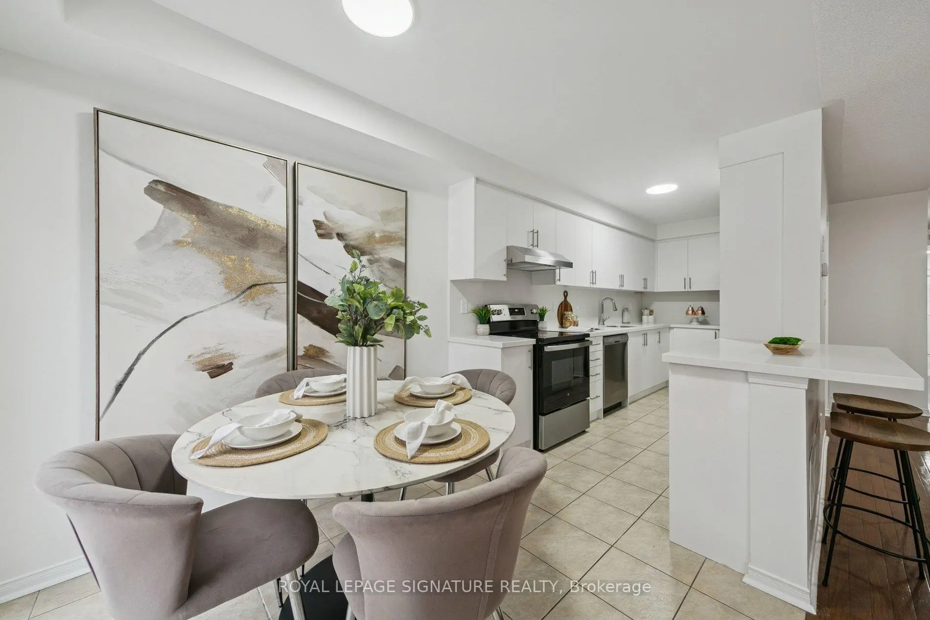 #25-3950 Erin Centre Blvd; a Daniels built quality townhome in prime Churchill Meadows location backing onto the common element playground. Quality upgrades throughout including a brand new modern kitchen (stone counters and matching backsplash, new premium s/s appliances, large peninsula with breakfast bar), brand new broadloom on 2nd floor, new bathroom vanities, flush mount light fixtures, freshly painted top to bottom, sleek roller window coverings and more - a totally refreshed interior in an established and well managed townhome complex. High demand area with easy access to 401/403/407 and area amenities are endless. A quiet enclave in a bustling community and a property that anyone would be proud to call 'home'
