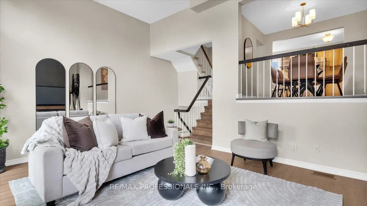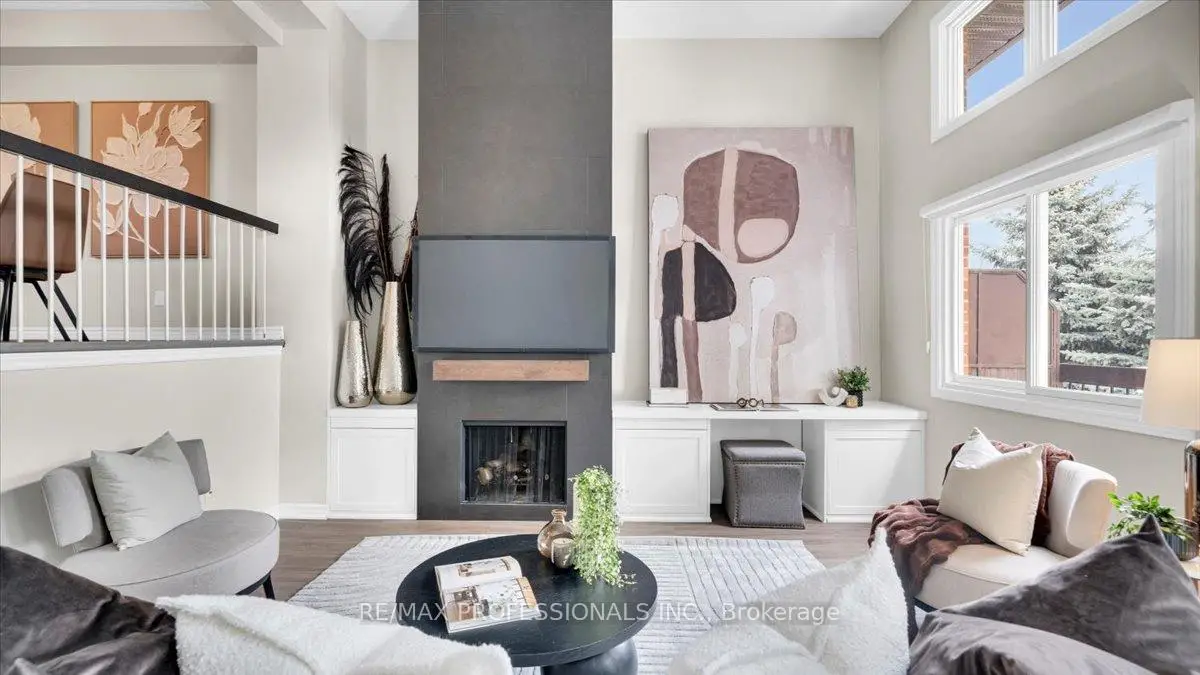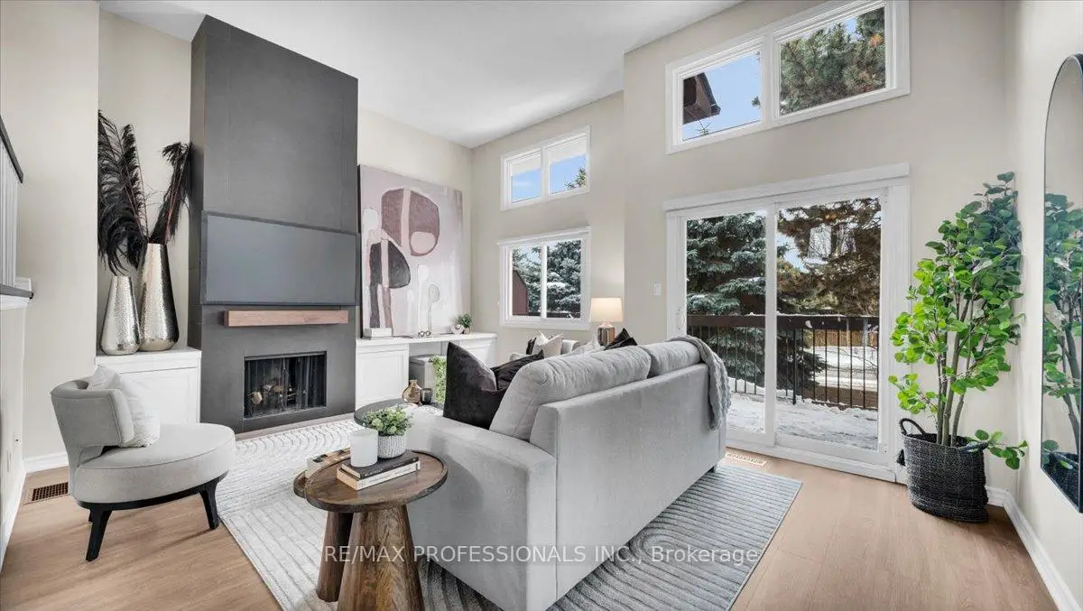 Superb townhome in Rockwood Village, Mississauga. Comfort, convenience, and exceptional value with 2,045 sqft of renovated living space throughout 4 floors. New flooring throughout with renovated main floor powder room. Updated interior dining light fixtures and new exterior sconces. Hard to find walk out to private rear deck with gardens and bbq area. Main floor offers walkout to bonus outdoor space with a large garden facing balcony. Awesome entertaining space includes open concept kitchen, eat in breakfast area + dining space that overlooks the living area with soaring ceilings. Cozy up to the real wood burning fireplace with built in workstation & library. 3 generous sized upper level bedrooms with primary ensuite and separate 3 piece bathroom. Extra large laundry room with additional fridge. 1 car garage, AAA+ location close to great schools, transit, airport and minutes to west Toronto!