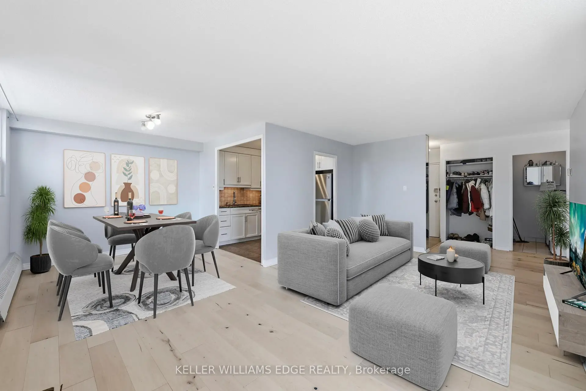All utilities included in maintenance! 3 bed, 2 wash condo 1,100+ sqft designed for comfortable family living. As you step inside, you're welcomed by living space with hardwood floor throughout, with an open living and dining area that feels perfect for hosting friends or enjoying a cozy evening at home. Large windows bring in plenty of natural light, and from here you can step out onto one of two private balconies, a great spot for your morning coffee. The kitchen flows easily into the main living area, making everyday life and entertaining simple and convenient. Down the hall, you'll find three generously sized bedrooms, including a spacious primary bedroom. This unit also features two bathrooms, making busy mornings easier for the whole family. One of the practical highlights is the separate laundry room with a full-size washer and dryer, along with a large storage closet off the main hallway, giving you plenty of space to stay organized. The building itself has seen many updates, including a refreshed stucco exterior, new windows and balcony doors, a newly paved parking lot, and a renovated underground parking area. Residents will soon enjoy amenities (renovation on-going) like the fitness room and party room. And the location is hard to beat. The building sits just half a block from the hospital, only five minutes from the new LRT, and there's public transit directly in front of the building for easy commuting. Shopping, daily essentials, and restaurants are all within walking distance, plus you're just minutes from Square One Shopping Centre. A spacious home, practical layout, and an incredibly convenient location - this condo checks all the boxes for comfortable city living. Some photos has been virtually staged.