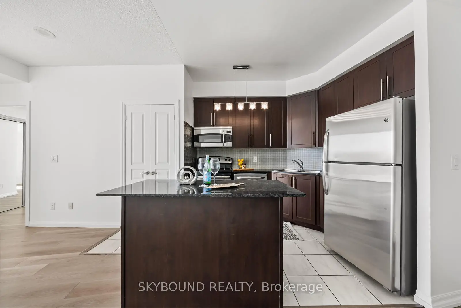 Welcome to urban sophistication at the prestigious Onyx Condos! This suite has been professionally painted with neutral colors. Features brand-new flooring and new light fixtures throughout the unit. Enjoy 9 ft ceiling height and floor-to-ceiling windows-a key feature that fills the bright, open-concept floor plan with natural light. Offering generous square footage, this unit is a standout for both space and functionality. The versatile living space includes a dedicated area for a home office-perfect for today's hybrid lifestyle. The modern kitchen is equipped with sleek stainless steel appliances, a large island and offers plenty of counter space for entertaining. This unit also features 1 full ensuite bathroom and a convenient powder room for guests. Located in the heart of Mississauga, you are just steps away from Square One, Celebration Square, the future LRT, and the GO Bus. Luxury building amenities include a rooftop deck with stunning views, 24-hour concierge, pool, hot tub, steam room, gym, and visitor parking. Includes 1 dedicated parking spot.