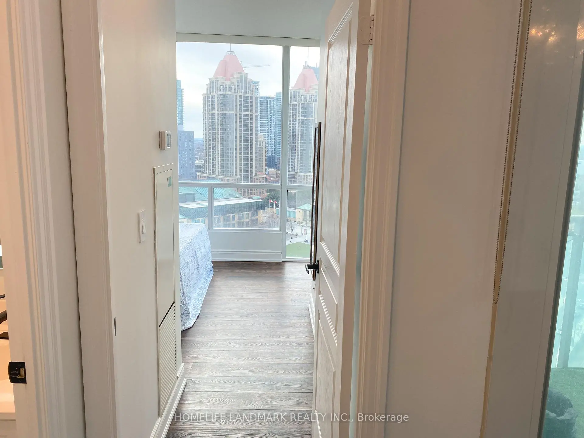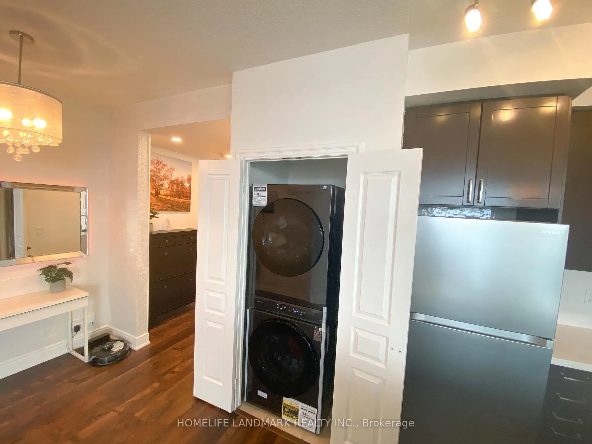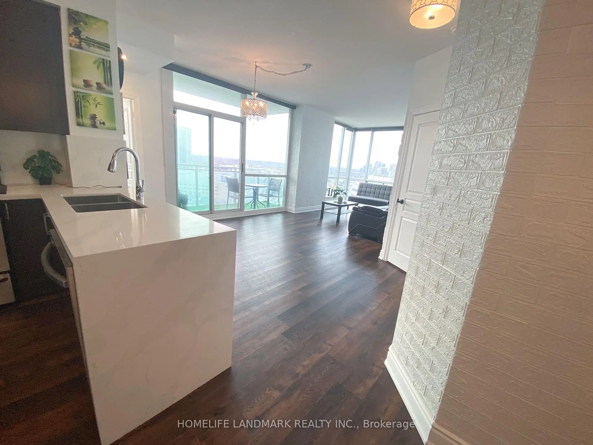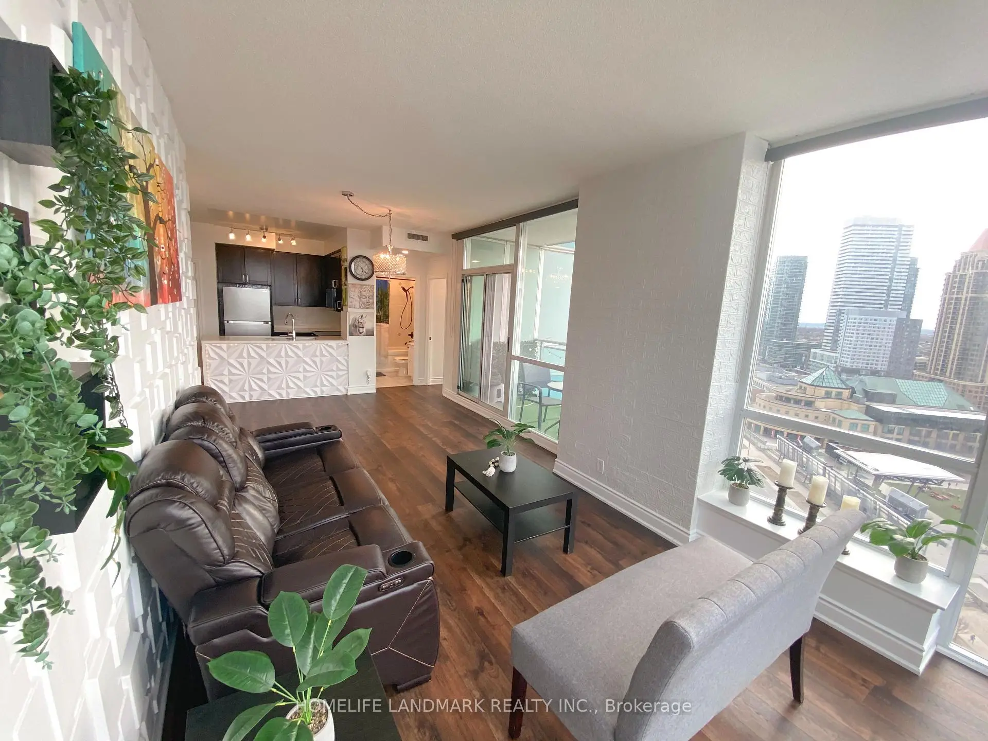Stunning 2+Den Condo in the Heart of Mississauga - Unmatched Views of Celebration SquareWelcome to this beautifully upgraded 2-bedroom + den condo located in the vibrant heart of Mississauga, offering breathtaking, unobstructed views of Celebration Square right from your unit. Enjoy front-row seats to summer events, festivals, and spectacular fireworks on Canada Day and New Year's Eve-all from the comfort of your home.This modern, move-in-ready unit has been thoughtfully upgraded with high-quality finishes and contemporary touches throughout. The entire space features newly installed vinyl flooring (2024), giving the home a fresh and elegant look. The unit was also freshly painted in 2024, creating a bright and welcoming atmosphere. Stylish accent walls(2024)enhance the living room and both bedrooms, adding warmth, depth, and a designer touch to the home.The upgraded kitchen is a true showstopper, featuring a newly installed quartz countertop, elegant quartz backsplash, and a stunning waterfall edge design. It also includes a brand-new sink and modern faucet, along with new appliances installed in 2025, including a refrigerator, dishwasher, and microwave-perfectly blending style and functionality.The dedicated laundry room includes a newly installed AI-featured washing machine (2025), adding smart convenience to your daily routine.Enjoy enhanced lighting with newly installed pot lights throughout the unit, elevating the ambiance and sophistication of every room. The second bathroom has been fully upgraded with modern hardware and features a large Bluetooth-enabled mirror installed in 2025, combining luxury with technology.The versatile den provides the perfect space for a home office, study area, or additional living area.Ideally located just steps away from Square One Shopping Centre, along with easy access to public transit, dining, and entertainment, this condo offers the ultimate urban lifestyle in one of Mississauga's most sought-after locations.