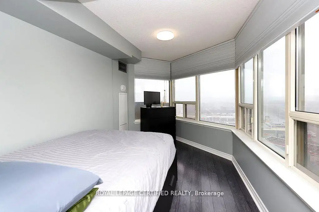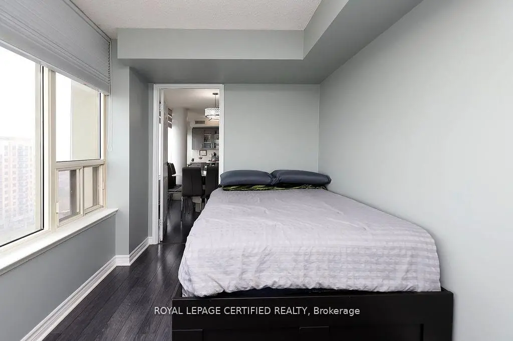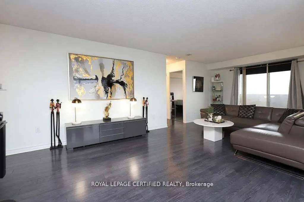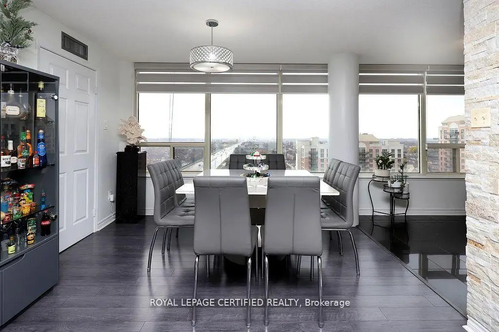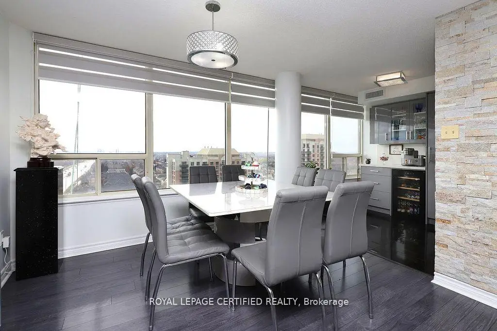 Welcome to this Beautiful Sun-filled 1400+ sq ft Condo with 180 degree views boasting 2+1 bedrooms and 2 bathrooms! This meticulously kept condo features a designer kitchen that highlights granite counter tops with granite full height backsplash, a water filtration system, and a custom designed coffee bar & wine fridge with room for a breakfast area! The dinning room has an amazing view of the west and overlooks the living room. The expansive living room is highlighted with a feature wall made of stone, built in electric fireplace and a tv mount. Zebra blinds featured in Kitchen, Living, Dinning, and Primary allow for versatile control over natural light and privacy! The spacious primary bedroom has a walk in closet and a 3 piece ensuite with granite slab shower and an extra custom made cabinet for more storage. The large 2nd bedroom features a double closet and south/east views while the +1 bedroom features west and south views with custom insulated blinds! This condo also has 2 lockers & 2 parking spaces + a rented space (available to transfer). Constellation Place offers lots of amenities including, tennis/pickleball court, indoor pool, fitness room, sauna, party room and more! This condo features upgrades galore, a unique 3rd bedroom, plenty of space and is close to all major shopping and transit for all your conveniences!