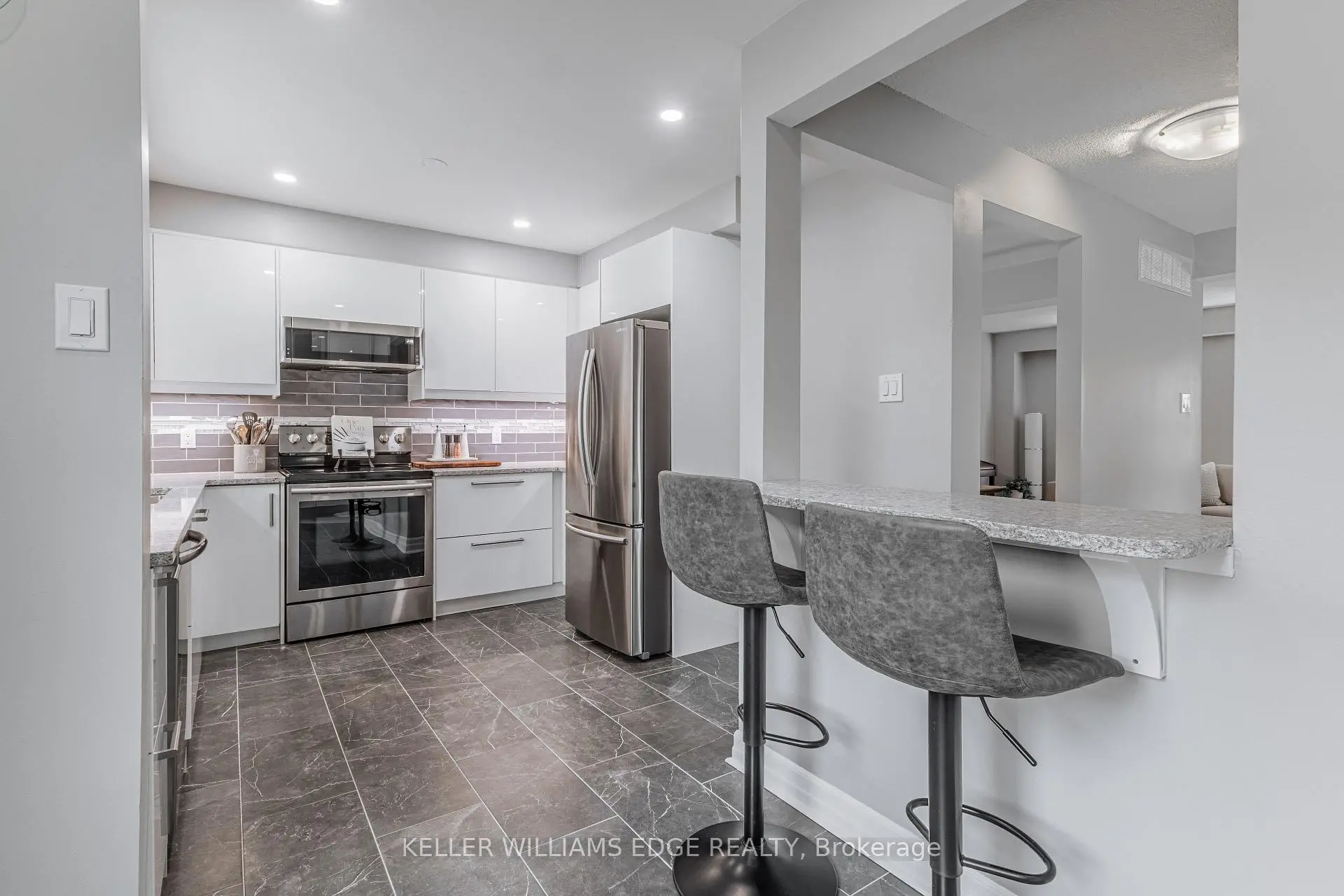 Beautiful end-unit townhome in a highly desirable, family-friendly complex, offering a functional layout and stylish, move-in ready updatesthroughout. The bright open-concept main level features hardwood flooring, a welcoming living room with a built-in entertainment unit, and aspacious dining area highlighted by a modern chandelier-perfect for hosting family gatherings and holiday dinners. The stunning kitchen,updated in 2023, showcases high-gloss white cabinetry, pots and pans drawers, quartz countertops, stainless steel appliances, a built-in coffeebar, and a classic subway tile backsplash, all enhanced by strategically placed pot lights and under-cabinet lighting for a bright and invitingatmosphere. The ground level offers a large open-concept family room with a convenient 2-piece bath and walk-out to a private, fully fencedbackyard with a stone interlocking patio-ideal for relaxing or entertaining. Upstairs, you'll find generously sized bedrooms with hardwoodflooring and a beautifully updated 4-piece bathroom (2025) featuring modern tile and a stylish furniture-style vanity. Additional updates includeengineered hardwood and fresh paint throughout in 2025. Ideally located close to parks, schools, grocery stores, and shopping, this home offersthe perfect balance of urban convenience and green space, with quick access to major highways (QEW, 403, 401, 427) in under 10 minutes, just5 minutes to Square One, and 15 minutes to Port Credit's vibrant dining and entertainment scene. Set in a quiet area with minimal street noiseand low condo fees compared to similar units, this is an exceptional opportunity-don't miss your chance to call it home!