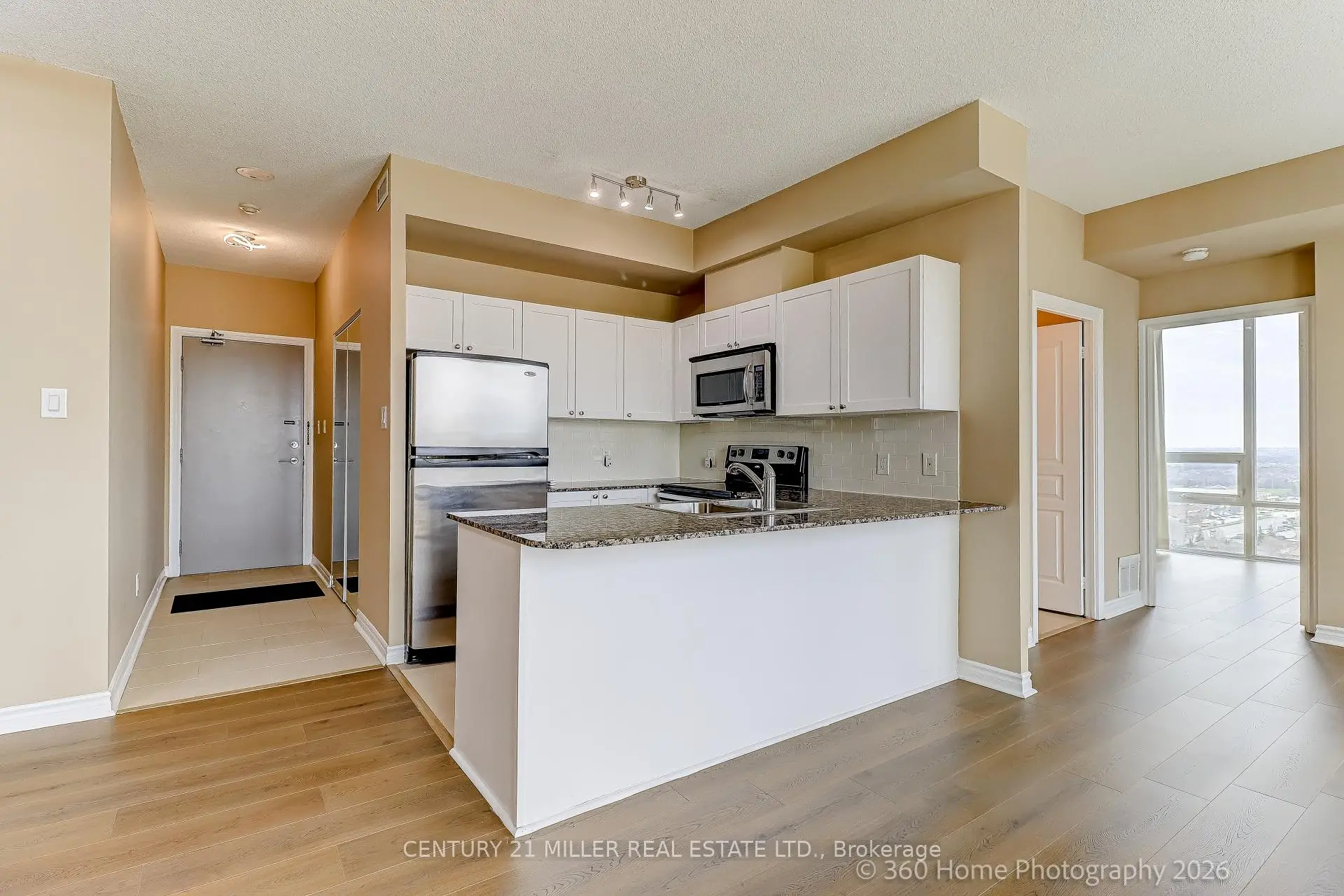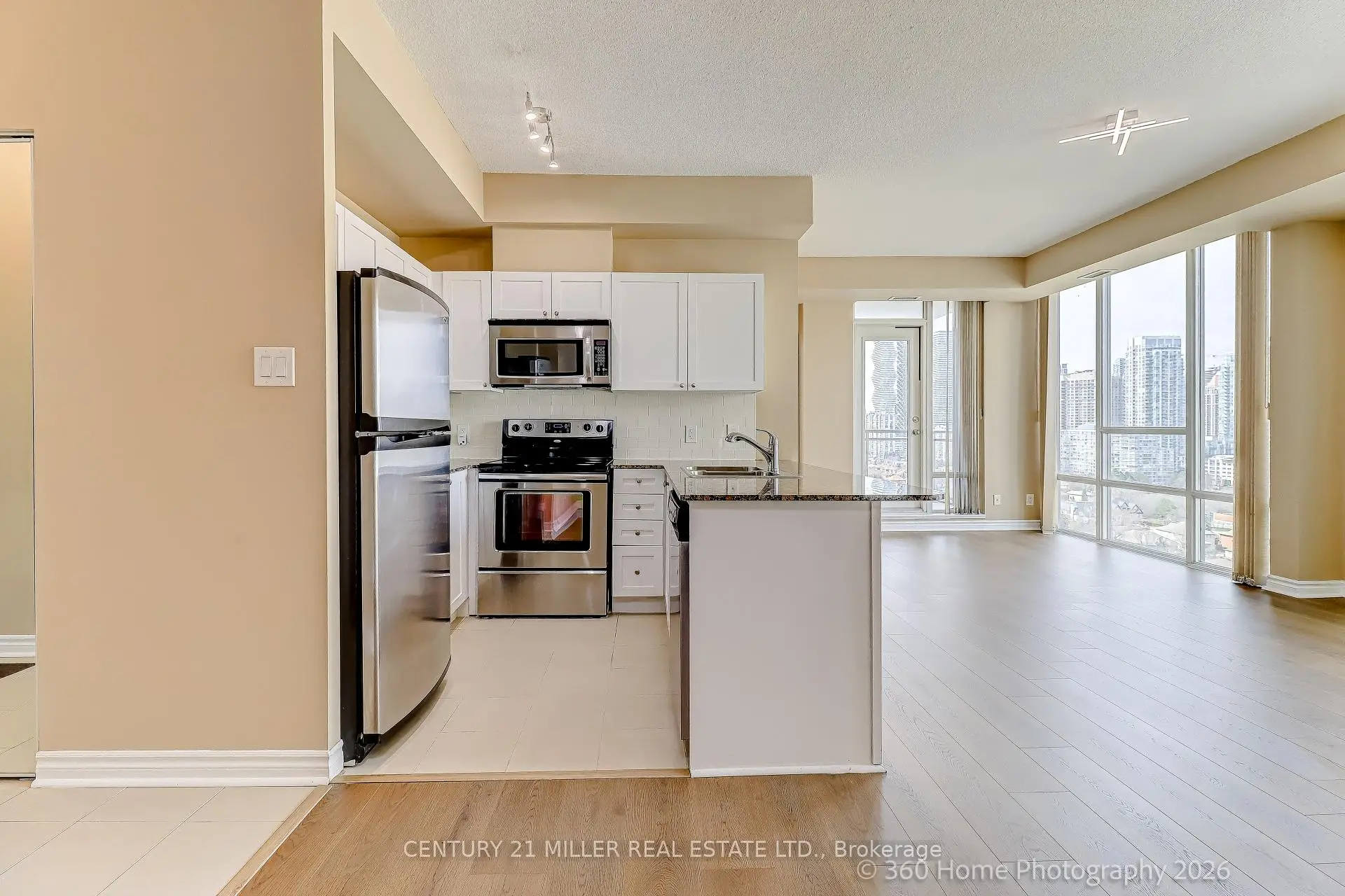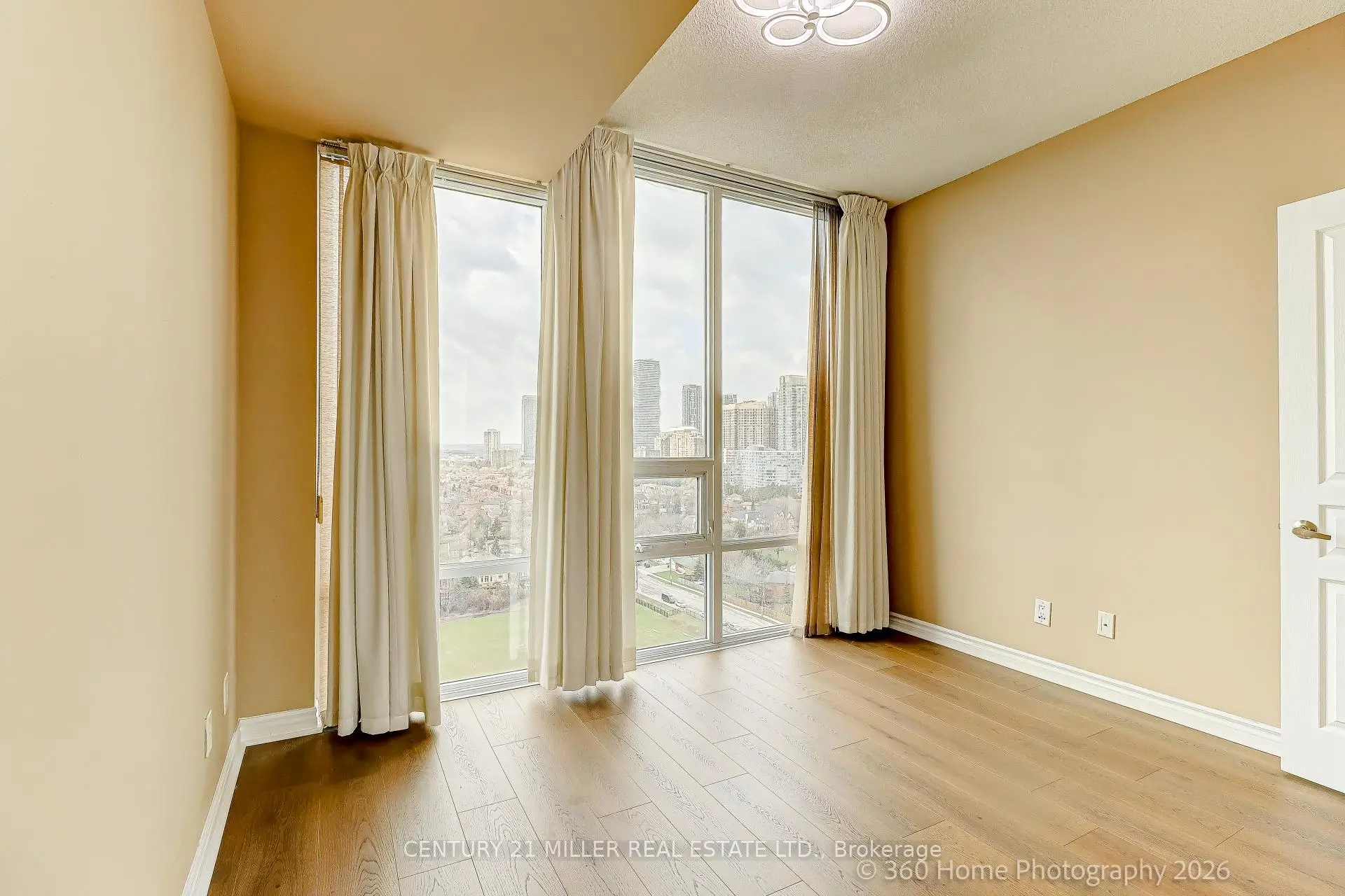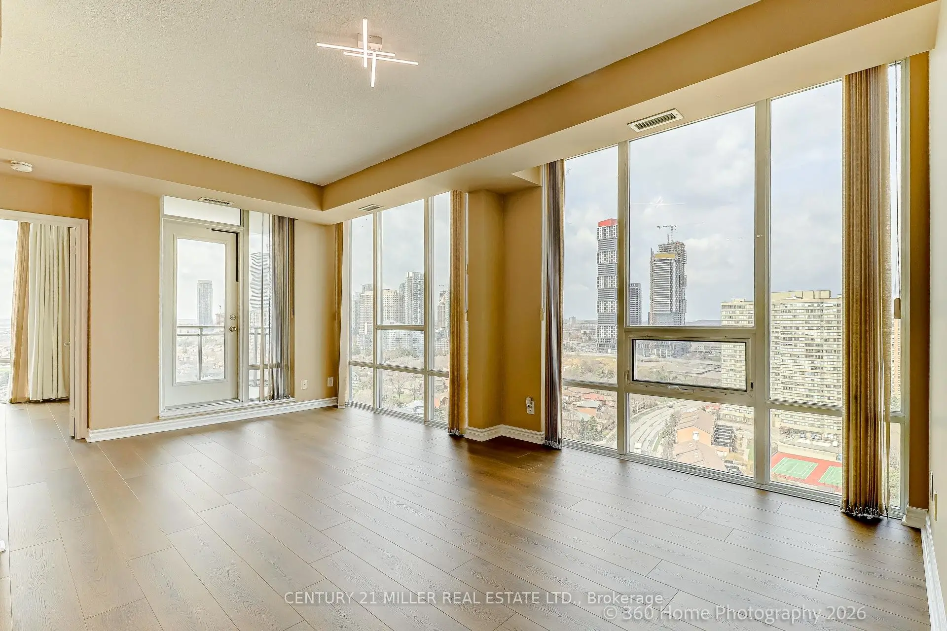 **Welcome to UNIT 2306 at 3525 Kariya Dr!**Discover this bright and modern 1-bedroom + den, 1-bathroom suite that captivates with stunning city views from its private balcony Corner Unit. This unit perfectly blends comfort, convenience, and contemporary design. Open Concept Layout**: Floor-to-ceiling windows flood the space with natural light, creating an inviting atmosphere .Equipped with granite countertops, stainless steel appliances, and ample cabinet space, ideal for both everyday living and entertaining. Enjoy the benefits of carpet-free flooring throughout, ensuring a clean and modern aesthetic while simplifying maintenance. New Laminated Waterproof flooring Freshly painted Walls. Includes one parking space and one locker for added convenience. Residents of Elle Condos enjoy access to a wide range of premium amenities, including:- Fully equipped fitness Centre- Indoor pool Mini Cinema Room Pool Table Room sauna- Party room and guest suites- Visitor parking- 24-hour concierge service Conveniently situated just minutes from Square One, major highways, public transit, restaurants, parks, and schools, this home offers exceptional value in one of Mississauga's most desirable communities. This suite is ideal for first-time buyers, downsizers, or investors looking for a fantastic opportunity to own in Elle Condos. Don't miss out on this remarkable chance to make UNIT 2306 your new home!
