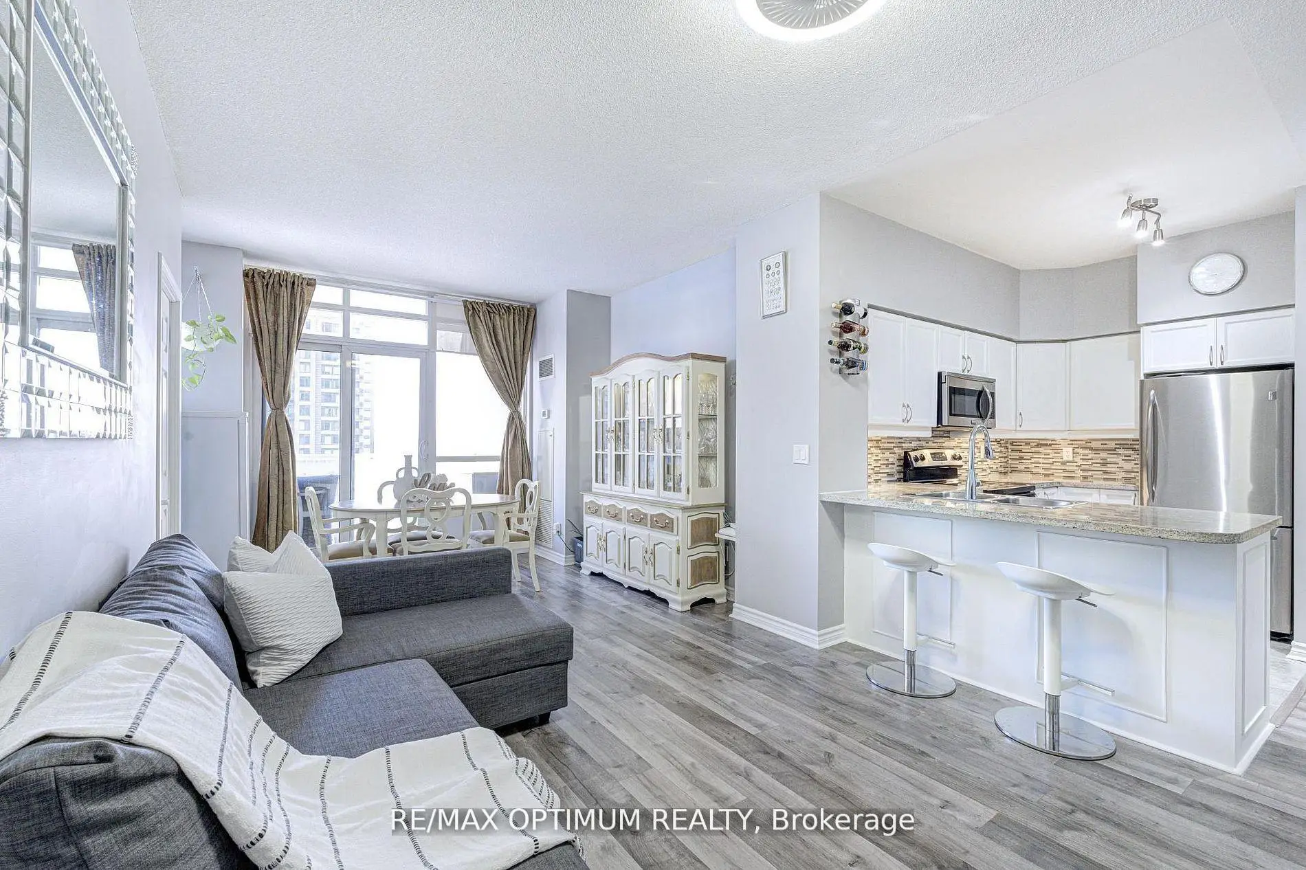 Bright, spacious, and move-in ready-this 2-bedroom, 2-bath condo at One Park Tower combines modern upgrades with breathtaking city views. Unit 1104 at One Park Tower offers a spectacular 2-bedroom, 2-bathroom suite with soaring 9-ft ceilings and abundant natural light. This thoughtfully upgraded condo features a modern kitchen with sleek stainless steel appliances, and generous cabinetry, perfect for cooking and entertaining. The open-concept living and dining area flows effortlessly onto a rare L-shaped wraparound balcony, offering panoramic city views-ideal for morning coffee or evening relaxation. Featuring 2 generously sized bedrooms, including a primary suite with a private ensuite bathroom for comfort and privacy. Both bathrooms have been tastefully designed for luxury comfort . Elegant laminate flooring runs throughout, creating a seamless, carpet-free living space. Never leased and offered for sale first time, this unit includes a parking spot conveniently located just steps from the elevator. Located in the heart of Mississauga City Centre, this residence offers resort-style living with world-class amenities: 24-hour concierge, indoor pool, sauna, fitness centre, rooftop terrace, party room, guest suites, and a golf simulator. Steps from Square One, Celebration Square, Sheridan College, public transit, restaurants, and entertainment, everything you need is at your doorstep. Experience the perfect blend of luxury, comfort, and convenience in this bright, move-in ready condo-an exceptional opportunity in one of Mississauga's most sought-after towers.