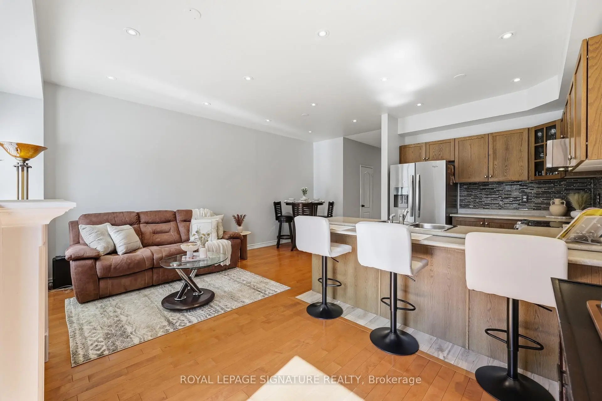 Nestled in a vibrant, family-friendly community, this meticulously maintained 3-bedroom, 3.5-bath residence offers exceptional comfort and convenience. Featuring 9 ft ceilings on the main level, the home welcomes you with a spacious foyer and double-door entry, along with convenient direct garage access. The main floor showcases maple hardwood flooring throughout, an elegant oak staircase, and pot lights that brighten the space with a modern touch. California shutters in the living room addboth style and privacy. The open-concept layout is ideal for both everyday living and entertaining. The kitchen is equipped with oak cabinetry, stainless steel appliances, built-in microwave, dishwasher, and a breakfast bar with seating for four. The inviting living room features a modern electric fireplace and a walk-out to a spacious, renovated deck - perfect for seamless indoor-outdoor living. Upstairs, laminate flooring continues throughout, offering a stylish, carpet-free upper level.The primary bedroom features a custom walk-in closet with a built-in organizer and a well-appointed 4-piece ensuite bathroom. The second and third bedrooms also include custom closet organizers, maximizing storage and functionality for the entire family. All bathrooms have been upgraded with brand new dual-flush toilets, adding both efficiency and modern convenience. The home has been freshly painted within the last three years, reflecting true pride of ownership and move-in-ready appeal. The garage has been thoughtfully upgraded with custom cabinetry and a custom-built loft,providing exceptional additional storage and organization. Ideally situated close to parks, a high school, and nearby shopping plazas, this property is just minutes to Heartland Town Centre and Square One Shopping Centre, providing excellent access to amenities while maintaining a desirable neighbourhood setting. Come experience the comfort, style, and convenience this beautiful home has to offer - book your showing today!