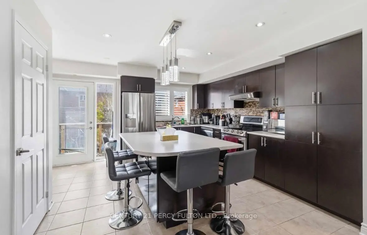 Beautifully upgraded 3-bedroom end-unit townhouse in a highly sought-after, family-friendly neighbourhood-offering the feel of a semi-detached home. This bright and spacious property features elegant hardwood flooring throughout, complemented by solid wood stairs and tastefully renovated bathrooms.The open-concept layout is filled with natural light from large windows, with serene views overlooking a park-providing both privacy and a peaceful setting. The functional design is perfect for families and entertaining alike.Ideally located just minutes from major highways, shopping centres, public transit, top-rated schools, and the hospital, this home offers exceptional convenience in a prime location.
