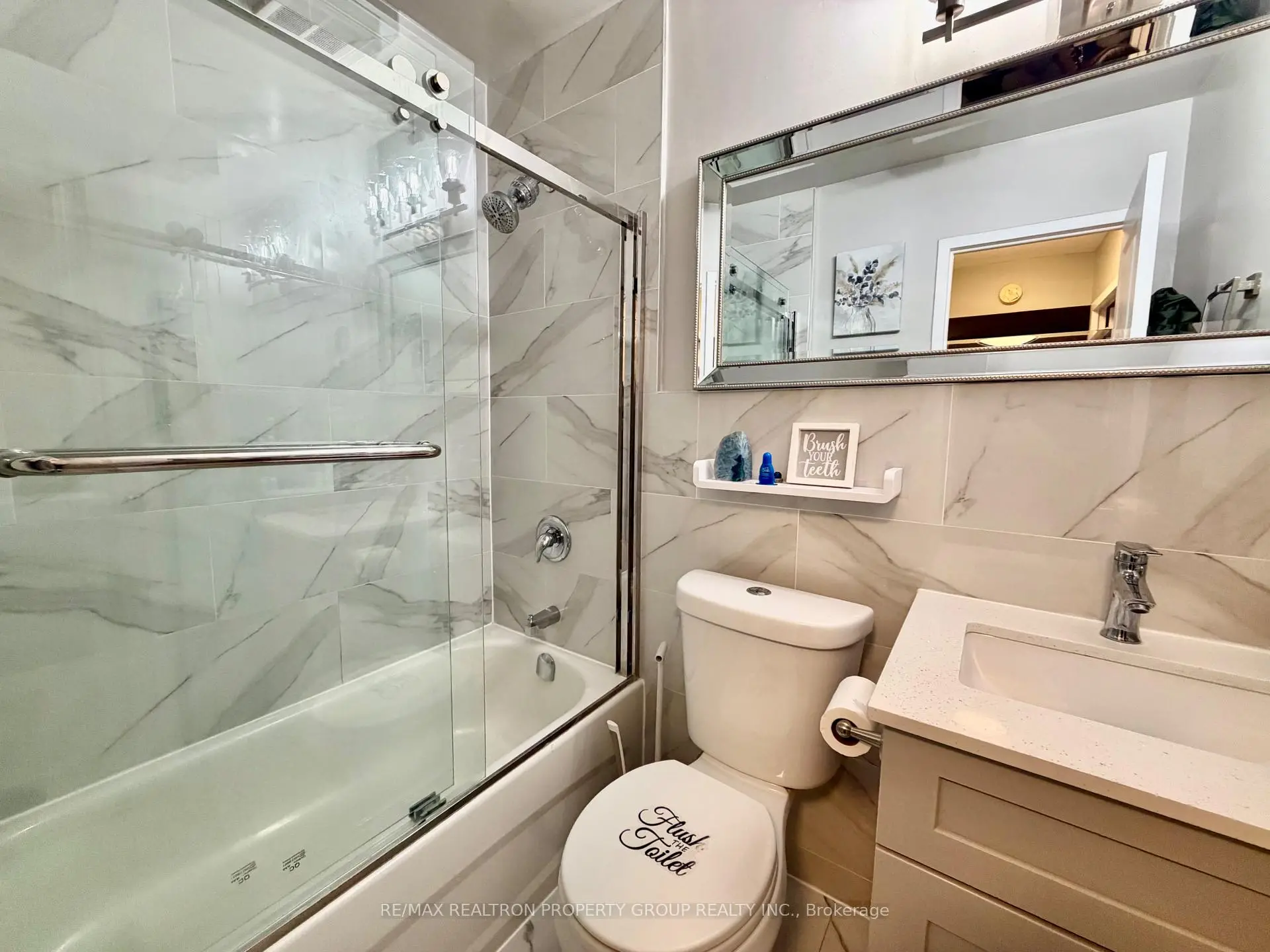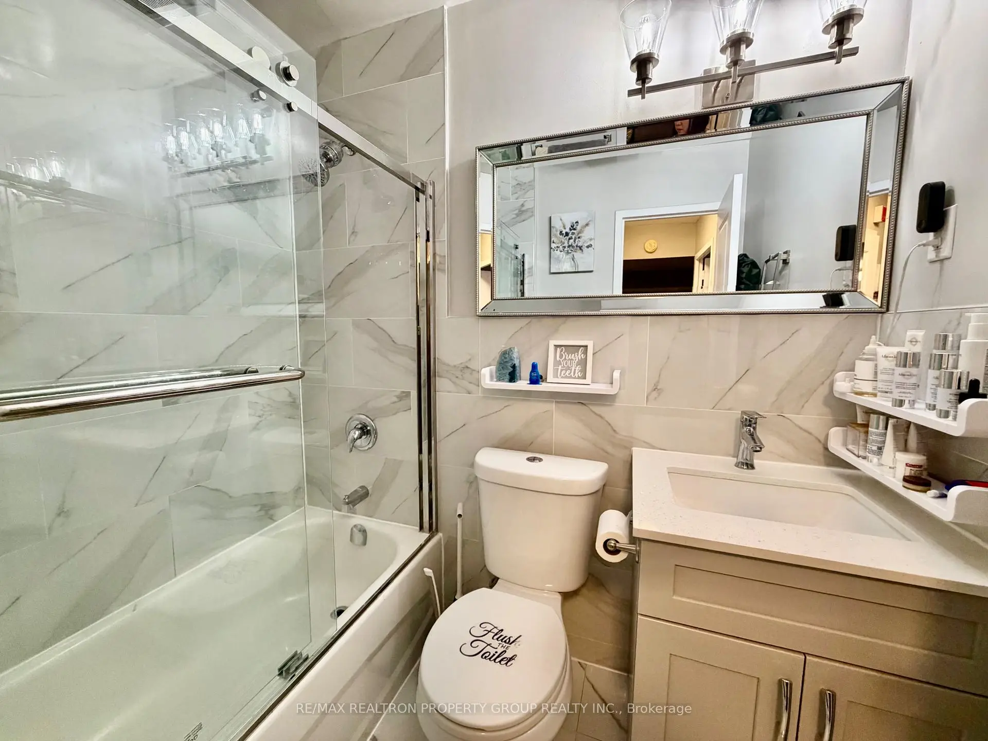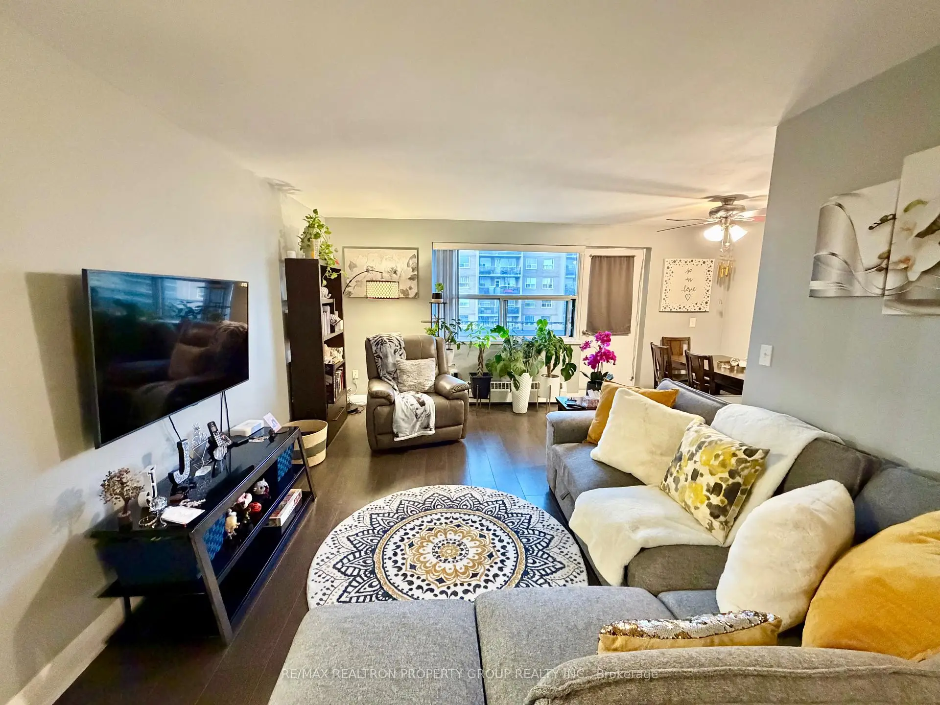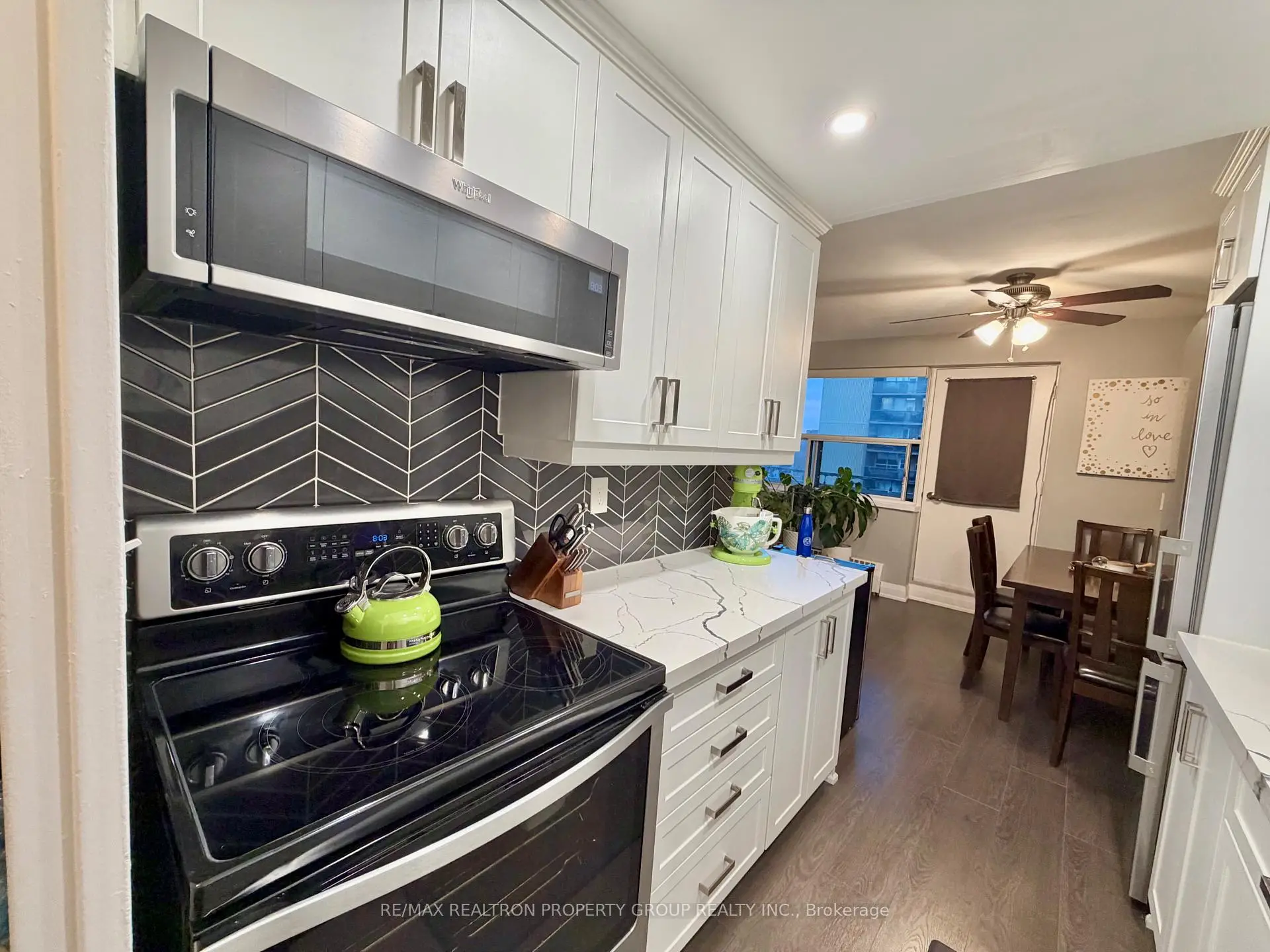 Welcome to Suite 704 at Bloorgate Towers - a beautifully and fully renovated 1-bedroom, 1-bathroom condo offering exceptional value in the established Applewood community. Fully renovated in 2020, this move-in-ready suite features durable laminate flooring throughout, creating a seamless, contemporary feel from room to room.The chef-inspired kitchen boasts white shaker cabinets reaching to the ceiling, quartz countertops, a striking vertical herringbone charcoal tile backsplash, undermount sink, and Whirlpool stainless steel appliances including a bottom-freezer fridge, smooth-top stove, and built-in microwave range. The bright, open-concept living and dining area is generously proportioned and walks out to a private tiled balcony with east-facing open views - ideal for morning coffee, evening relaxation, or entertaining.The spa-inspired bathroom features large-format porcelain tile from floor to ceiling, a frameless sliding glass door, dual-flush toilet, upgraded quartz vanity with modern lighting, and a ventilation fan. The primary bedroom comfortably accommodates a queen bed with ample closet storage. Additional storage includes a dedicated in-suite linen closet and a separate locker room with built-in shelving - a rare offering at this price point. At just $289.88/month, the all-inclusive maintenance fee covers heat, hydro, water, internet, cable TV, home phone, and one surface parking space - delivering some of the lowest carrying costs available for a fully renovated suite anywhere in the GTA. Coin laundry is conveniently located on main floor.Ideally situated steps from transit, shopping, parks, schools, places of worship, and recreation centres. Whether you are a first-time buyer, downsizer, or investor, this fully renovated suite successfully bridges quality and affordability in one exceptional package.