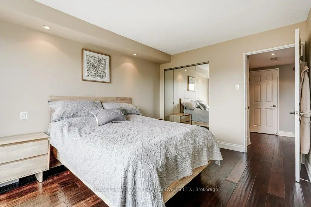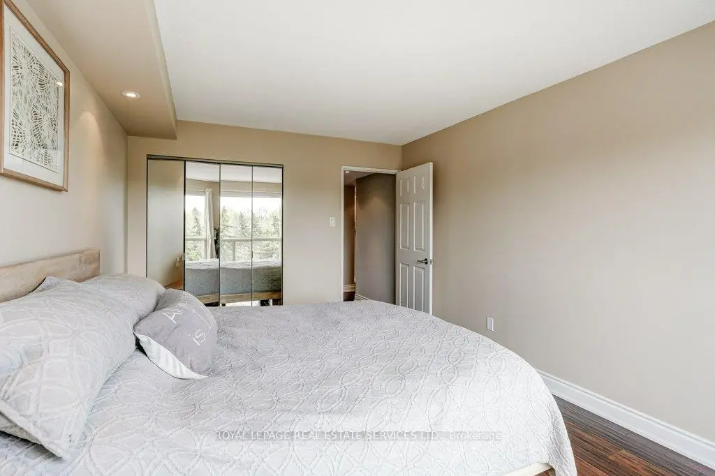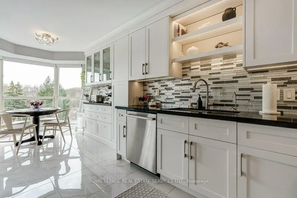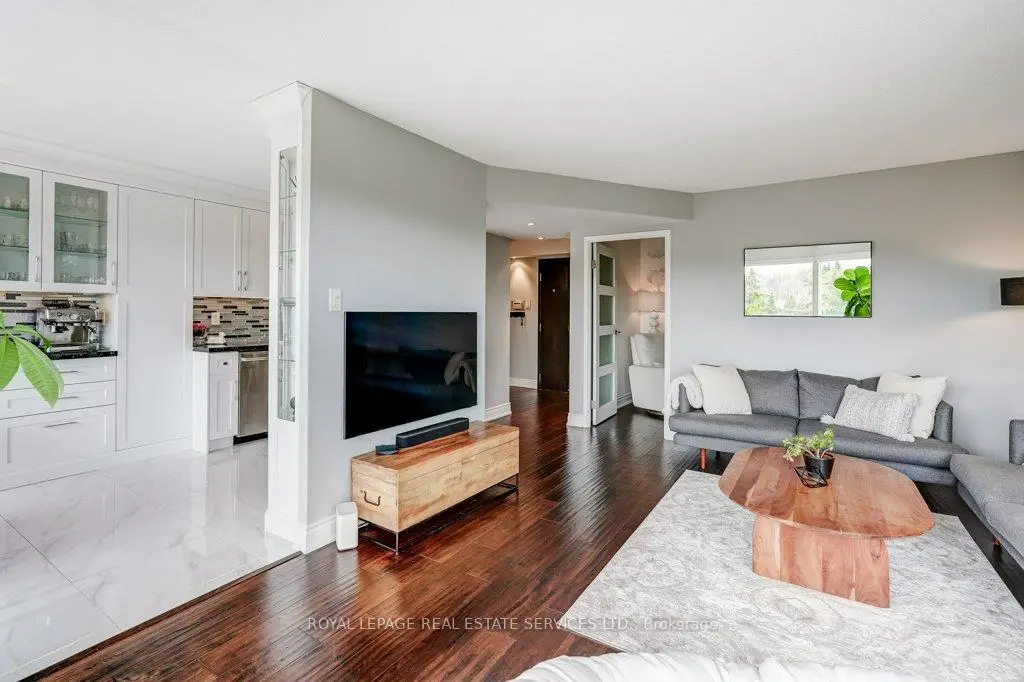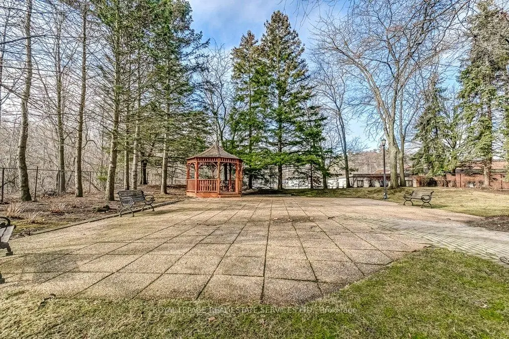 One of Mississauga's most sought after condo communities, Canyon Springs offers an exceptional blend of resort style amenities and tranquil surroundings, nestled among beautifully maintained greenspace. This rarely offered, fully renovated 1 bedroom plus den suite provides over 800 sq. ft. of thoughtfully designed living space, ideal for today's flexible lifestyle. This bright and sunny northeast facing unit features unobstructed views of lush greenery and treetops, filling the open concept living and dining area with natural light. The versatile den is perfect as a second bedroom, home office, or guest space. The suite showcases quality finishes throughout, including hand scraped hardwood flooring, pot lights, and a custom, timeless white eat in kitchen complete with quartz countertops, stainless steel appliances, and a Fisher & Paykel fridge. The spacious primary bedroom offers peaceful sunrise views, double closets, and custom built-ins, while the beautifully renovated bathroom features a walk in rain and handheld shower with elegant marble mosaic tile. Ensuite laundry adds everyday convenience. A rare and valuable bonus: Two underground parking spaces and a locker for additional storage. Maintenance fees include hydro, gas, high speed internet and Rogers cable TV enhancing overall value. Residents enjoy access to an impressive array of amenities, including a 24 hour concierge, indoor pool, hot tub, sauna, fitness centre, party/meeting room, billiards, library, car wash, and outdoor features such as a chipping/putting green, gazebo, BBQ area, and patio spaces.Ideally located close to parks, trails, golf courses, shopping, transit, major highways, and just minutes to the University of Toronto Mississauga campus. An outstanding opportunity to enjoy comfort, convenience, and community living in a highly desirable setting.