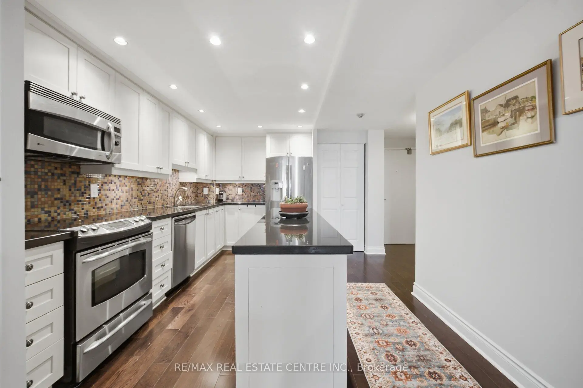 Spectacular lake views meet effortless living in this beautifully updated penthouse suite, with over 1200sq.ft of living space and ideally located in the charming Village of Clarkson. Nestled in a quiet, well-maintained building, this bright and spacious 2-bedroom, 2-bathroom home showcases a sought-after open-concept layout designed for both comfort and entertaining. Soaring 9-foot ceilings and expansive windows flood the space with natural light, while offering views of Lake Ontario. The thoughtfully upgraded interior features rich hardwood flooring throughout, elegant pot lights, and a modern kitchen complete with centre island, granite counter-tops, stainless steel appliances, and premium finishes Both bathrooms are appointed with stylish Kohler fixtures, adding a touch of luxury to everyday living. Additional highlights include two parking spaces, ensuite storage, and a private locker for added convenience. Enjoy exclusive access to the Walden Club with a family membership, and take advantage of an unbeatable location-just steps to Clarkson GO Station, top-rated Lorne Park schools, parks, shops, and the lake. A rare opportunity to own a refined penthouse in one of Clarkson's most desirable communities. Access to the Walden Club is included in the maintenance fee This club is shared between 6 other buildings. Walden Club Amenities include; Party room, library, gym, squash court, basketball court. Seasonal amenities including outdoor pool and tennis courts.
