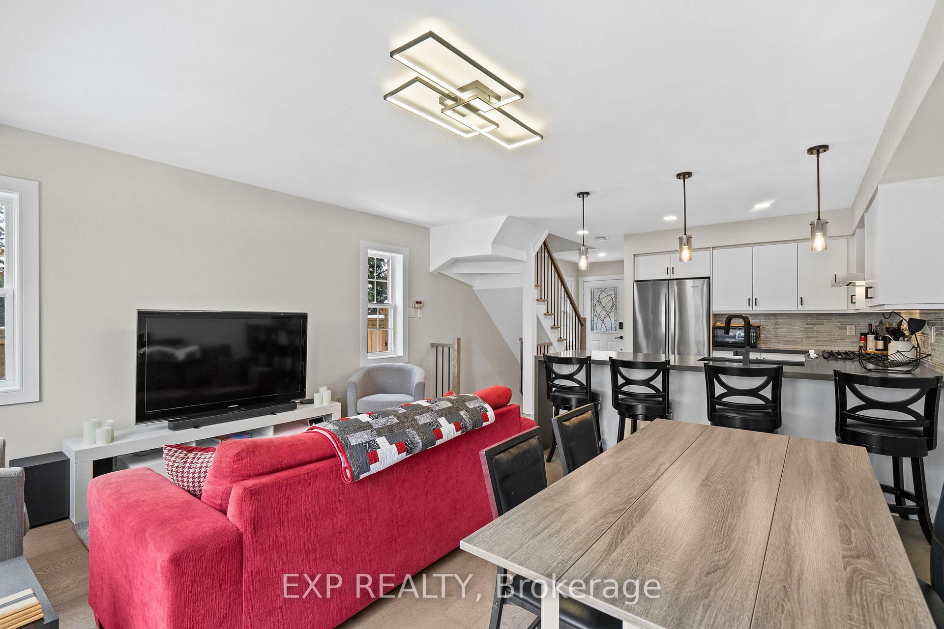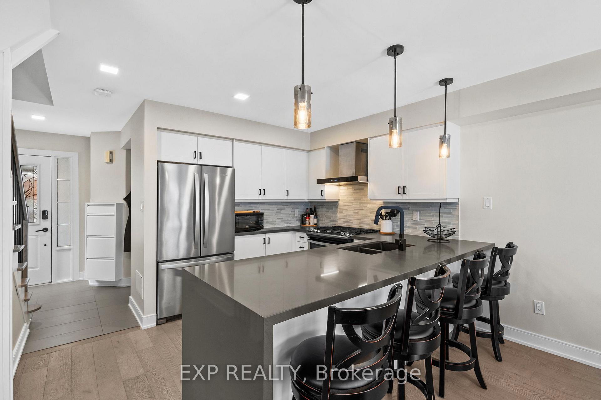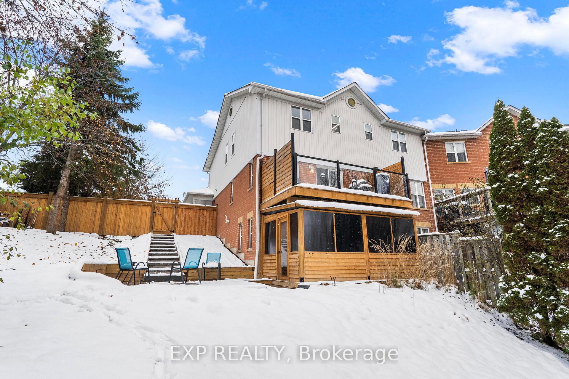 Beautifully Updated End-Unit Townhome Backing Onto Conservation! This exceptional end-unit townhome sits on a premium lot at the end of a quiet court, offering expansive ravine and conservation views. Completely updated from top to bottom, the home features stunning wide-plank white oak engineered hardwood floors, a bright open-concept main level, and a chef-inspired kitchen with a gorgeous waterfall quartz island. The living/dining area opens directly onto a private deck overlooking the ravine-perfect for relaxing or entertaining, complete with a natural gas BBQ hookup. Upstairs, you'll find 3 spacious bedrooms including a primary suite with vaulted ceilings, a walk-in closet, and a beautifully updated 4-piece ensuite with modern designer fixtures. The walkout lower level extends the living space with a bright bedroom, full bath, indoor, outdoor workout room, office area, laundry, incredible storage space and direct access to the backyard-ideal for guests, in-laws, or a private retreat. With 3+1 bedrooms and 3.5 stylishly renovated bathrooms, this home offers exceptional space, modern luxury, and unmatched privacy. Conveniently located within walking distance to Newmarket High School (French Immersion), Pickering College, and Bogart Public School, as well as transit, recreation facilities, and just 5 minutes to Hwy 404. Furnace replaced in 2020, AC, Instant Hot water, all appliances just 2 yrs new! Everything done. A rare opportunity for an end-unit townhome with extensive ravine views in one of Newmarket's most desirable pockets-truly move-in ready!