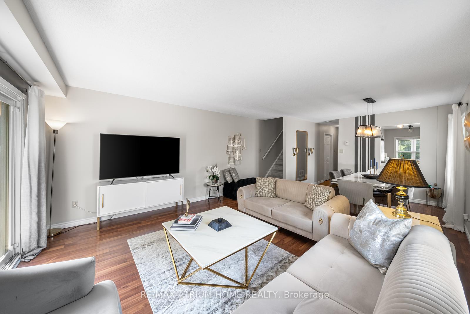 Beautifully Updated Two Story Corner Unit in a Vibrant Community!--------------------------------------------------------------------------- --------------------------------------------------------------------------------------------------------------------------------------------------------------------------- This charming and sun-filled corner unit offers a thoughtfully designed layout with tasteful updates throughout. -----------------------------------------------------------------The main floor features a spacious open-concept living and dining area, a convenient pass-through to the kitchen, and a stylish powder room perfect for entertaining guests. Upstairs, the bright and airy primary bedroom includes a semi-ensuite bath and generous his-and-hers closets. ----------------------------------The second bedroom offers a full wall closet plus a rare walk-in linen closet for ample storage. The fully renovated lower level is ideal for entertaining or family fun, complete with pot lights, a large recreation area, and plenty of space for a game room or billiards. Step outside to enjoy a private patio and fenced yard your own outdoor retreat. Just steps to Main Streets charming shops and restaurants, scenic walking and biking trails, and a community tennis court. A must-see home in an exceptional location!