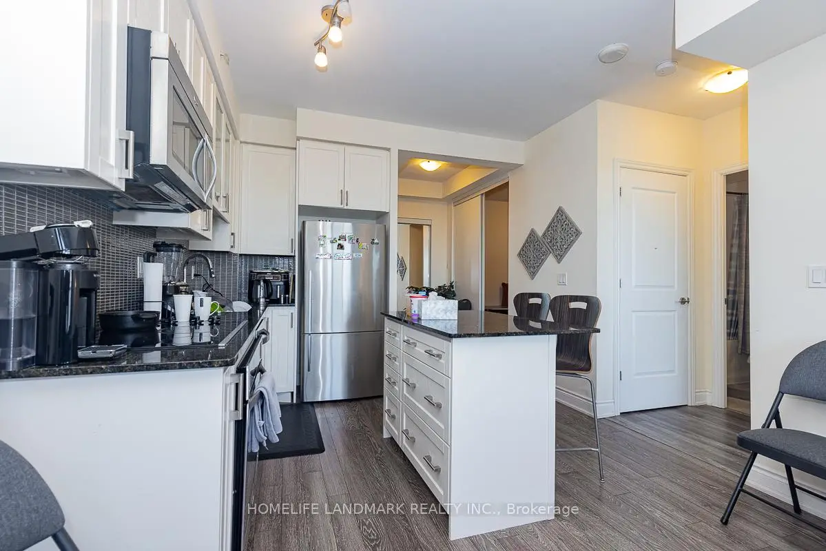Very Conveniently Located At Yonge And Hwy 7 & Hwy 407, This Unit Is Within Walking Distance Of Many Amenities Of Shopping Plazas, The Future Subway Station, Parks, Schools, Public Transits Etc., This Luxurious Unit Boasts A Very Functional Floor Plan And Picturesque View With A Large Balcony. One Parking Lot And One Locker Included. 9 Feet High Ceiling, Granite Countertop Kitchen W Centre Island, Large Den Can Be Used As Office Or Second Bed Room.