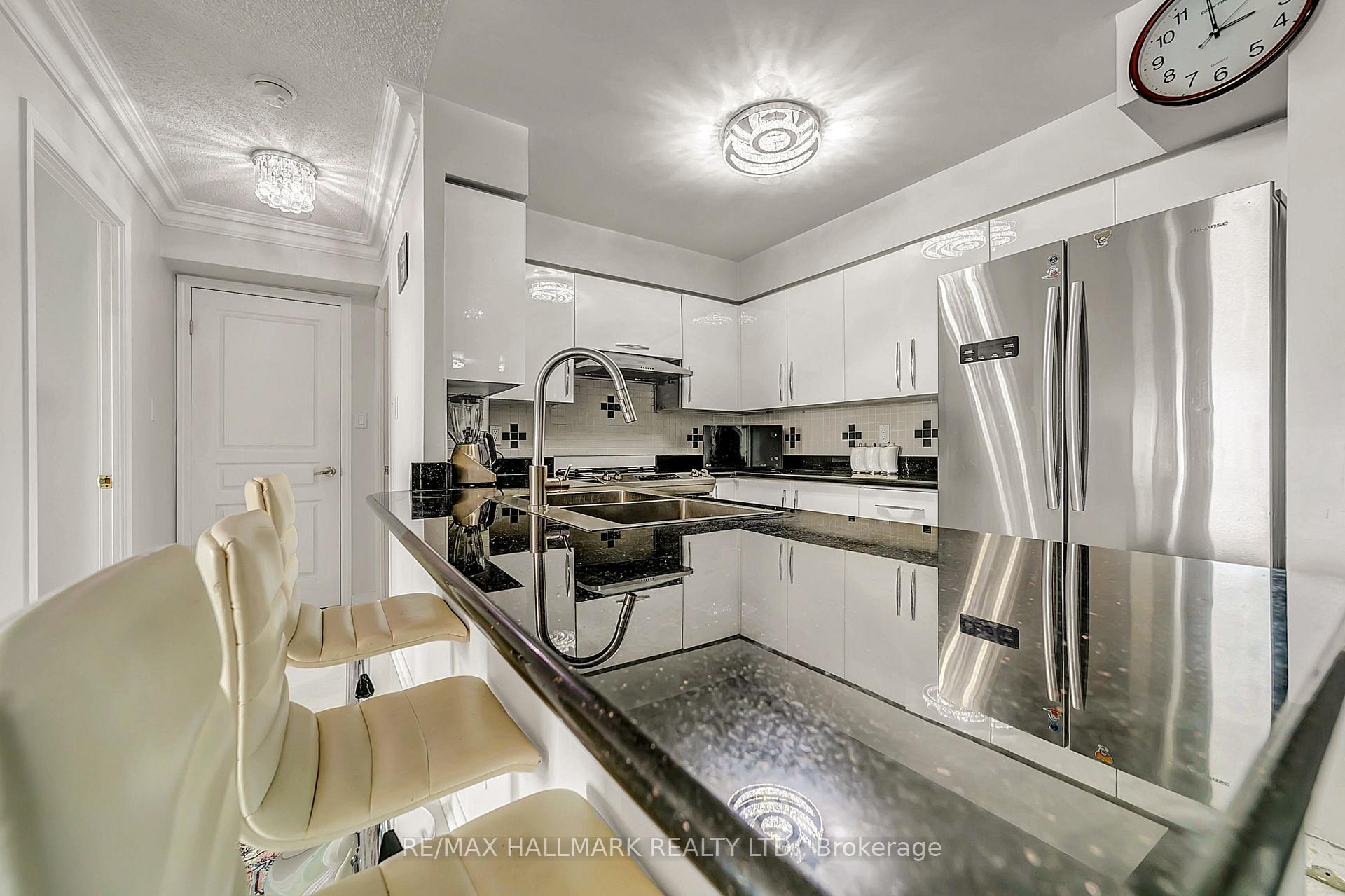LOCATION LOCATION LOCATION!! Exquisite 2 Bedroom & 2 Bathroom Condo Apartment With Over 900 Sqft & Balcony In The Heart Of Richmond Hill. Located in the coveted Empire Place gated complex, this bright and spacious suite offers the perfect blend of comfort, style, and convenience. Step inside to discover a thoughtfully designed layout featuring floor-to-ceiling windows, accent light fixtures, and elegant crown moulding throughout. The open-concept kitchen is equipped with modern cabinetry, stainless steel appliances (fridge, gas stove oven, dishwasher), a sleek backsplash, and a breakfast bar, ideal for casual meals or entertaining guests. The expansive living and dining area offers the perfect space to unwind or host, with a seamless walkout to your large private balcony overlooking quiet, picturesque views, a rare find in condo living. The primary bedroom is a relaxing retreat, complete with a walk-in closet and a stylish 3-piece ensuite featuring a glass shower. The second bedroom is equally bright and spacious, with its own walkout to the balcony and access to a 4-piece main bathroom with a shower/tub, perfect for guests or family. Enjoy the convenience of in-suite laundry, 1 underground parking spot, and 1 locker. This well-managed, secure building offers 24-hour gated security and resort-style amenities including an indoor pool, gym, sauna, tennis court, party room, and ample visitor parking. All utilities and cable TV are included in the maintenance fees. Unbeatable location! Just steps to Langstaff GO Station, Viva/YRT transit, Highways 407/404, Hillcrest Mall, restaurants, top-rated schools, and beautiful parks and trails. Whether you're a first-time buyer, downsizer, or investor, this move-in-ready gem offers it all. Dont miss this opportunity to live in one of Richmond Hills most desirable communities!
