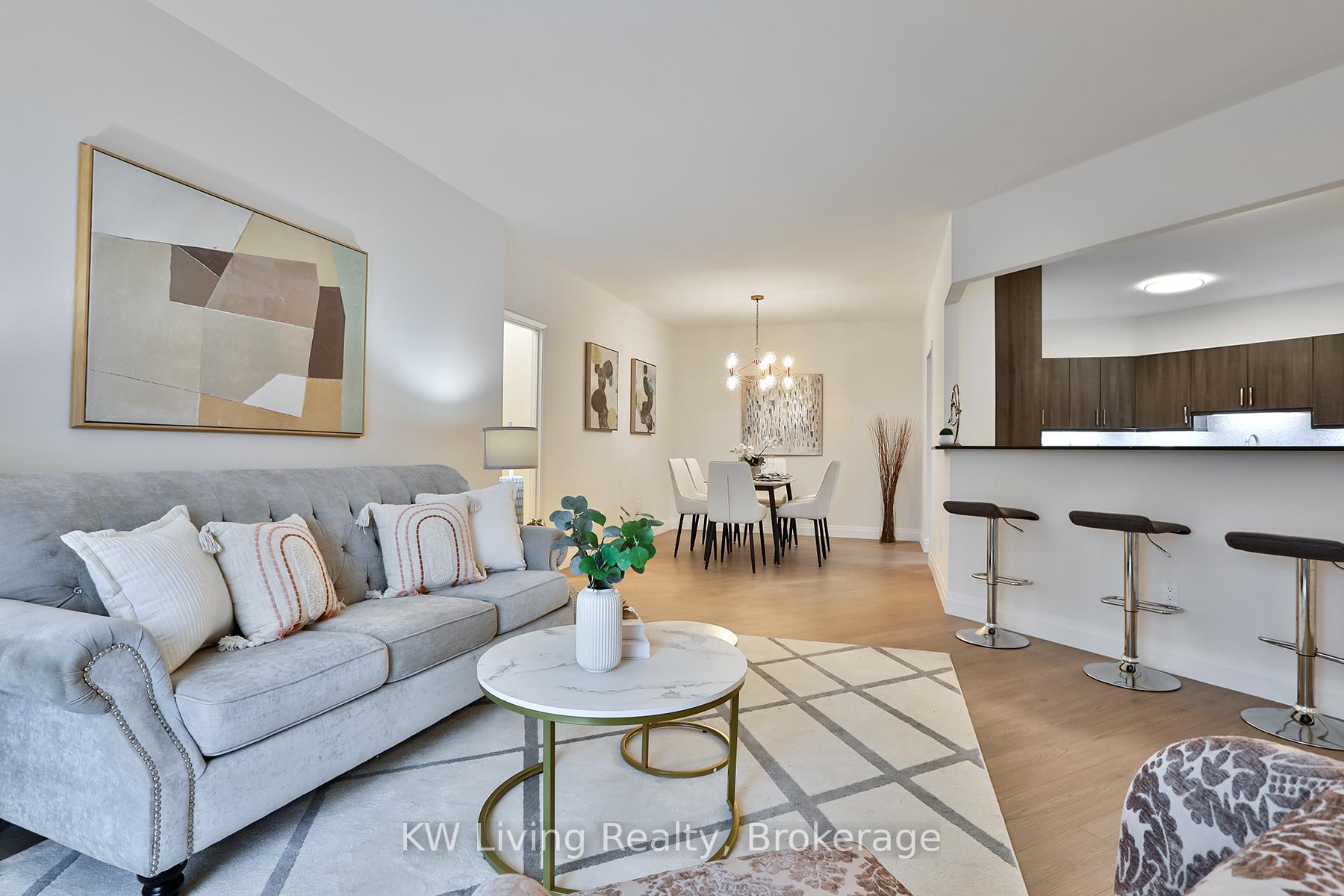 Welcome to this rare and exceptionally spacious 3-bedroom condo in the heart of prime Richmond Hill location. Offering 1,621 square feet of beautifully renovated living space, this unit has been fully updated from top to bottom with a clean, modern design and 9 ft flat ceilings that enhance the open, airy feel. Large patio floor-to-ceiling windows throughout the home flood the space with abundant natural light, making it bright and inviting all day long. The family-sized kitchen is perfect for everyday living and entertaining, complemented by two full stylish bathrooms for added comfort and convenience. One of the standout features is the private backyard and patio, a rare find in condo living that ideal for relaxing, outdoor dining or enjoying added green space. The unit also includes two underground parking spots and a huge locker with plenty of storage space. Located just steps from plazas filled with restaurants from cozy cafes and causal eateries to exceptional restaurants, close to medical building, and soon to be across from the future T and T supermarket. Everything you need is right at your doorstep. With quick access to Highway 7, Highway 404, VIVA, GO Transit, and the Richmond Hill Centre Terminal, this is an unbeatable location for commuters and families alike. A truly unique opportunity offering space, style, and convenience all in one.