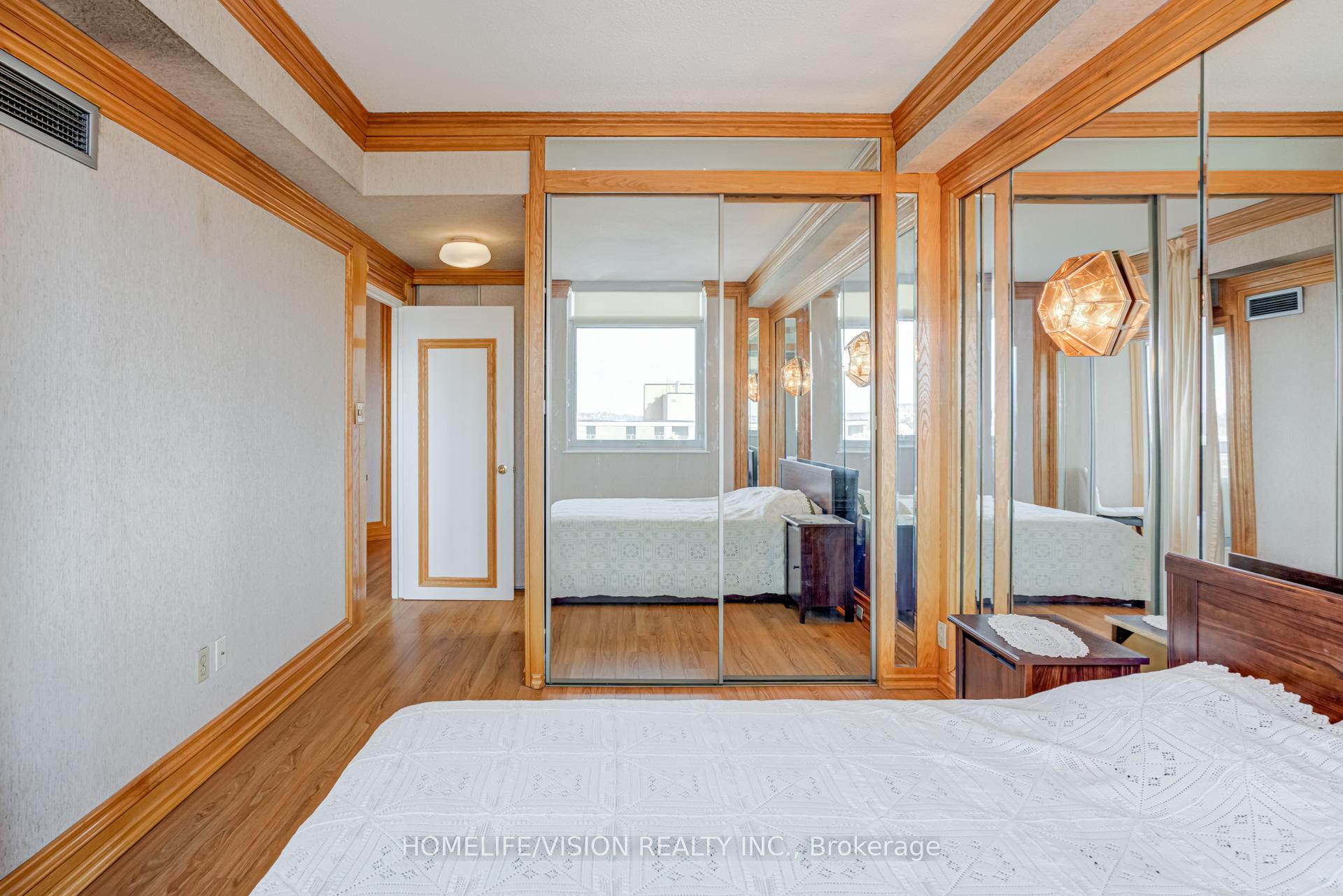 **Custom Oak Mouldings** Penthouse Suite W/9Ft Ceilings **2 Parking Spots Clse To Elevator**Mirr'd Walls Thrught**Mirr'd Clst Drs In Mstr Bdrm & Entrance**Walk To Go Train, Schools, Shops***Engineered Hardwood floors****Sliding shower doors****In suite storage****2 Parking Spots(u44 owned) p7 exclusive use assignable