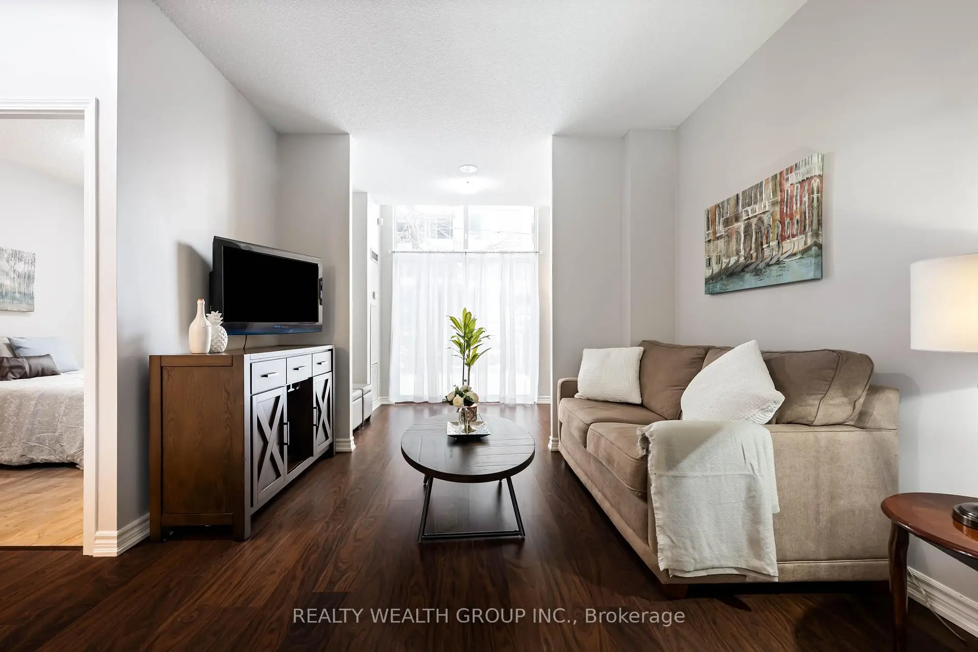 Welcome to this beautifully maintained 1+1 bedroom ground-floor condo in the heart of Central Richmond Hill, offering approximately 751 sq. ft. of stylish, carpet-free living space with soaring ceilings and a bright, open-concept layout. The spacious living and dining area overlooks a large private terrace-perfect for relaxing or entertaining. The modern kitchen features granite countertops, stainless steel appliances (fridge, stove, and built-in dishwasher), and a large pantry for ample storage. The generously sized primary bedroom boasts floor-to-ceiling windows and a large closet, The sunroom can be easily converted to a second bedroom while the contemporary bathroom includes a walk-in glass and ceramic shower. Enjoy the convenience of ensuite laundry and exceptional building amenities including 24-hour concierge, guest suites, party room, gym, games room, bike storage, and underground visitor parking. An ideal opportunity for first-time buyers, downsizers, or investors in a prime location close to transit, shopping, and all amenities.