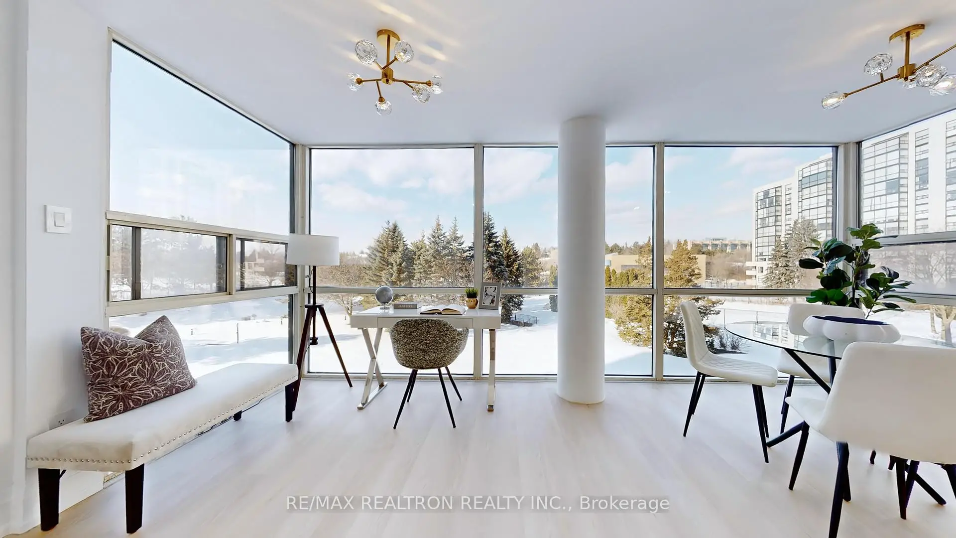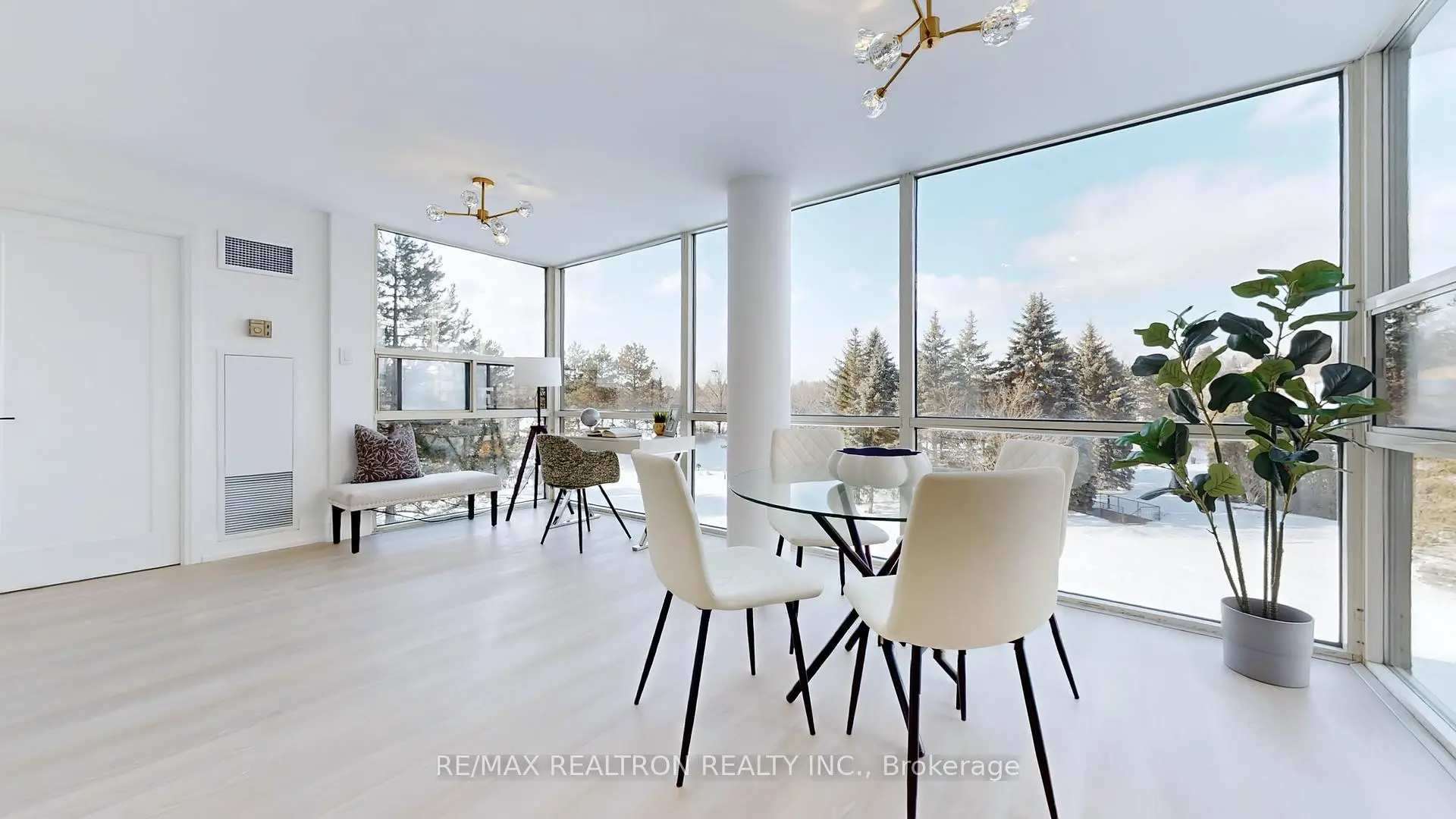 Welcome To Luxury Living At The Dynasty 2. Experience this beautifully renovated 1,374 sq ft corner suite offering breathtaking, unobstructed views from every room. Flooded with natural light through expansive floor-to-ceiling windows, this bright and spacious residence showcases a seamless open-concept layout connecting the living, dining, kitchen, and sun-filled solarium areas. The custom gourmet kitchen is a true showpiece, featuring quartz countertops and backsplash, premium stainless steel appliances, elegant cabinetry, and designer finishes throughout. Rich vinyl flooring, smooth ceilings, and abundant pot lights elevate the modern aesthetic. The versatile solarium provides the perfect space for a home office, reading lounge, or serene morning coffee retreat overlooking picturesque greenspace and park views. Both bedrooms are generously sized with large windows and custom closet organizers. The primary retreat offers a walk-in closet and a fully renovated spa-inspired ensuite. Elegant bathrooms boast custom vanities, contemporary fixtures, and glass-enclosed showers with luxurious finishes. No detail has been overlooked with quality craftsmanship, thoughtful storage solutions, and designer touches are evident throughout. Resort-Style Amenities Include: Outdoor cabana, sauna, fitness centre, billiards room, theatre room, party room, and ample visitor parking - all within a safe, gated community. Prime Harding Location: Surrounded by multi-million-dollar homes and just minutes to Hillcrest Mall, top-ranking schools, parks, transit, and major highways. Whether downsizing, investing, or purchasing your first home, this turnkey residence offers refined, low-maintenance living in one of Richmond Hill's most desirable neighbourhoods. Just Move In And Enjoy.