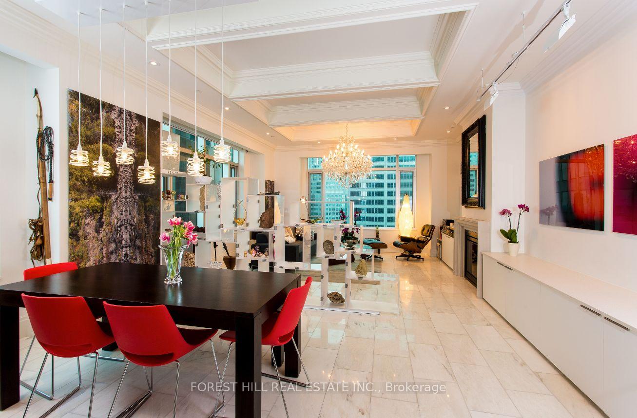 Stunning Executive 2 Beds + 2 Baths Condo Awaits You At The St Regis Residences! This Luxurious Condo Was Meticulously Designed & Featured in Canadian Interiors Magazine with a One of a Kind Custom Floor Plan & Elevator Which Opens Directly Into Your Private Vestibule!. Boasting 10' High Cieling's, Modern Finishes, Great Attention to Detail, Quality And Craftmanship at its Finest! Located In the Heart Of The Financial District, PATH, Restaurants, Shopping and Much More. Some Key Features Include: Wireless Black Out Shades w Remote Control, Large Walk-In Closet, Re-designed Kitchen, Hardwood & Marble Flooring, Operating Windows That Overlook The City and CN Tower, WorkStation/Bar, Meile Appliances, Built in Cabinets & Walk-In Closet. This Condo Is One The Only "04" Unit With This Layout in The Building!, Must See!!