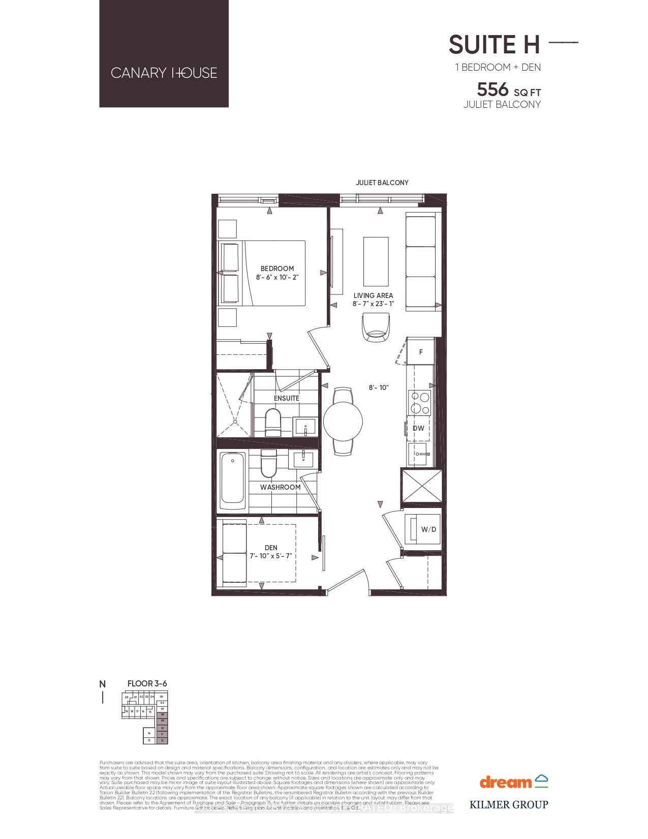 Canary House is located in the heart of Toronto's Downtown East, Canary District. The building is designed with natural elements, sophisticated finishes and hotel inspired amenities. This brand new 1 Bed + Den 2 Bath Unit is 556 SF of open concept living with 9'6" ceilings and a east facing Juliette balcony. Located just minutes from the historic Distillery District, the 18-acre Corktown Common Park with 1,800 km of connected trails, the Cooper Koo Family YMCA, Lake Ontario, and Cherry Beach. TTC is at your doorstep allowing quick access to the city core and major highway access via the DVP & Gardiner Expressway will take you any where else you might need to go.