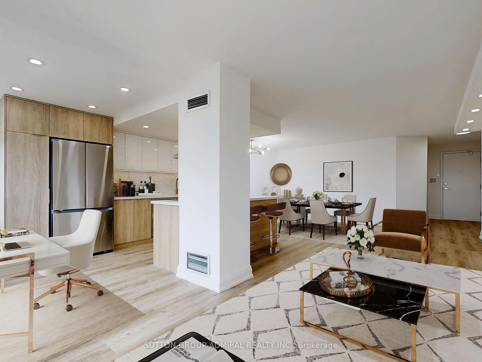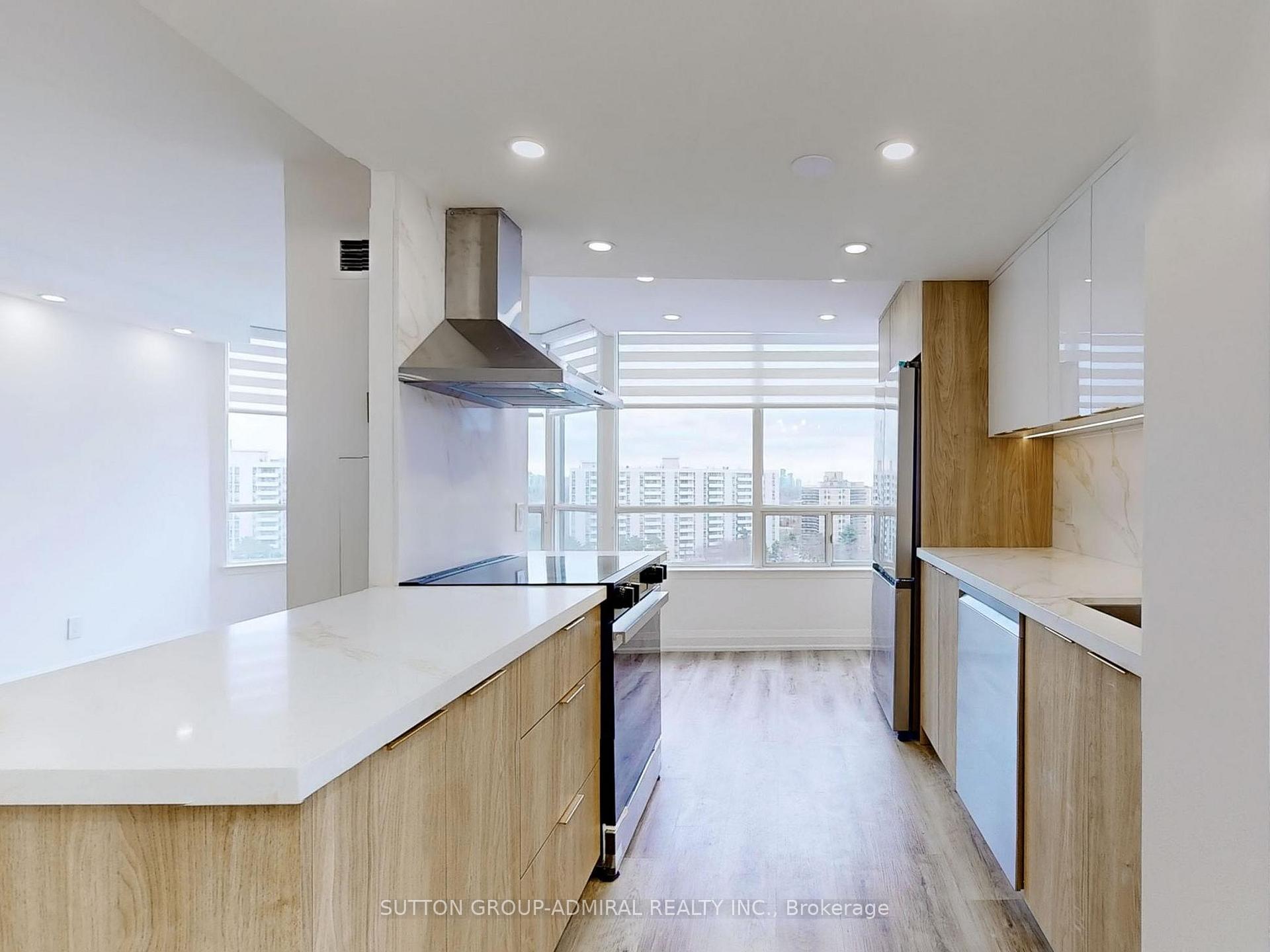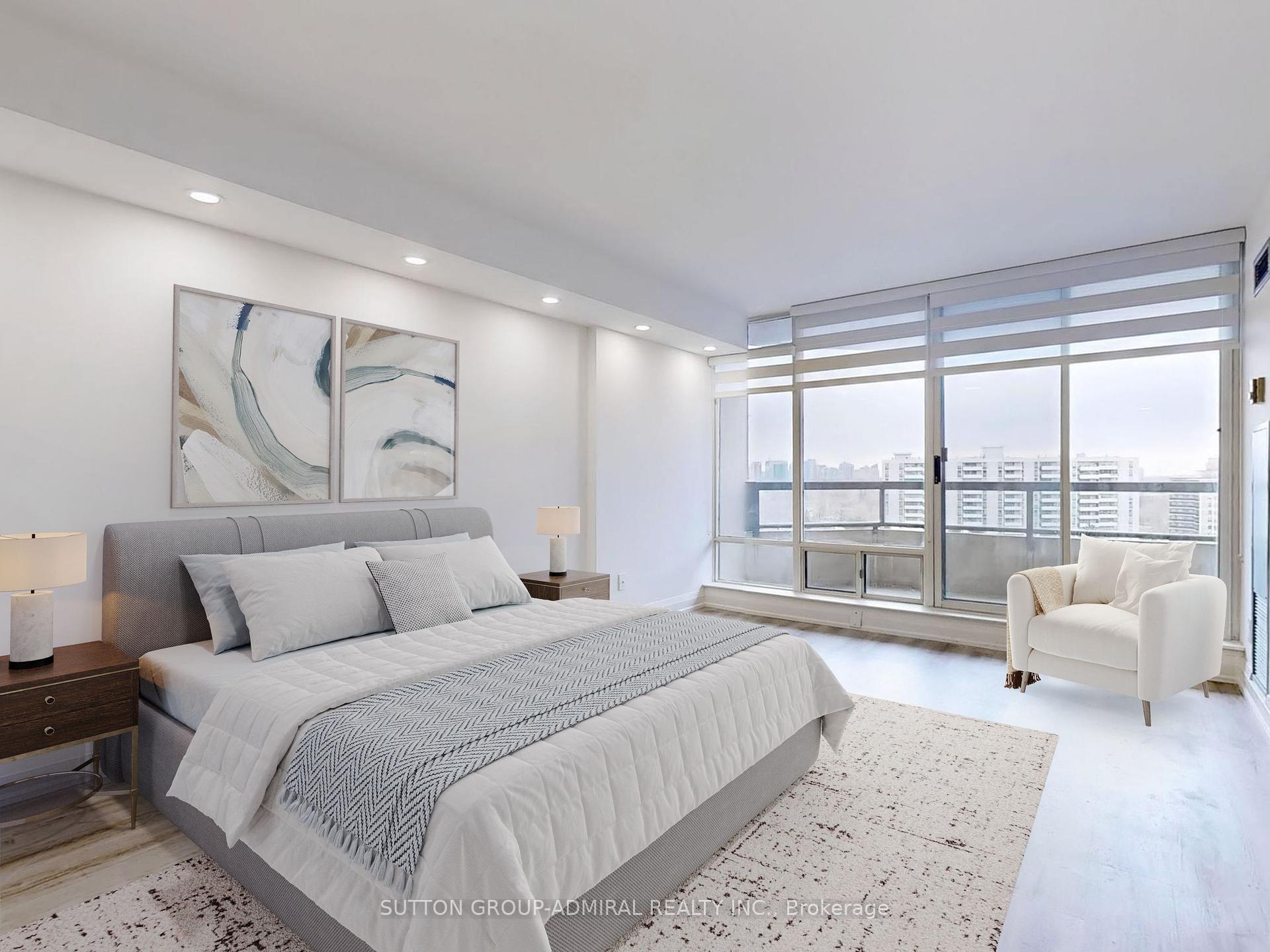 A MUST-SEE BEAUTY! Striking SW facing, luminous corner unit in the desirable Primerose I, Spectacular fully renovated, 2+1 Bdrm,2 Baths with commodious primary rooms. Vinyl floors, Open concept Gourmet Kitchen w/Calacatta Quartz counter top and backslash. Large living-dining room, big windows w/ zebra blinds, S/S Appliances (Stove, microwave, fridge). Open Balcony, Smooth, illuminated Ceilings & pot lights. Master Bedroom comes w/Large Custom Closet. Building Amenities Include Outdoor Pool, Tennis Crt, Party Room, Gym, Library/Billiard Room, Ping Pong Room, Indoor Whirlpool/Sauna. Round The Clock Security/Gate House, Steps To Shopping, Transit And More.