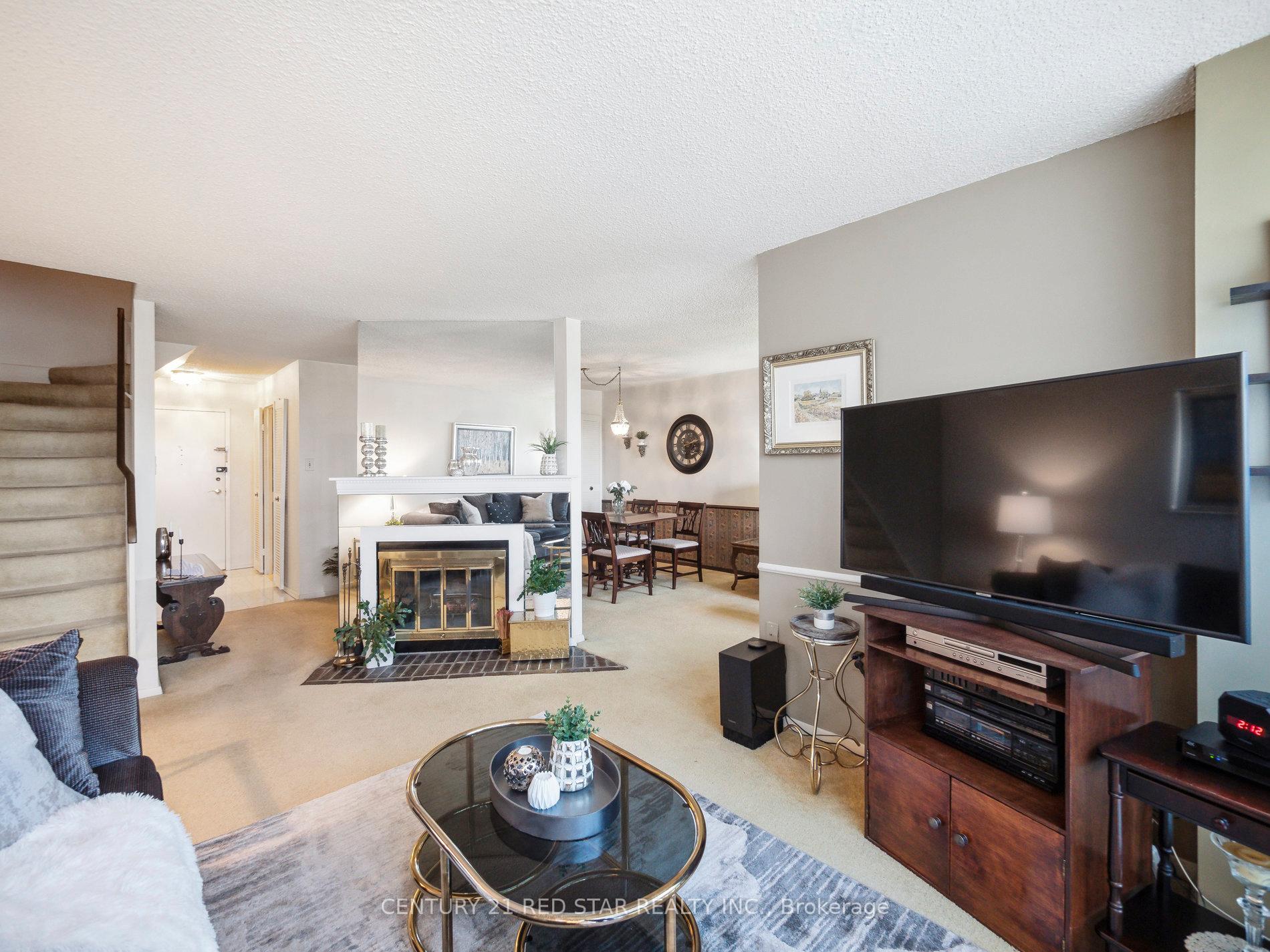 LOCATION! LOCATION! LOCATION! This large 2 bedroom, 2 bathroom, 2 story condo with over 1200 sq.ft., is located in the highly sought after Hillcrest Village and situated in one of the best school zones (Arbor Glen PS, Highland Middle School & A.Y. Jackson SS). Convenience here is unparalleled with the TTC right at your doorstep as well as fast and easy access to HWY's 404/401/407/DVP for your work commute or quick access to downtown Toronto. Appreciate the short walk to the nearby shopping mall with an abundance of popular amenities to meet all your needs. After a long day, enjoy tranquil evenings while sitting on your large private newly renovated balcony with glass panels, overlooking the residential parkette or bask in the unobstructed view of beautiful morning sunrises. On cooler nights, slip into your living room to enjoy a cozy night in front of your rare wood burning fireplace. This condo also features convenient upper floor laundry and 2 large bedrooms with the primary having its own ensuite and walk in closet. There is an abundance of extra storage space throughout the condo that can be utilized. Maintenance fees are ALL INCLUSIVE with utilities (heat, hydro, CAC, water, building insurance) which is rare. Other features also included by maintenance fees are underground parking, indoor pool for year-round enjoyment and a well-equipped exercise room. The condo is ready for you to move in to start enjoying your new living.