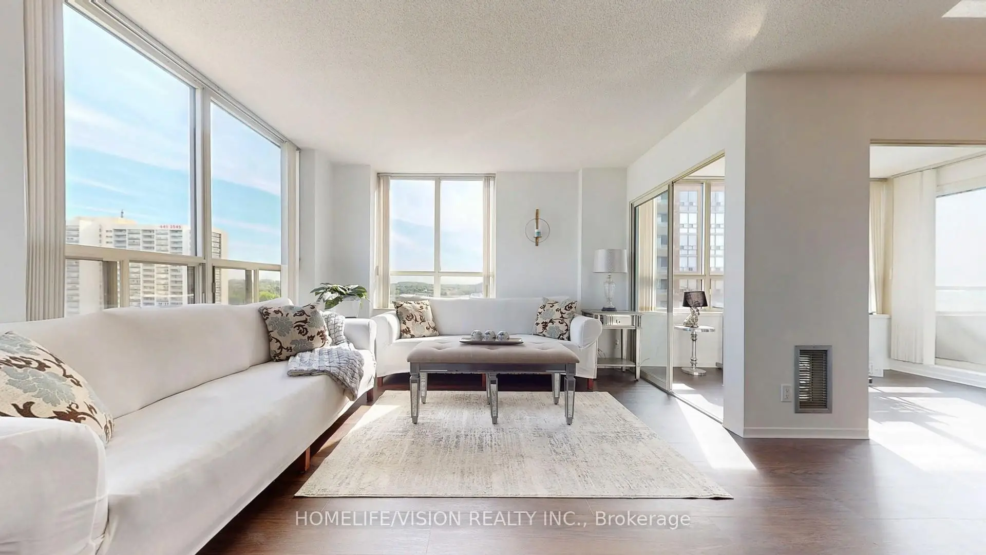 Welcome to suite #1706, located in Palisades. This is a large, beautifully renovated corner suite, with one of the best layouts available. It offers tons of light, amazing views, 24 hr. gatehouse security, and easy access to the DVP, Downtown, and the 401. This suite exemplifies pride of ownership. 2+1 bedrooms, 2 washrooms, open balcony, and a large eat in kitchen. New flooring, Paint, Tiles, and a must see magazine worthy washroom and laundry. Come see for yourself, and be amazed. electric fireplace/mantle included. Pets prohibited