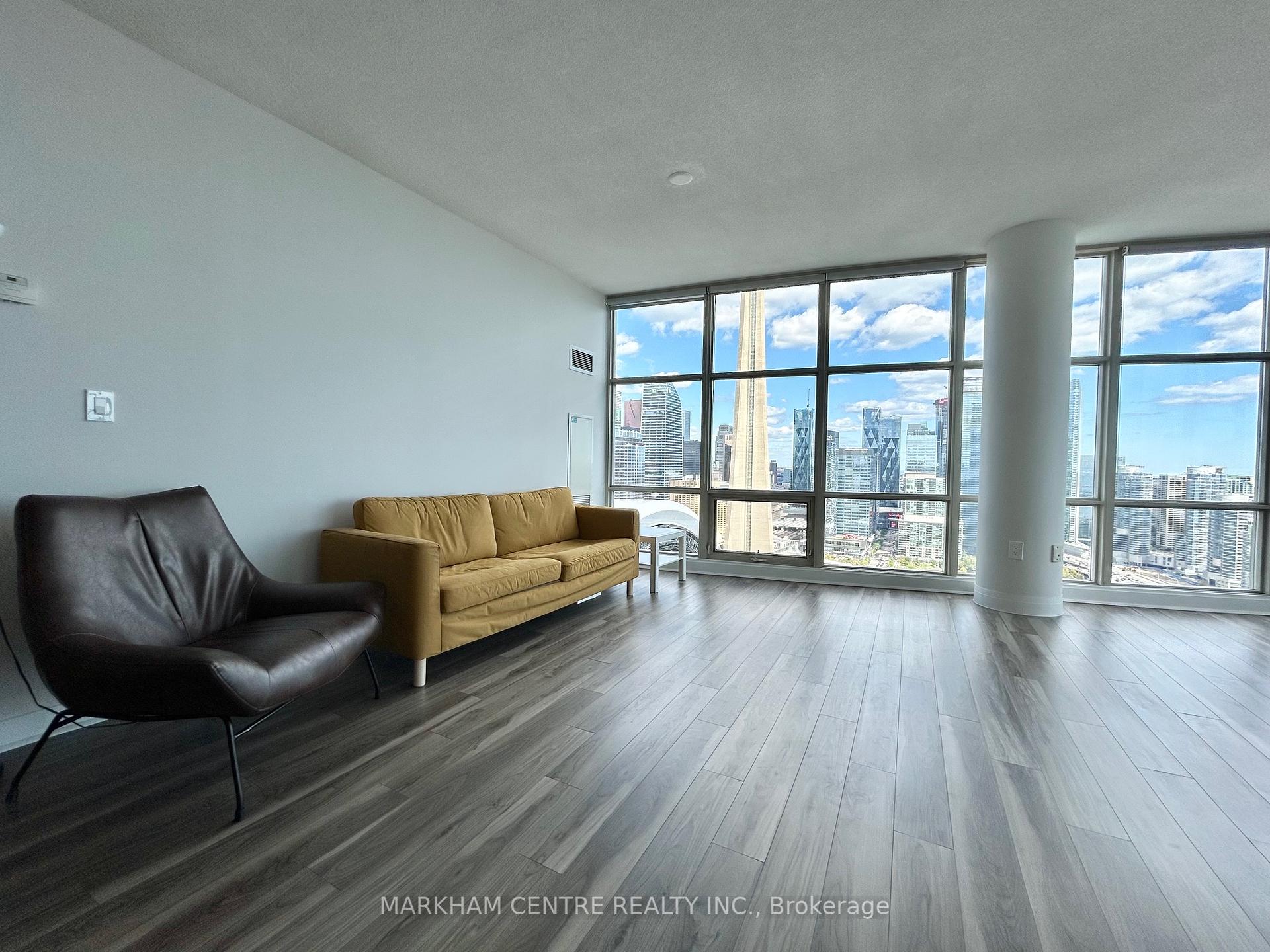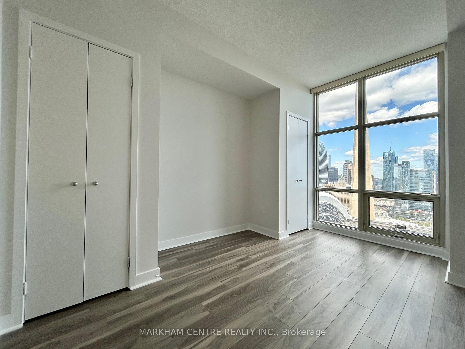 Welcome to Suite 4307 at 10 Navy Wharf Court a rare, fully renovated High Floor corner unit offering 1,338 sq ft of luxurious living space plus a balcony with breathtaking, unobstructed postcard views of the CN Tower, Rogers Centre, Lake Ontario, and the city skyline. This bright, southeast-facing suite features 2 spacious bedrooms, each with a 4-piece ensuite, and a large, enclosed library with double French doors and proper ventilation, perfect as a third bedroom or office. Soaring 9-foot ceilings, floor-to-ceiling windows, and premium laminate flooring throughout create a warm and elegant ambiance, while the newly updated kitchen boasts quartz countertops, brand new stainless steel appliances, a gas stove, and extended counter space. The suite includes two side-by-side parking spots conveniently located near the elevators, and an owned locker. Maintenance fees cover all utilities including electricity, water, gas offering hassle-free living. Located in the heart of downtown at CityPlace, residents enjoy unparalleled access to the PATH, waterfront, Financial District, transit, shops, dining, and entertainment, and benefit from a Montessori school connected to the building. As part of the exclusive 30,000 sq ft SuperClub, you will enjoy world-class amenities such as a fitness centre, indoor pool, basketball, squash and badminton courts, bowling alley, theatre rooms, party lounges, BBQ terrace, and more. This is luxury urban living at its finest a one-of-a-kind opportunity in one of Torontos most desirable communities.