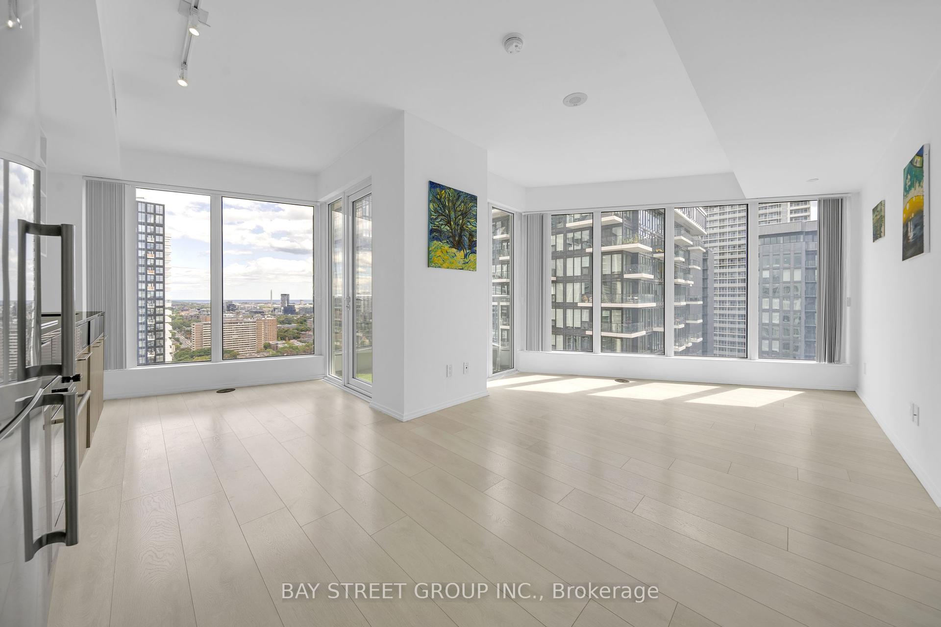 Downtown Spacious 1 Bedroom High Floor Corner Unit W/Stunning views-One Level Below The PH, Overlooks Both The Lake & The City. Floor-to-Ceiling Large Windows With W/O Balcony, Modern Kitchen, Open Concept Lay Out, Laminate Flooring Through Out, Bedroom W/Large Window. Walk Distance To Yonge Subways, Eaton Centre, Yonge-Dundas Square, Toronto Metropolitan University, George Brown, St. Michael Hospital, City Hall, Bus, Restaurants. New Nofrills Supermarket Just Cross the Street. Well Maintained Building with Gym Room, Party Room, Rooftop Terrace and BBQ area Etc. 24HrConcierge. Maintenance Fee Includes Water, Heating & Cooling. Owned One Parking Spot.