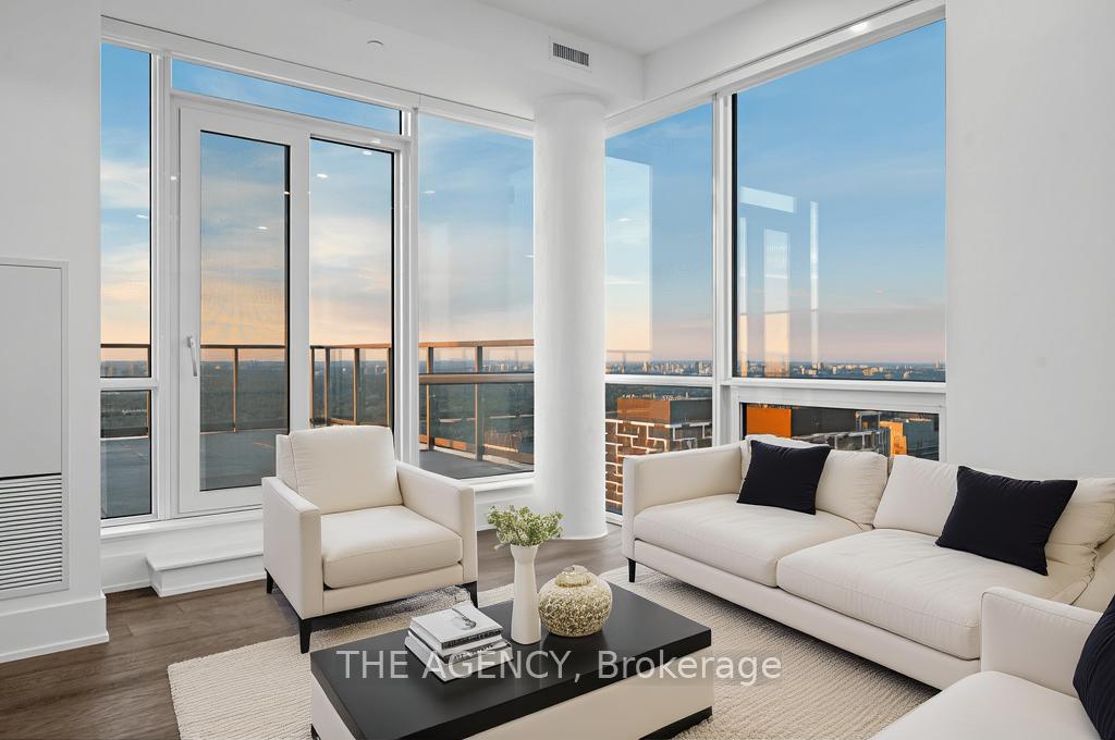 High above Midtown, on the 45th floor, theres a home that feels like it was designed to capture the very best parts of city living. A corner penthouse, wrapped in light and endless views, offering 1,529 sq. ft. of total living space including approximently 500 sq. ft. of private balconies and terraces in the sky. The interiors have been thoughtfully customized with hundreds of thousands in upgrades, from heated floors in primary bedrooms, to top of the line floorings, making this residence truly one of a kind, complete with Miele built-in appliances and an extended island that invites both casual breakfasts and lively gatherings. Every detail feels carefully considered. The sense of space continues throughout, with 10-foot ceilings and floor-to-ceiling windows framing the city from every angle. The layout includes two bedrooms, each offering privacy and comfort, while the primary suite is enhanced by a 5-piece ensuitea spa-like retreat to begin and end each day. And then there are the outdoor spacestwo private balconies suspended in the sky. Here, mornings feel brighter with coffee above the clouds, and evenings are unforgettable as the city lights flicker to life all around you. This penthouse isnt just about square footage or finishesits about the experience of living well, in a home that feels elevated, refined, and unmistakably yours.
