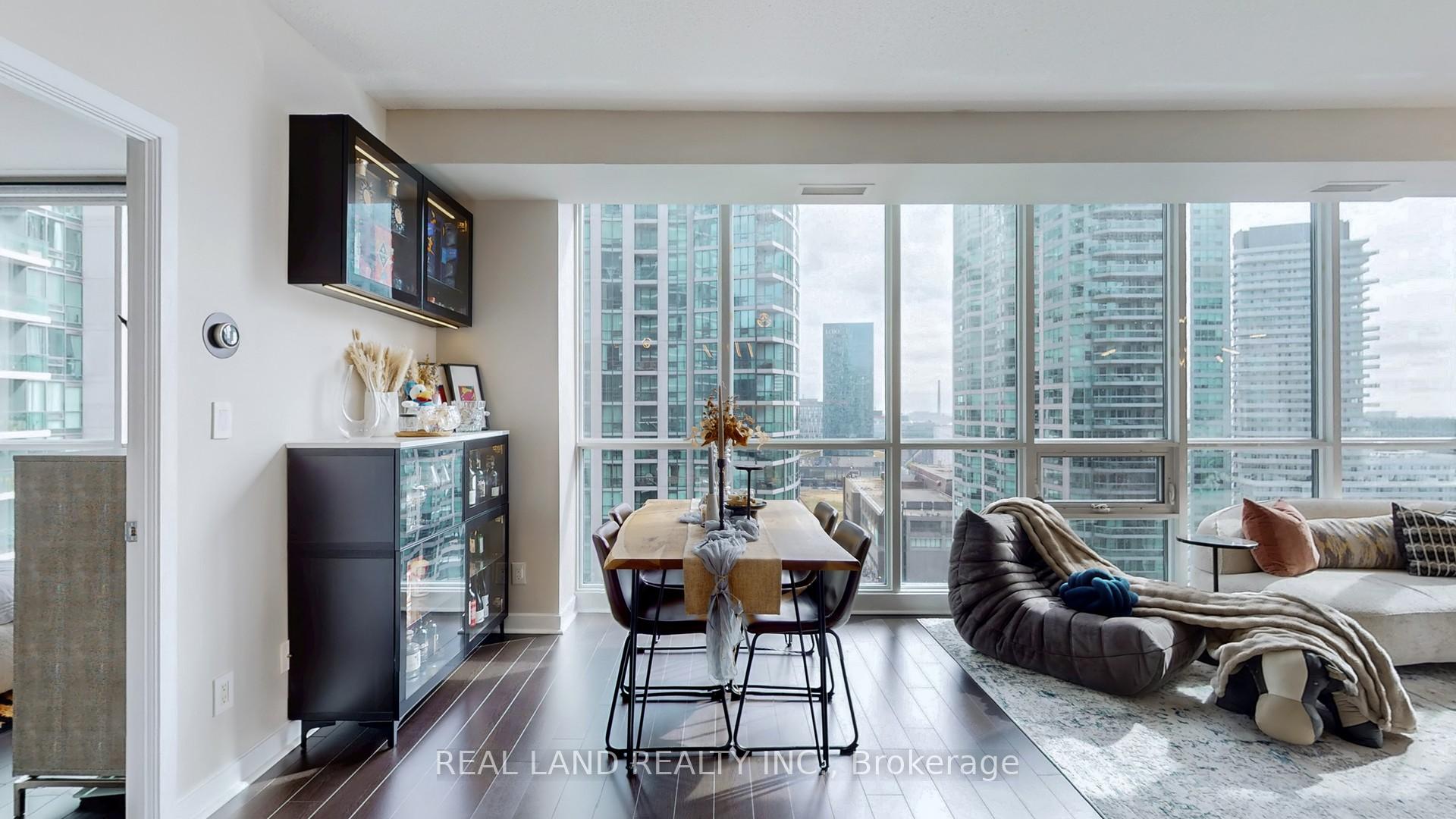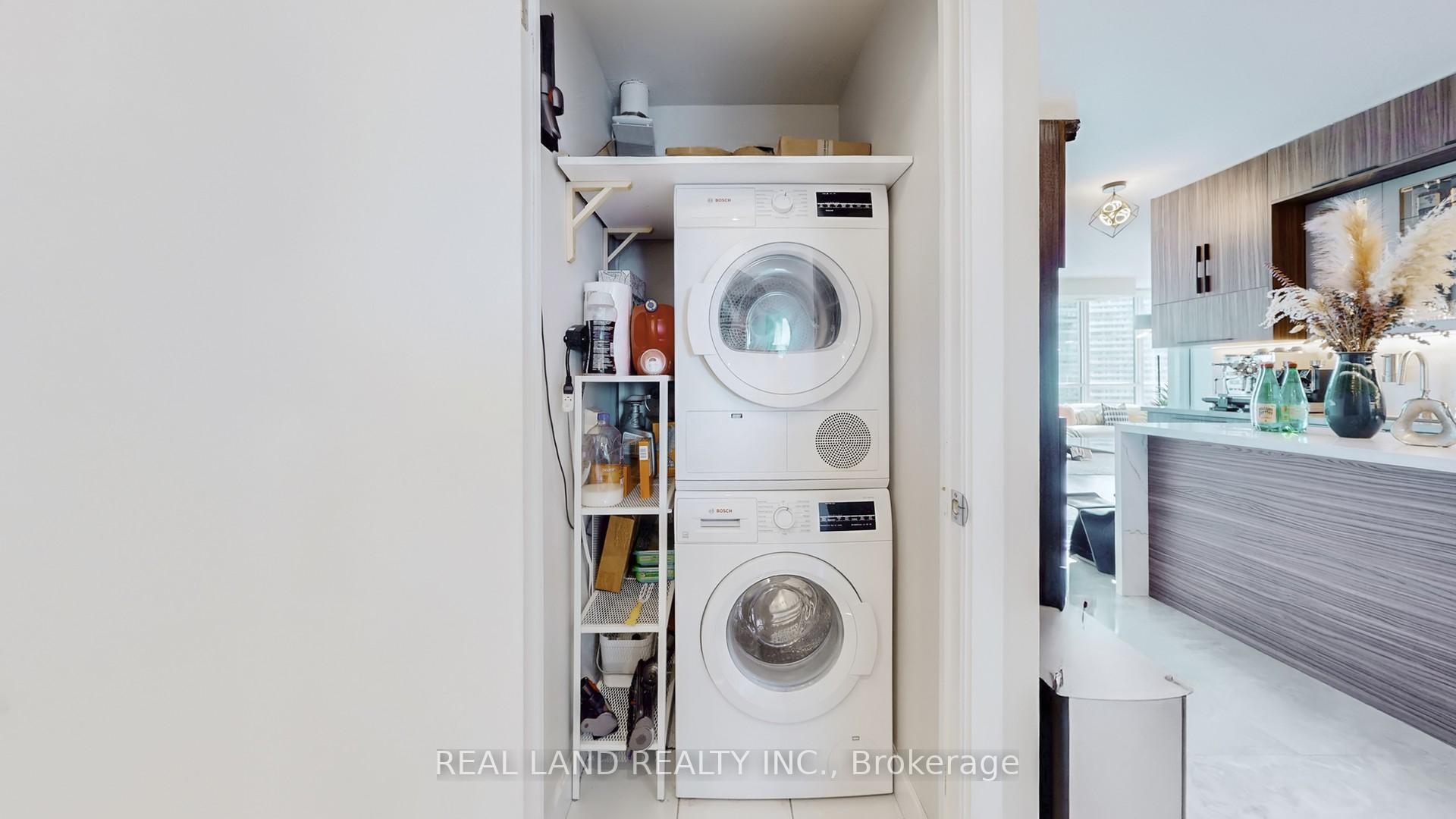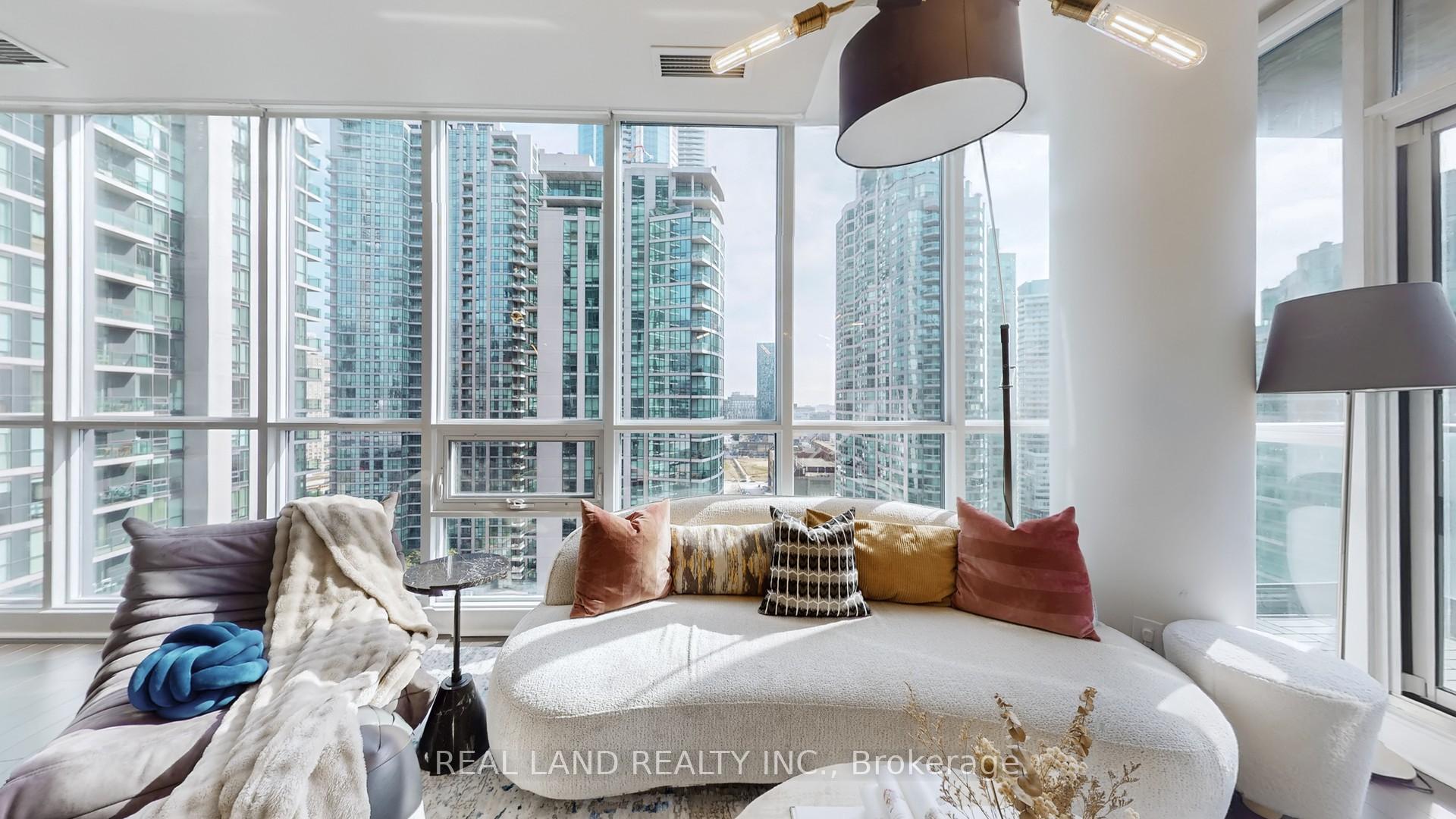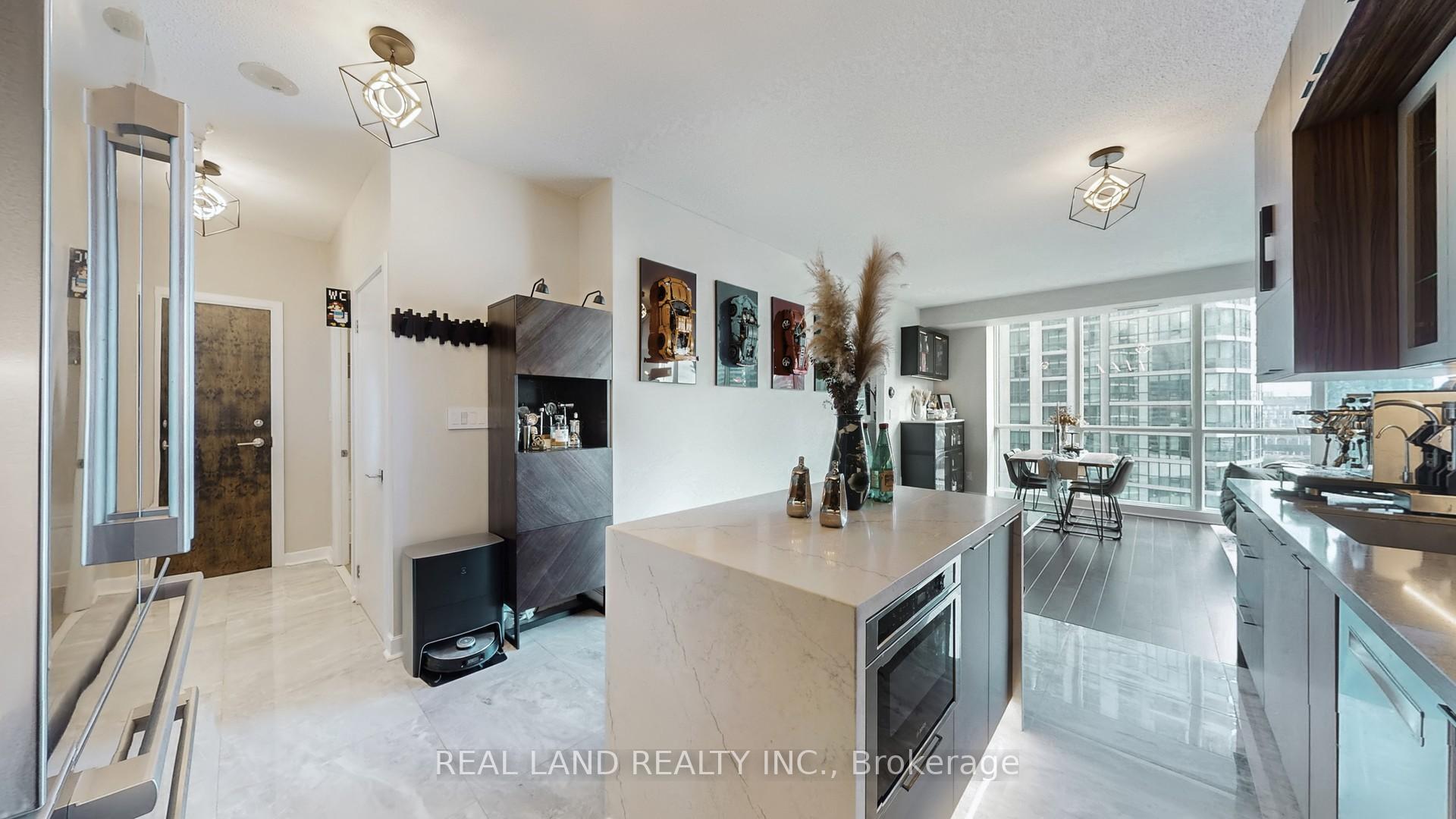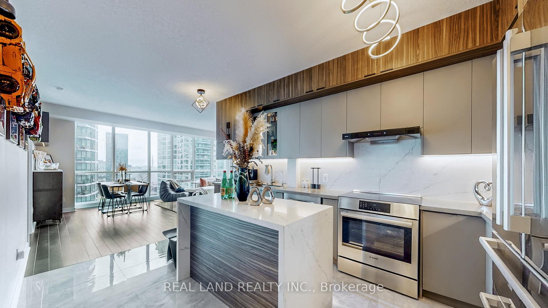 Stylish recently renovated southeast 2+ Den corner unit with stunning Lake and City views with 2 Car Parking and 2 super big Separate Locker Rooms. 9Ft Ceiling. The Huge Floor To Ceiling Windows Through Out The Unit, Very Bright & Functional Layout. South east lake view living room can enjoy this water view everywhere, 105 Sf lake view large balcony give you the ultimate outdoor relaxation area. Modern kitchen W big island, high end Bosch Stainless Steel Appl, with a dedicated space for your culinary arts. Two split bedrooms layout provides excellent privacy. Smart Lighting System. Living Room, Master Bedroom and 2nd Bedroom Electric curtains installed in 2022. One Tandem Parking (can park 2 vehicles). Two super big Separate Locker Rooms(14'X6' and 9'X7') behind the parking spot, you can put everything in the Lock Rooms. Parking and Lockers are closed to the elevator. Steps To Union Station, Subway, Harbour Front, Port To Central Island, Parks & Shopping, 5-Star Amenities: A huge GYM, A 70'Lap Large Indoor Pool, Tennis Court, Squash/Raquet Ball, guest suites & More, too many things to list.