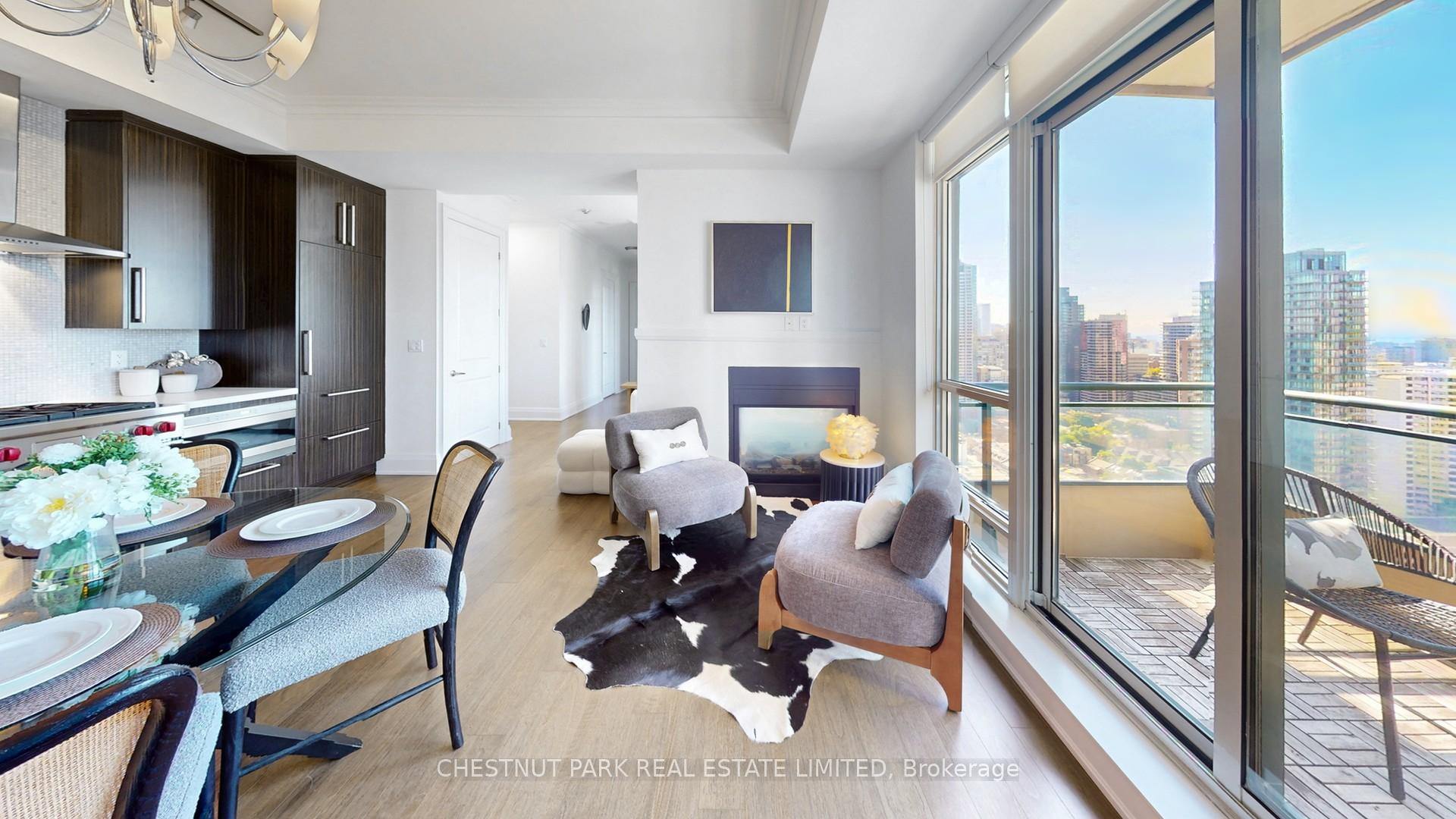 Unveiling an exceptional two-bedroom plus den sub-penthouse suite, where luxury and comfort seamlessly intertwine. Boasting soaring 10-foot ceilings adorned with elegant crown moldings, this residence exudes sophistication. The cozy gas fireplace invites you to unwind and relax, while the state-of-the-art Downsview kitchen, equipped with premium appliances, inspires culinary adventures. Every bedroom leads out to one of the two private terraces, offering panoramic unobstructed views and an abundance of natural light. Gleaming hardwood floors flow throughout, creating a cohesive and inviting ambiance. This exclusive enclave features only three suites per floor, ensuring privacy and tranquility. Its prime location offers effortless access to upscale shops, convenient public transportation, and the city's finest dining establishments, catering to your every need and desire.