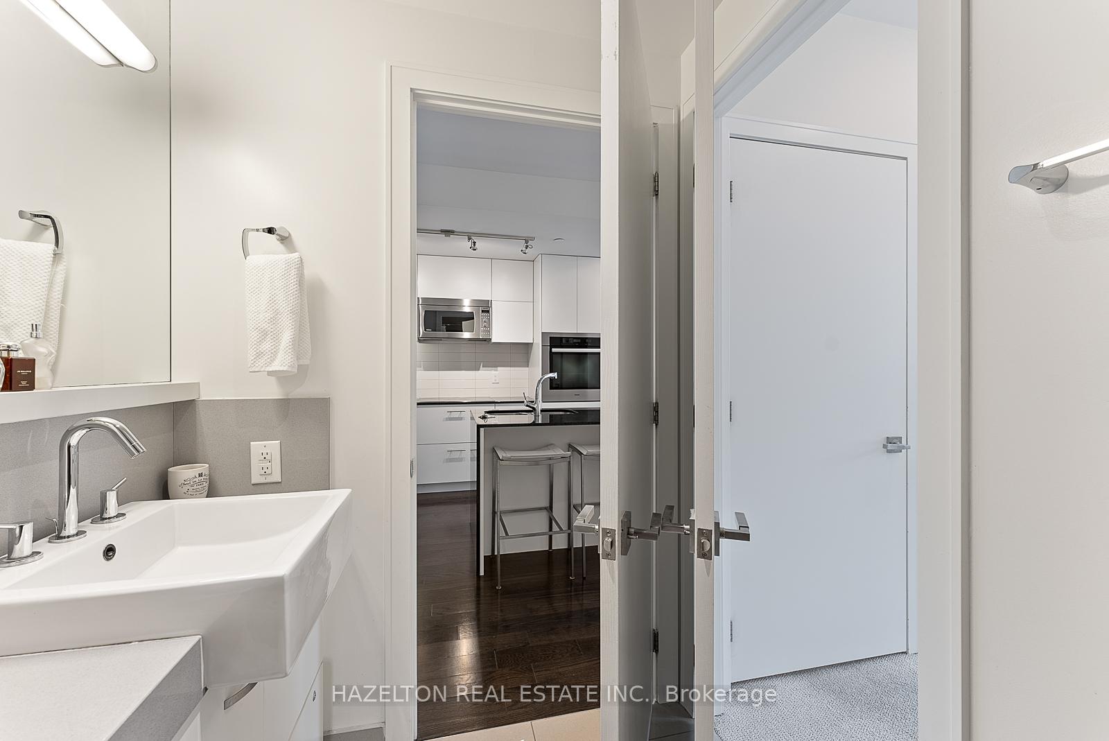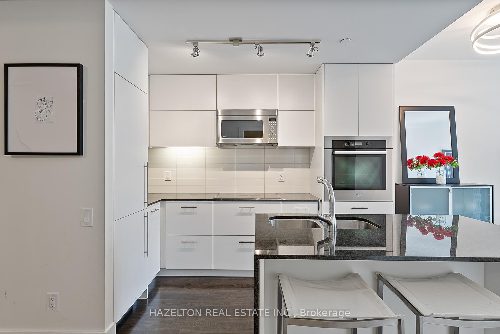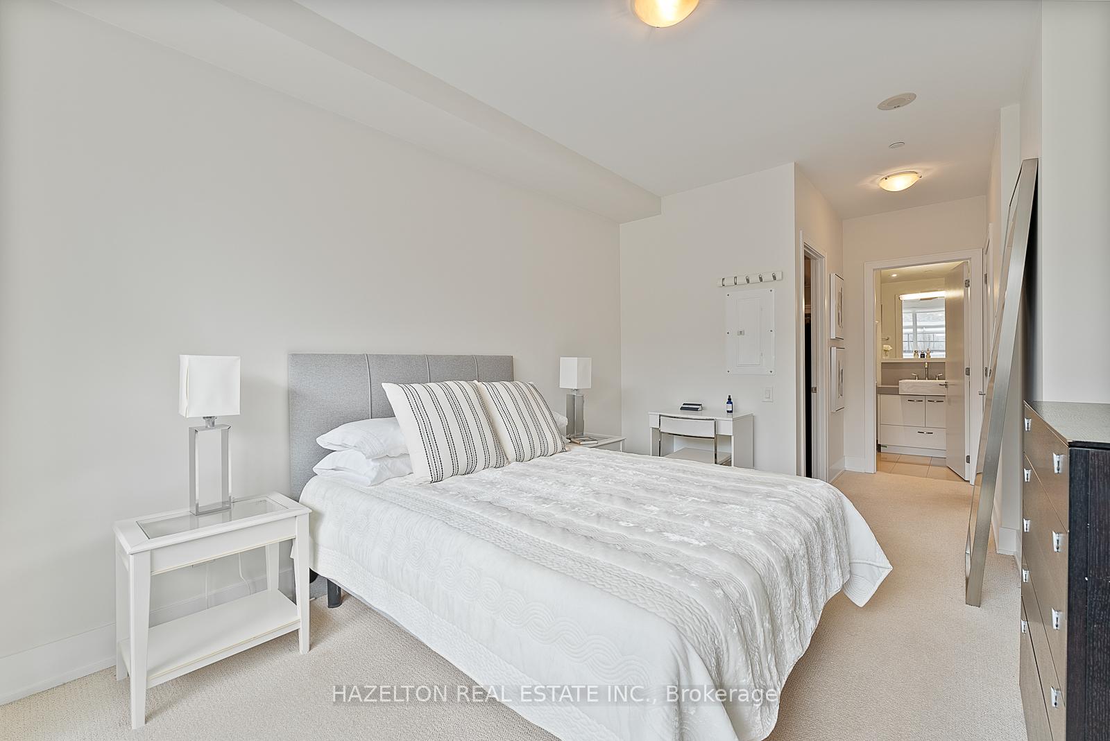 Fabulous Pears, at Ave and Dav. Perfectly sized (838 sq ft) with tall floor to ceiling south facing windows. Generously sized open concept living/dining provides lots of room for entertaining and a walk out to the long private oversized terrace. Light and bright. Modern open concept kitchen with integrated appliances and a centre island with stone countertops. Separate den, could be the ideal home office or media room. Wonderfully sized bedroom with walk in closet and spa like 4 piece bath. Hardwood floors throughout. Immaculately kept, move in ready. One of the best buildings in the area with outstanding 24 hour concierge service. See floor plan attached.