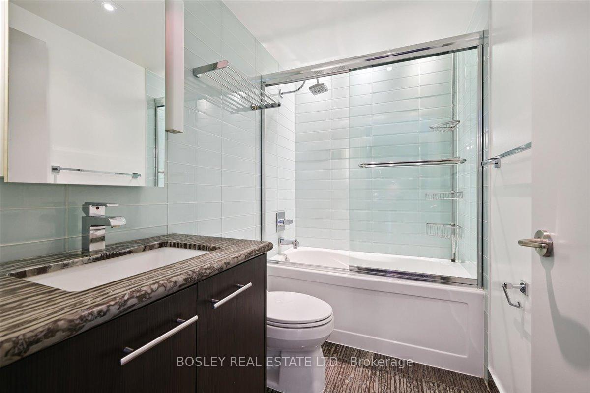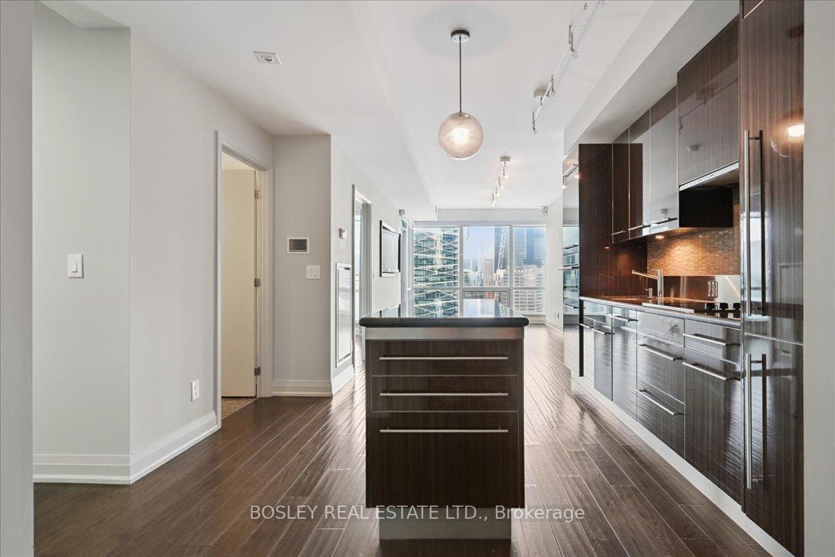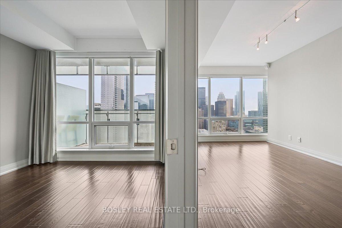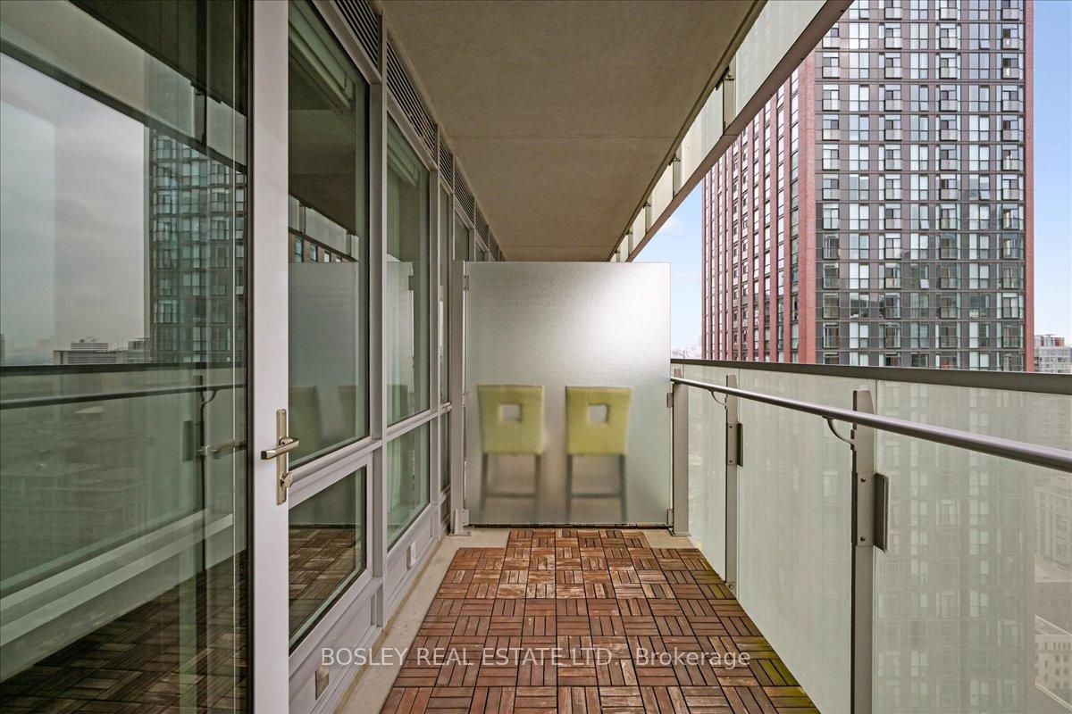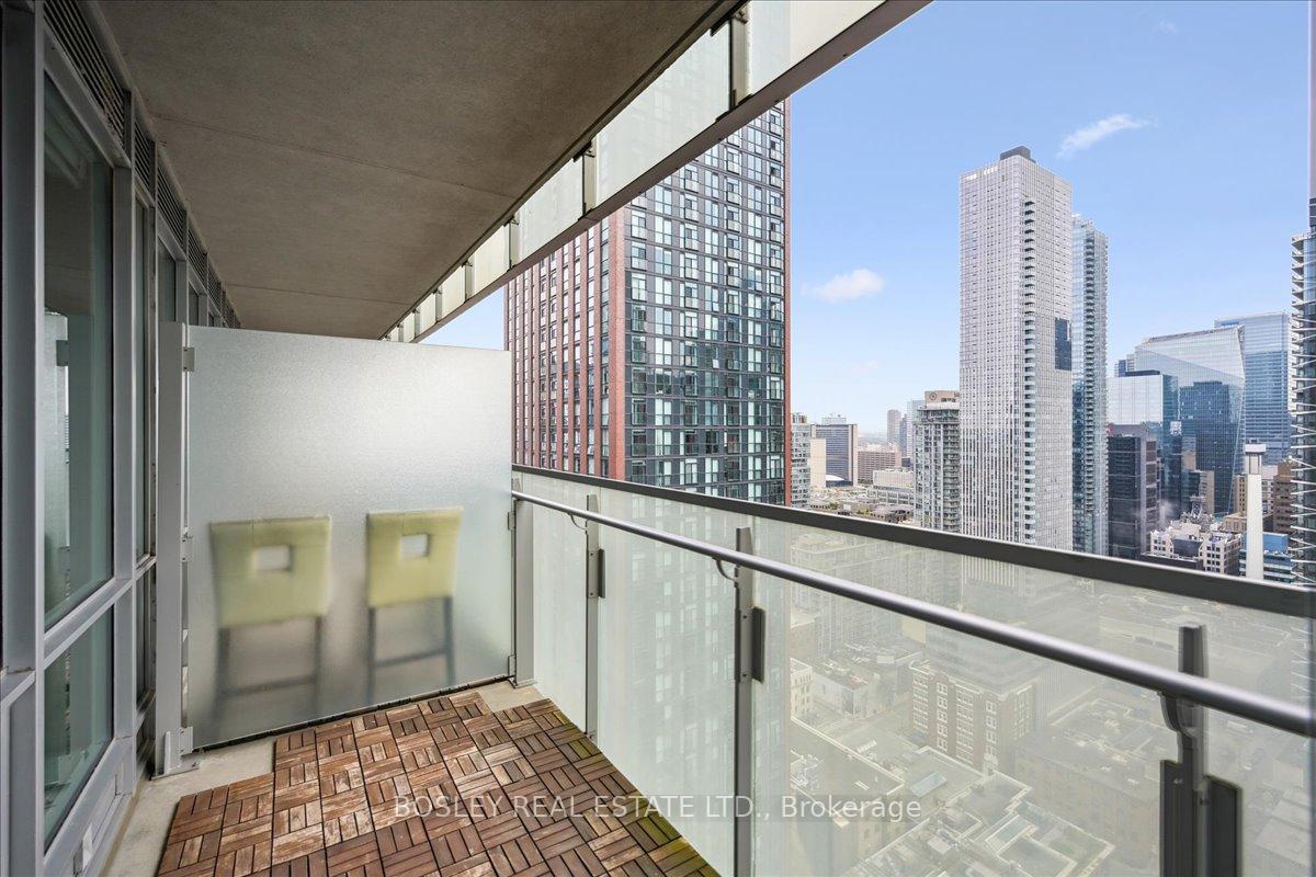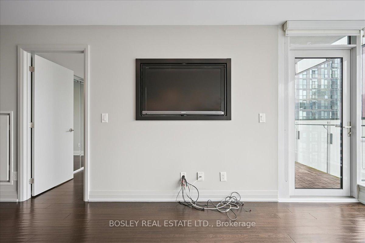 Festival Tower at TIFF Lightbox is a luxury condominium offering front row access to Toronto's Entertainment District. Exceptionally well maintained, this Pacino model offers 683 square feet with a smart 1 bedroom plus den layout, plus a spacious balcony with clear city views to the east and CN Tower and lake views to the south. Inside, you'll find hardwood floors throughout, a modern kitchen fitted with a full suite of Miele appliances, and ample storage. The built-in revolving TV and integrated sound system let you enjoy shows and music in both the living room and bedroom. Residents at Festival Tower have access to premium amenities, including a 55-seat private cinema, indoor pool, spa, and sauna, fully equipped fitness centre, yoga and pilates studio, rooftop sundeck, multiple lounges, 24hr concierge, and on-demand services including housekeeping, dog walking, dry cleaning and more. Living here also means being steps from TIFF premieres, theatres, restaurants, and nightlife, plus just minutes to the Financial District, CN Tower, Rogers Centre, and Scotiabank Arena. With the TTC streetcar right at your door and St. Andrew subway station nearby, getting around the city is seamless. This residence comes with both parking and a locker, rounding out the full package.