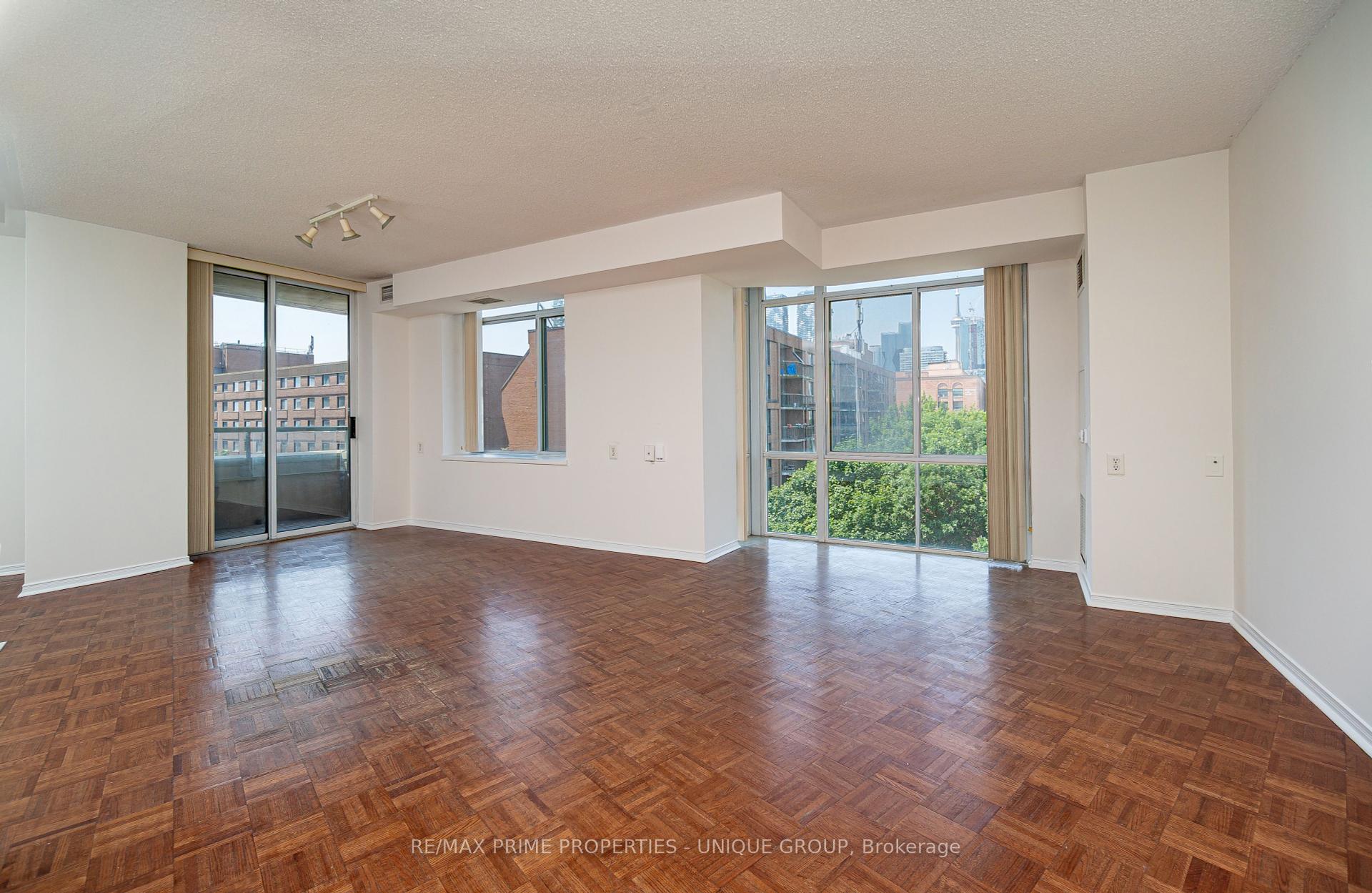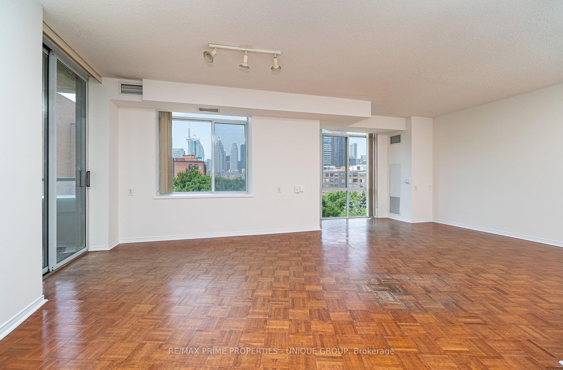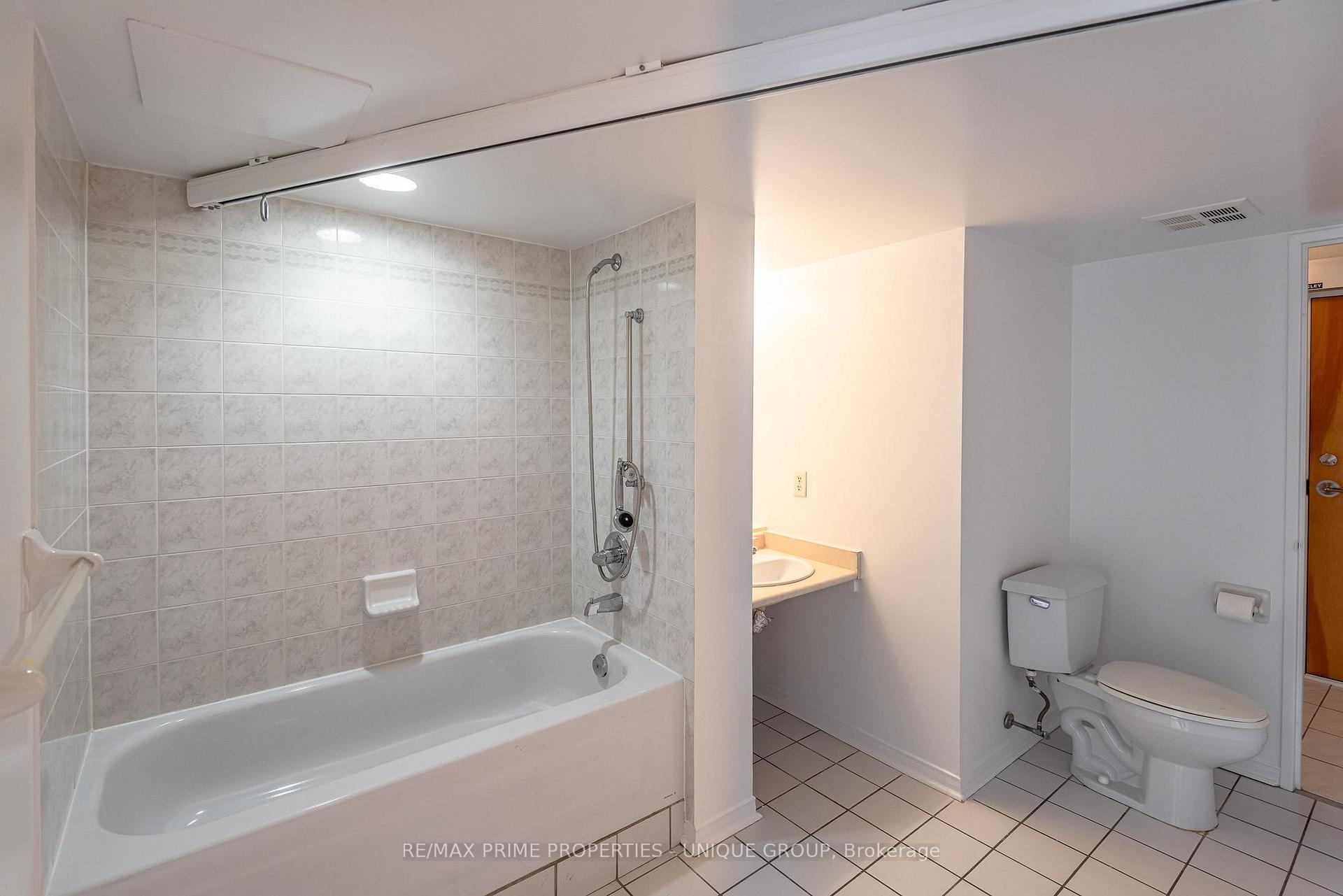 Welcome to Suite 703, 39 Parliament Street. If you're looking for the premier location for wheelchair accessible living in Toronto, then this is it! Located in the vibrant and historic Distillery District, this building has on-site attendant care managed by March of Dimes. The building was designed and built to be wheelchair accessible. Suite 703 was customized by the original owner for accessibility. The suite door has a power opener, the open concept living room, dining room and kitchen are easy to navigate. The large west facing floor to ceiling windows overlooks Parliament Square Park and the CN Tower in the distance.The kitchen was updated in 2019 with new cupboards and counter tops. The primary bedroom features a ceiling track and closet. The oversized bathroom also has a ceiling tract leading to the raised bathtub and there is a roll under sink. The suite also has a south facing balcony, hard flooring surface throughout, a separate enclosed den (could be a second bedroom,) ensuite laundry and a large hall closet.