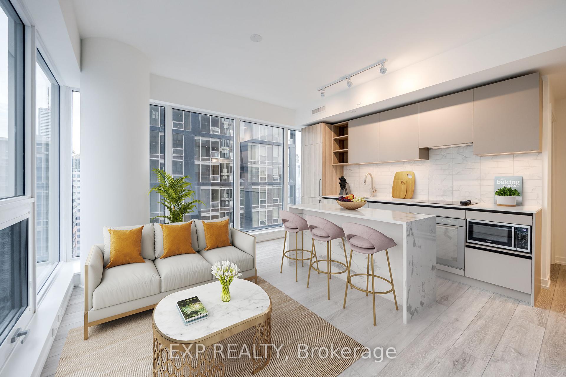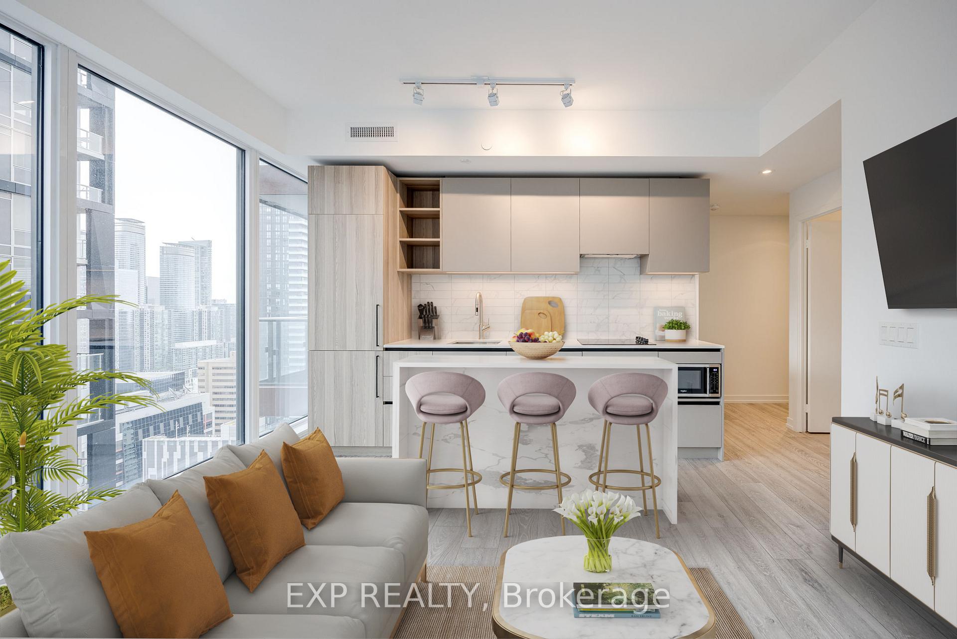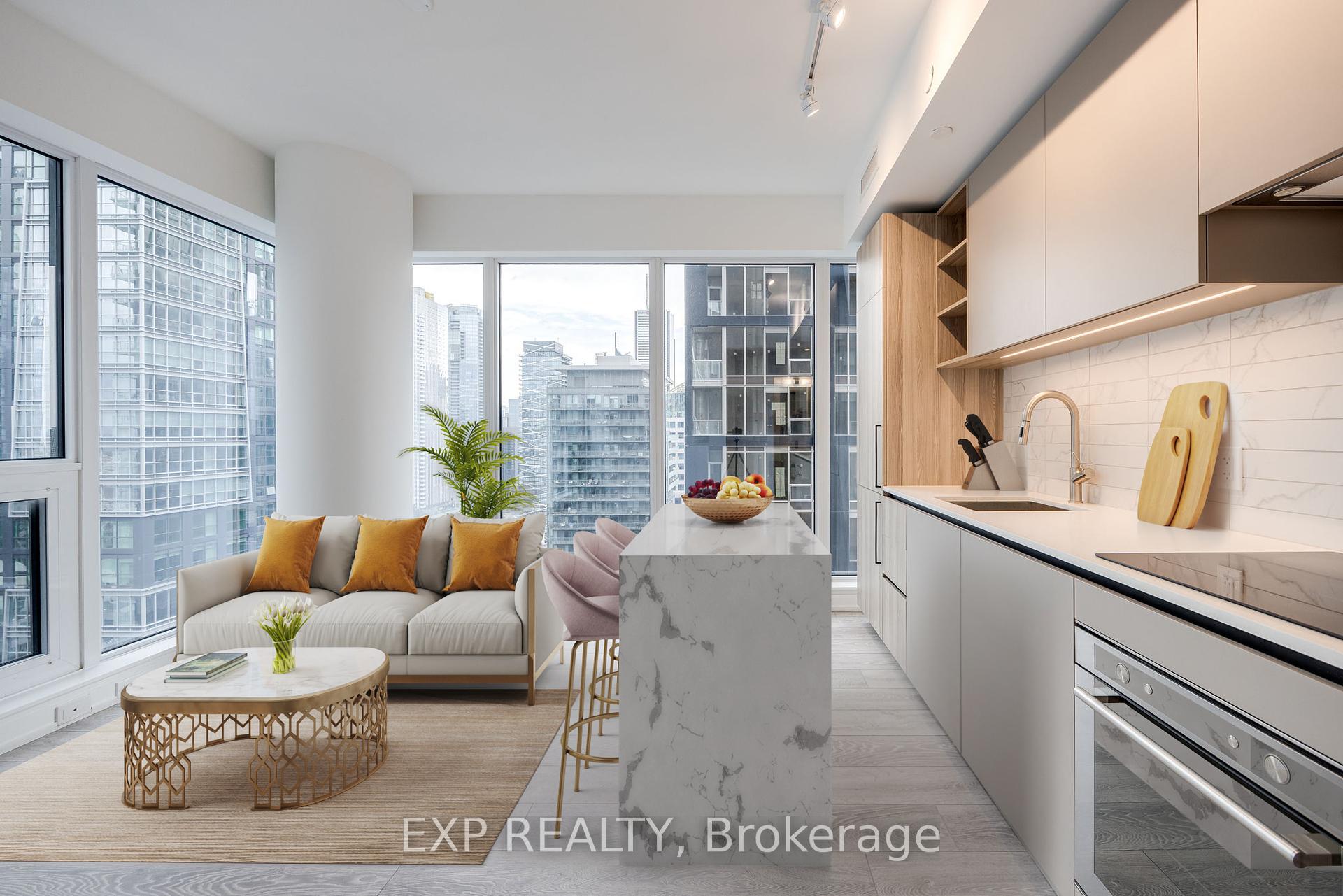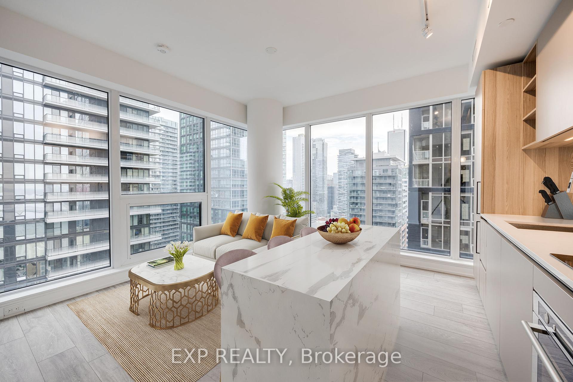 Downtown Living, Elevated! Welcome to sky-high sophistication in this brand-new 1+Den corner unit, perched on the 35th floor with floor-to-ceiling windows framing jaw-dropping views of the CN Tower and city skyline. Designed for modern living, the den (with its own door) doubles as a guest room or private office, while two full bathrooms add rare convenience. The chefs kitchen boasts quartz counters and built-in stainless steel appliances, and the primary suite opens to a private balconyperfect for soaking in the buzz of Toronto. Step outside and youre in the heart of it all: stroll to Rogers Centre for the game, Nobu for dinner, TIFF for film premieres, or the CN Tower just for fun. Streetcars and subways are minutes away, making the entire city your backyard. World-class amenities top it off - Peloton studios, rooftop terrace, basketball court, two-story gym, sleek workspaces, and more. This is the ultimate downtown lifestyle, where every day feels like an event.