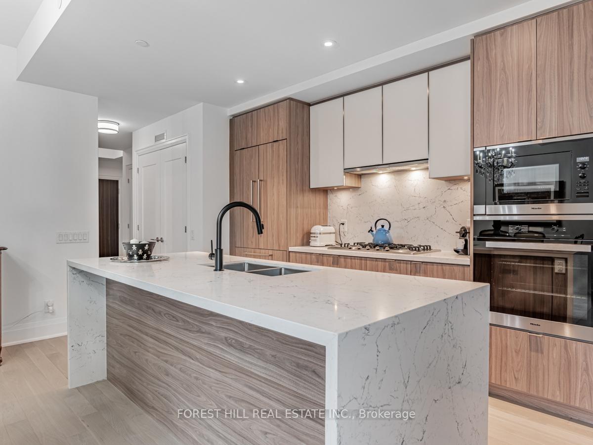 Exceptional 1172 sq.ft. suite with exquisite layout in desired striking, beautiful "Bianca" Condo by Tridel. Walk-out to tranquil terrace with gasBBQ hook-up and waterline overlooking serene lush garden with mature trees, shrubbery and hydrangeas. Upgraded suite. Kitchen with hugeisland with waterfall, pantry and quartz countertops. Laundry with sink; 2 ensuite bathrooms and a powder room. Primary ensuite & powderroom have all marble walls, counter & floor; wired for motorized blinds in every window; all closets with California closet organizers, hardwoodengineered floors, keyless locks. Resort like roof top outdoor pool & patio with BBQ area, outdoor fire side lounge. Excellent amenities includeparty room w/DR, fitness centre, Yoga studio. Parking & locker included. Amazing location in the Annex close to all conveniences, TTC, shops,Restaurants, easy access to U of T.